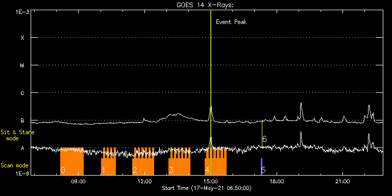 EIS Observation timeline overlay to GOES-Xray curve Code 1" 2" 40" 266" EIS Observations list for this event: STUDY ACRONYM ID DATE OBSERVED DESCRIPTION NOAA# TARGET 0 iiap_ch_ctxt_v2 | 77211 | 2021/05/17 08:10:49 | HOP 417: Coronal hole with GREGOR | | Coronal Hole TIMELINE ID DATE OBSERVED FITS FILE XCEN (+W/-E) YCEN (+N/-S) DUR ----------------------------------------------------------------------------------------------------------------- 77211 | 2021/05/17 08:10:49.000 | eis_l0_20210517_081049.fits.gz | 147.46 | -95.32 | 1h1m52s 1 EL_DHB_02 | 77226 | 2021/05/17 10:02:12 | AR 12822 - Coronal magnetic fields | | Flare TIMELINE ID DATE OBSERVED FITS FILE XCEN (+W/-E) YCEN (+N/-S) DUR ----------------------------------------------------------------------------------------------------------------- 77226 | 2021/05/17 10:02:12.000 | eis_l0_20210517_100212.fits.gz | 720.85 | 228.97 | 4m50s 77226 | 2021/05/17 10:07:05.000 | eis_l0_20210517_100705.fits.gz | 721.16 | 228.82 | 4m50s 77226 | 2021/05/17 10:11:58.000 | eis_l0_20210517_101158.fits.gz | 721.62 | 228.74 | 4m50s 77226 | 2021/05/17 10:16:51.000 | eis_l0_20210517_101651.fits.gz | 722.09 | 228.82 | 4m50s 77226 | 2021/05/17 10:21:44.000 | eis_l0_20210517_102144.fits.gz | 722.47 | 228.82 | 4m50s 77226 | 2021/05/17 10:26:37.000 | eis_l0_20210517_102637.fits.gz | 722.94 | 228.66 | 4m50s 77226 | 2021/05/17 10:31:30.000 | eis_l0_20210517_103130.fits.gz | 723.40 | 228.82 | 4m50s 77226 | 2021/05/17 10:36:23.000 | eis_l0_20210517_103623.fits.gz | 723.86 | 228.66 | 4m51s 2 EL_DHB_02 | 77222 | 2021/05/17 11:27:12 | AR 12822 - Coronal magnetic fields | | Flare TIMELINE ID DATE OBSERVED FITS FILE XCEN (+W/-E) YCEN (+N/-S) DUR ----------------------------------------------------------------------------------------------------------------- 77222 | 2021/05/17 11:27:12.000 | eis_l0_20210517_112712.fits.gz | 728.34 | 228.35 | 4m50s 77222 | 2021/05/17 11:32:05.000 | eis_l0_20210517_113205.fits.gz | 728.73 | 228.27 | 4m50s 77222 | 2021/05/17 11:36:58.000 | eis_l0_20210517_113658.fits.gz | 729.20 | 228.35 | 4m50s 77222 | 2021/05/17 11:41:51.000 | eis_l0_20210517_114151.fits.gz | 729.66 | 228.35 | 4m50s 77222 | 2021/05/17 11:46:44.000 | eis_l0_20210517_114644.fits.gz | 730.04 | 228.27 | 4m50s 77222 | 2021/05/17 11:51:37.000 | eis_l0_20210517_115137.fits.gz | 730.43 | 228.27 | 4m50s 77222 | 2021/05/17 11:56:29.000 | eis_l0_20210517_115629.fits.gz | 730.89 | 228.20 | 4m51s 77222 | 2021/05/17 12:01:22.000 | eis_l0_20210517_120122.fits.gz | 731.36 | 228.12 | 4m50s 77222 | 2021/05/17 12:06:15.000 | eis_l0_20210517_120615.fits.gz | 731.74 | 228.04 | 4m50s 77222 | 2021/05/17 12:11:08.000 | eis_l0_20210517_121108.fits.gz | 732.21 | 228.12 | 4m50s 77222 | 2021/05/17 12:16:01.000 | eis_l0_20210517_121601.fits.gz | 732.59 | 228.12 | 4m50s 77222 | 2021/05/17 12:20:54.000 | eis_l0_20210517_122054.fits.gz | 733.06 | 228.12 | 4m50s 3 EL_DHB_02 | 77223 | 2021/05/17 13:05:42 | AR 12822 - Coronal magnetic fields | | Flare TIMELINE ID DATE OBSERVED FITS FILE XCEN (+W/-E) YCEN (+N/-S) DUR ----------------------------------------------------------------------------------------------------------------- 77223 | 2021/05/17 13:05:42.000 | eis_l0_20210517_130542.fits.gz | 737.00 | 227.74 | 4m50s 77223 | 2021/05/17 13:10:35.000 | eis_l0_20210517_131035.fits.gz | 737.46 | 227.74 | 4m50s 77223 | 2021/05/17 13:15:28.000 | eis_l0_20210517_131528.fits.gz | 737.77 | 227.74 | 4m50s 77223 | 2021/05/17 13:20:21.000 | eis_l0_20210517_132021.fits.gz | 738.23 | 227.58 | 4m50s 77223 | 2021/05/17 13:25:14.000 | eis_l0_20210517_132514.fits.gz | 738.62 | 227.50 | 4m50s 77223 | 2021/05/17 13:30:07.000 | eis_l0_20210517_133007.fits.gz | 738.93 | 227.74 | 4m50s 77223 | 2021/05/17 13:35:00.000 | eis_l0_20210517_133500.fits.gz | 739.47 | 227.66 | 4m50s 77223 | 2021/05/17 13:39:53.000 | eis_l0_20210517_133953.fits.gz | 739.78 | 227.50 | 4m51s 77223 | 2021/05/17 13:44:47.000 | eis_l0_20210517_134447.fits.gz | 740.32 | 227.58 | 4m49s 77223 | 2021/05/17 13:49:39.000 | eis_l0_20210517_134939.fits.gz | 740.71 | 227.58 | 4m51s 77223 | 2021/05/17 13:54:33.000 | eis_l0_20210517_135433.fits.gz | 741.17 | 227.43 | 4m50s 77223 | 2021/05/17 13:59:25.000 | eis_l0_20210517_135925.fits.gz | 741.48 | 227.35 | 4m50s 4 EL_DHB_02 | 77224 | 2021/05/17 14:44:12 | AR 12822 - Coronal magnetic fields | | Flare TIMELINE ID DATE OBSERVED FITS FILE XCEN (+W/-E) YCEN (+N/-S) DUR ----------------------------------------------------------------------------------------------------------------- 77224 | 2021/05/17 14:44:12.000 | eis_l0_20210517_144412.fits.gz | 745.34 | 227.35 | 4m50s 77224 | 2021/05/17 14:49:05.000 | eis_l0_20210517_144905.fits.gz | 745.73 | 227.04 | 4m51s 77224 | 2021/05/17 14:53:59.000 | eis_l0_20210517_145359.fits.gz | 746.19 | 227.12 | 4m50s 77224 | 2021/05/17 14:58:51.000 | eis_l0_20210517_145851.fits.gz | 746.58 | 227.04 | 4m50s 77224 | 2021/05/17 15:03:44.000 | eis_l0_20210517_150344.fits.gz | 747.04 | 227.04 | 4m50s 77224 | 2021/05/17 15:08:37.000 | eis_l0_20210517_150837.fits.gz | 747.42 | 226.96 | 4m50s 77224 | 2021/05/17 15:13:30.000 | eis_l0_20210517_151330.fits.gz | 747.81 | 226.96 | 4m51s 77224 | 2021/05/17 15:18:23.000 | eis_l0_20210517_151823.fits.gz | 748.28 | 226.96 | 4m51s 77224 | 2021/05/17 15:23:16.000 | eis_l0_20210517_152316.fits.gz | 748.58 | 227.04 | 4m50s 77224 | 2021/05/17 15:28:09.000 | eis_l0_20210517_152809.fits.gz | 749.05 | 226.88 | 4m50s 77224 | 2021/05/17 15:33:02.000 | eis_l0_20210517_153302.fits.gz | 749.36 | 226.81 | 4m50s 77224 | 2021/05/17 15:37:55.000 | eis_l0_20210517_153755.fits.gz | 749.82 | 226.88 | 4m50s 5 PRY_slot_contextLITE | 77202 | 2021/05/17 17:17:19 | Pointing monitoring | | Active Region TIMELINE ID DATE OBSERVED FITS FILE XCEN (+W/-E) YCEN (+N/-S) DUR ----------------------------------------------------------------------------------------------------------------- 77202 | 2021/05/17 17:17:19.000 | eis_l0_20210517_171719.fits.gz | -37.01 | -28.58 | 2m56s 6 XRT_synop_AIA 