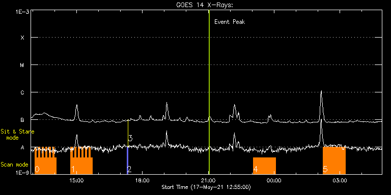 EIS Observation timeline overlay to GOES-Xray curve Code 1" 2" 40" 266" EIS Observations list for this event: STUDY ACRONYM ID DATE OBSERVED DESCRIPTION NOAA# TARGET 0 EL_DHB_02 | 77223 | 2021/05/17 13:05:42 | AR 12822 - Coronal magnetic fields | | Flare TIMELINE ID DATE OBSERVED FITS FILE XCEN (+W/-E) YCEN (+N/-S) DUR ----------------------------------------------------------------------------------------------------------------- 77223 | 2021/05/17 13:05:42.000 | eis_l0_20210517_130542.fits.gz | 737.00 | 227.74 | 4m50s 77223 | 2021/05/17 13:10:35.000 | eis_l0_20210517_131035.fits.gz | 737.46 | 227.74 | 4m50s 77223 | 2021/05/17 13:15:28.000 | eis_l0_20210517_131528.fits.gz | 737.77 | 227.74 | 4m50s 77223 | 2021/05/17 13:20:21.000 | eis_l0_20210517_132021.fits.gz | 738.23 | 227.58 | 4m50s 77223 | 2021/05/17 13:25:14.000 | eis_l0_20210517_132514.fits.gz | 738.62 | 227.50 | 4m50s 77223 | 2021/05/17 13:30:07.000 | eis_l0_20210517_133007.fits.gz | 738.93 | 227.74 | 4m50s 77223 | 2021/05/17 13:35:00.000 | eis_l0_20210517_133500.fits.gz | 739.47 | 227.66 | 4m50s 77223 | 2021/05/17 13:39:53.000 | eis_l0_20210517_133953.fits.gz | 739.78 | 227.50 | 4m51s 77223 | 2021/05/17 13:44:47.000 | eis_l0_20210517_134447.fits.gz | 740.32 | 227.58 | 4m49s 77223 | 2021/05/17 13:49:39.000 | eis_l0_20210517_134939.fits.gz | 740.71 | 227.58 | 4m51s 77223 | 2021/05/17 13:54:33.000 | eis_l0_20210517_135433.fits.gz | 741.17 | 227.43 | 4m50s 77223 | 2021/05/17 13:59:25.000 | eis_l0_20210517_135925.fits.gz | 741.48 | 227.35 | 4m50s 1 EL_DHB_02 | 77224 | 2021/05/17 14:44:12 | AR 12822 - Coronal magnetic fields | | Flare TIMELINE ID DATE OBSERVED FITS FILE XCEN (+W/-E) YCEN (+N/-S) DUR ----------------------------------------------------------------------------------------------------------------- 77224 | 2021/05/17 14:44:12.000 | eis_l0_20210517_144412.fits.gz | 745.34 | 227.35 | 4m50s 77224 | 2021/05/17 14:49:05.000 | eis_l0_20210517_144905.fits.gz | 745.73 | 227.04 | 4m51s 77224 | 2021/05/17 14:53:59.000 | eis_l0_20210517_145359.fits.gz | 746.19 | 227.12 | 4m50s 77224 | 2021/05/17 14:58:51.000 | eis_l0_20210517_145851.fits.gz | 746.58 | 227.04 | 4m50s 77224 | 2021/05/17 15:03:44.000 | eis_l0_20210517_150344.fits.gz | 747.04 | 227.04 | 4m50s 77224 | 2021/05/17 15:08:37.000 | eis_l0_20210517_150837.fits.gz | 747.42 | 226.96 | 4m50s 77224 | 2021/05/17 15:13:30.000 | eis_l0_20210517_151330.fits.gz | 747.81 | 226.96 | 4m51s 77224 | 2021/05/17 15:18:23.000 | eis_l0_20210517_151823.fits.gz | 748.28 | 226.96 | 4m51s 77224 | 2021/05/17 15:23:16.000 | eis_l0_20210517_152316.fits.gz | 748.58 | 227.04 | 4m50s 77224 | 2021/05/17 15:28:09.000 | eis_l0_20210517_152809.fits.gz | 749.05 | 226.88 | 4m50s 77224 | 2021/05/17 15:33:02.000 | eis_l0_20210517_153302.fits.gz | 749.36 | 226.81 | 4m50s 77224 | 2021/05/17 15:37:55.000 | eis_l0_20210517_153755.fits.gz | 749.82 | 226.88 | 4m50s 2 PRY_slot_contextLITE | 77202 | 2021/05/17 17:17:19 | Pointing monitoring | | Active Region TIMELINE ID DATE OBSERVED FITS FILE XCEN (+W/-E) YCEN (+N/-S) DUR ----------------------------------------------------------------------------------------------------------------- 77202 | 2021/05/17 17:17:19.000 | eis_l0_20210517_171719.fits.gz | -37.01 | -28.58 | 2m56s 3 XRT_synop_AIA | 77203 | 2021/05/17 17:20:34 | Pointing monitoring | | Quiet Sun TIMELINE ID DATE OBSERVED FITS FILE XCEN (+W/-E) YCEN (+N/-S) DUR ----------------------------------------------------------------------------------------------------------------- 77203 | 2021/05/17 17:20:34.000 | eis_l0_20210517_172034.fits.gz | -154.20 | -28.58 | 10s 4 Large_CH_Map | 77212 | 2021/05/17 23:02:19 | HOP 336 (North) | | Quiet Sun TIMELINE ID DATE OBSERVED FITS FILE XCEN (+W/-E) YCEN (+N/-S) DUR ----------------------------------------------------------------------------------------------------------------- 77212 | 2021/05/17 23:02:19.000 | eis_l0_20210517_230219.fits.gz | -23.18 | 548.69 | 1h1m52s 5 Large_CH_Map | 77214 | 2021/05/18 02:13:09 | HOP 336 (South) | | Quiet Sun TIMELINE ID DATE OBSERVED FITS FILE XCEN (+W/-E) YCEN (+N/-S) DUR ----------------------------------------------------------------------------------------------------------------- 77214 | 2021/05/18 02:13:09.000 | eis_l0_20210518_021309.fits.gz | -22.03 | -610.03 | 1h1m54s : Check study information : Download file : View thumbnails For this event, also check for: