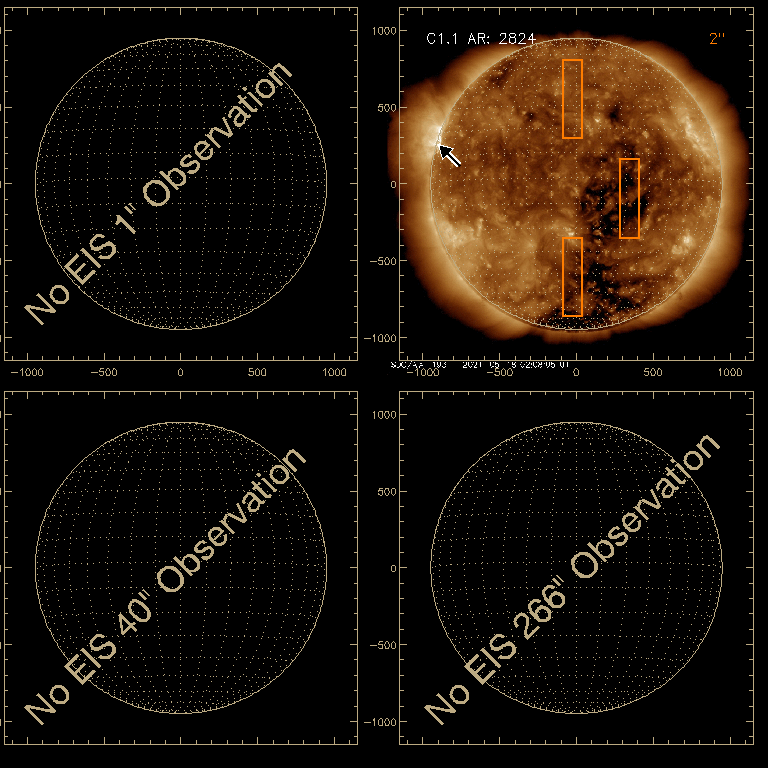 EIS Observation timeline overlay to GOES-Xray curve Code 1" 2" 40" 266" EIS Observations list for this event: STUDY ACRONYM ID DATE OBSERVED DESCRIPTION NOAA# TARGET 0 Large_CH_Map | 77212 | 2021/05/17 23:02:19 | HOP 336 (North) | | Quiet Sun TIMELINE ID DATE OBSERVED FITS FILE XCEN (+W/-E) YCEN (+N/-S) DUR ----------------------------------------------------------------------------------------------------------------- 77212 | 2021/05/17 23:02:19.000 | eis_l0_20210517_230219.fits.gz | -23.18 | 548.69 | 1h1m52s 1 Large_CH_Map | 77214 | 2021/05/18 02:13:09 | HOP 336 (South) | | Quiet Sun TIMELINE ID DATE OBSERVED FITS FILE XCEN (+W/-E) YCEN (+N/-S) DUR ----------------------------------------------------------------------------------------------------------------- 77214 | 2021/05/18 02:13:09.000 | eis_l0_20210518_021309.fits.gz | -22.03 | -610.03 | 1h1m54s 2 iiap_ch_ctxt_v2 | 77225 | 2021/05/18 07:08:39 | HOP 417: Coronal hole with GREGOR and | | Coronal Hole TIMELINE ID DATE OBSERVED FITS FILE XCEN (+W/-E) YCEN (+N/-S) DUR ----------------------------------------------------------------------------------------------------------------- 77225 | 2021/05/18 07:08:39.000 | eis_l0_20210518_070839.fits.gz | 348.62 | -99.72 | 1h1m53s : Check study information : Download file : View thumbnails For this event, also check for: