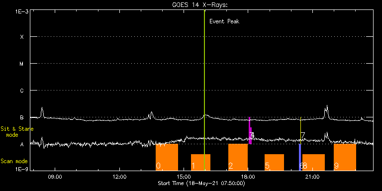 EIS Observation timeline overlay to GOES-Xray curve Code 1" 2" 40" 266" EIS Observations list for this event: STUDY ACRONYM ID DATE OBSERVED DESCRIPTION NOAA# TARGET 0 HPW021VEL260x512v2 | 77232 | 2021/05/18 13:42:11 | EUNIS rocket - Active region raster | 2824 | Active Region TIMELINE ID DATE OBSERVED FITS FILE XCEN (+W/-E) YCEN (+N/-S) DUR ----------------------------------------------------------------------------------------------------------------- 77232 | 2021/05/18 13:42:11.000 | eis_l0_20210518_134211.fits.gz | -893.54 | 257.94 | 1h0m44s 1 EUNIS_EIS_CrossCal18 | 77227 | 2021/05/18 15:20:41 | EUNIS rocket | | Quiet Sun TIMELINE ID DATE OBSERVED FITS FILE XCEN (+W/-E) YCEN (+N/-S) DUR ----------------------------------------------------------------------------------------------------------------- 77227 | 2021/05/18 15:20:41.000 | eis_l0_20210518_152041.fits.gz | -889.28 | 258.64 | 52m44s 2 EUNIS_EIS_CrossCal18 | 77228 | 2021/05/18 17:04:41 | EUNIS rocket | | Quiet Sun TIMELINE ID DATE OBSERVED FITS FILE XCEN (+W/-E) YCEN (+N/-S) DUR ----------------------------------------------------------------------------------------------------------------- 77228 | 2021/05/18 17:04:41.000 | eis_l0_20210518_170441.fits.gz | -884.79 | 259.10 | 52m45s 3 regcal071 | 77246 | 2021/05/18 18:02:12 | Dark exposures, CCD bottom rows (100s | | Engineering TIMELINE ID DATE OBSERVED FITS FILE XCEN (+W/-E) YCEN (+N/-S) DUR ----------------------------------------------------------------------------------------------------------------- 77246 | 2021/05/18 18:02:12.000 | eis_l0_20210518_180212.fits.gz | -845.64 | -15.67 | 3m22s 4 regcal072 | 77247 | 2021/05/18 18:06:00 | Dark exposures, top CCD rows (100s exp | | Engineering TIMELINE ID DATE OBSERVED FITS FILE XCEN (+W/-E) YCEN (+N/-S) DUR ----------------------------------------------------------------------------------------------------------------- 77247 | 2021/05/18 18:06:00.000 | eis_l0_20210518_180600.fits.gz | -845.41 | 495.33 | 3m22s 5 EUNIS_EIS_CrossCal18 | 77229 | 2021/05/18 18:47:10 | EUNIS rocket | | Quiet Sun TIMELINE ID DATE OBSERVED FITS FILE XCEN (+W/-E) YCEN (+N/-S) DUR ----------------------------------------------------------------------------------------------------------------- 77229 | 2021/05/18 18:47:10.000 | eis_l0_20210518_184710.fits.gz | -880.01 | 259.57 | 52m45s 6 PRY_slot_contextLITE | 77248 | 2021/05/18 20:23:20 | Pointing monitoring | | Active Region TIMELINE ID DATE OBSERVED FITS FILE XCEN (+W/-E) YCEN (+N/-S) DUR ----------------------------------------------------------------------------------------------------------------- 77248 | 2021/05/18 20:23:20.000 | eis_l0_20210518_202320.fits.gz | -36.60 | -30.42 | 2m56s 7 XRT_synop_AIA | 77249 | 2021/05/18 20:26:35 | Pointing monitoring | | Quiet Sun TIMELINE ID DATE OBSERVED FITS FILE XCEN (+W/-E) YCEN (+N/-S) DUR ----------------------------------------------------------------------------------------------------------------- 77249 | 2021/05/18 20:26:35.000 | eis_l0_20210518_202635.fits.gz | -154.20 | -30.42 | 10s 8 HPW021VEL260x512v2 | 77230 | 2021/05/18 20:32:20 | EUNIS rocket - Active region raster | 2824 | Active Region TIMELINE ID DATE OBSERVED FITS FILE XCEN (+W/-E) YCEN (+N/-S) DUR ----------------------------------------------------------------------------------------------------------------- 77230 | 2021/05/18 20:32:20.000 | eis_l0_20210518_203220.fits.gz | -875.56 | 260.26 | 1h0m44s 9 HPW021VEL260x512v2 | 77231 | 2021/05/18 22:00:43 | EUNIS rocket - Active region raster | 2824 | Active Region TIMELINE ID DATE OBSERVED FITS FILE XCEN (+W/-E) YCEN (+N/-S) DUR ----------------------------------------------------------------------------------------------------------------- 77231 | 2021/05/18 22:00:43.000 | eis_l0_20210518_220043.fits.gz | -871.08 | 260.57 | 1h0m45s : Check study information : Download file : View thumbnails For this event, also check for: