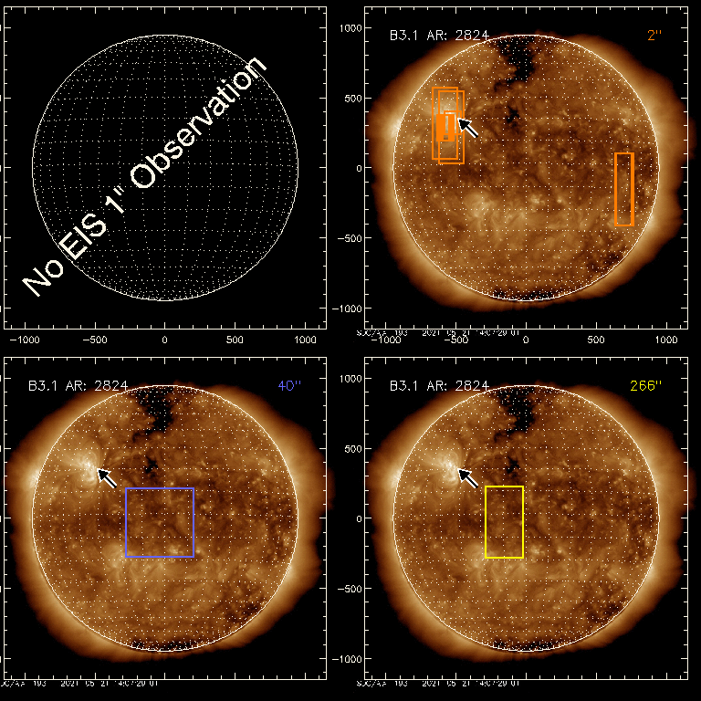 EIS Observation timeline overlay to GOES-Xray curve Code 1" 2" 40" 266" EIS Observations list for this event: STUDY ACRONYM ID DATE OBSERVED DESCRIPTION NOAA# TARGET 0 iiap_ch_ctxt_v2 | 77299 | 2021/05/21 07:17:40 | HOP417: coordination with GREGOR | | Coronal Hole TIMELINE ID DATE OBSERVED FITS FILE XCEN (+W/-E) YCEN (+N/-S) DUR ----------------------------------------------------------------------------------------------------------------- 77299 | 2021/05/21 07:17:40.000 | eis_l0_20210521_071740.fits.gz | 696.24 | -158.03 | 1h1m53s 1 iiap_ch_ctxt_v2 | 77300 | 2021/05/21 08:53:14 | HOP417: coordination with GREGOR | | Coronal Hole TIMELINE ID DATE OBSERVED FITS FILE XCEN (+W/-E) YCEN (+N/-S) DUR ----------------------------------------------------------------------------------------------------------------- 77300 | 2021/05/21 08:53:14.000 | eis_l0_20210521_085314.fits.gz | 705.43 | -158.34 | 1h1m52s 2 HPW021VEL260x512v2 | 77302 | 2021/05/21 10:34:41 | AR 12824 raster | | Active Region TIMELINE ID DATE OBSERVED FITS FILE XCEN (+W/-E) YCEN (+N/-S) DUR ----------------------------------------------------------------------------------------------------------------- 77302 | 2021/05/21 10:34:41.000 | eis_l0_20210521_103441.fits.gz | -577.22 | 315.29 | 1h0m45s 3 ar_evolution | 77310 | 2021/05/21 12:12:44 | AR 12824 - active region evolution | | Active Region TIMELINE ID DATE OBSERVED FITS FILE XCEN (+W/-E) YCEN (+N/-S) DUR ----------------------------------------------------------------------------------------------------------------- 77310 | 2021/05/21 12:12:44.000 | eis_l0_20210521_121244.fits.gz | -589.22 | 283.67 | 14m47s 77310 | 2021/05/21 12:27:34.000 | eis_l0_20210521_122734.fits.gz | -587.59 | 283.60 | 14m46s 77310 | 2021/05/21 12:42:23.000 | eis_l0_20210521_124223.fits.gz | -585.97 | 283.60 | 14m47s 77310 | 2021/05/21 12:57:13.000 | eis_l0_20210521_125713.fits.gz | -584.27 | 283.75 | 14m47s 4 ar_evolution | 77304 | 2021/05/21 13:50:44 | AR 12824 - active region evolution | | Active Region TIMELINE ID DATE OBSERVED FITS FILE XCEN (+W/-E) YCEN (+N/-S) DUR ----------------------------------------------------------------------------------------------------------------- 77304 | 2021/05/21 13:50:44.000 | eis_l0_20210521_135044.fits.gz | -578.25 | 283.75 | 14m47s 77304 | 2021/05/21 14:05:34.000 | eis_l0_20210521_140534.fits.gz | -576.62 | 283.91 | 14m46s 77304 | 2021/05/21 14:20:23.000 | eis_l0_20210521_142023.fits.gz | -574.92 | 283.91 | 14m47s 77304 | 2021/05/21 14:35:13.000 | eis_l0_20210521_143513.fits.gz | -573.15 | 283.83 | 14m46s 5 ar_evolution | 77305 | 2021/05/21 15:29:43 | AR 12824 - active region evolution | | Active Region TIMELINE ID DATE OBSERVED FITS FILE XCEN (+W/-E) YCEN (+N/-S) DUR ----------------------------------------------------------------------------------------------------------------- 77305 | 2021/05/21 15:29:43.000 | eis_l0_20210521_152943.fits.gz | -566.97 | 283.98 | 14m47s 77305 | 2021/05/21 15:44:33.000 | eis_l0_20210521_154433.fits.gz | -565.27 | 284.06 | 14m47s 77305 | 2021/05/21 15:59:23.000 | eis_l0_20210521_155923.fits.gz | -563.65 | 283.98 | 14m48s 77305 | 2021/05/21 16:14:13.000 | eis_l0_20210521_161413.fits.gz | -561.87 | 284.06 | 14m48s 6 ar_evolution | 77311 | 2021/05/21 17:18:43 | AR 12824 - active region evolution | | Active Region TIMELINE ID DATE OBSERVED FITS FILE XCEN (+W/-E) YCEN (+N/-S) DUR ----------------------------------------------------------------------------------------------------------------- 77311 | 2021/05/21 17:18:43.000 | eis_l0_20210521_171843.fits.gz | -554.46 | 284.14 | 14m47s 77311 | 2021/05/21 17:33:33.000 | eis_l0_20210521_173333.fits.gz | -552.83 | 284.21 | 14m47s 7 PRY_slot_contextLITE | 77297 | 2021/05/21 18:02:20 | Pointing monitoring | | Active Region TIMELINE ID DATE OBSERVED FITS FILE XCEN (+W/-E) YCEN (+N/-S) DUR ----------------------------------------------------------------------------------------------------------------- 77297 | 2021/05/21 18:02:20.000 | eis_l0_20210521_180220.fits.gz | -37.35 | -31.58 | 2m56s 8 XRT_synop_AIA | 77298 | 2021/05/21 18:05:34 | Pointing monitoring | | Quiet Sun TIMELINE ID DATE OBSERVED FITS FILE XCEN (+W/-E) YCEN (+N/-S) DUR ----------------------------------------------------------------------------------------------------------------- 77298 | 2021/05/21 18:05:34.000 | eis_l0_20210521_180534.fits.gz | -154.95 | -31.50 | 10s 9 Atlas_60 | 77309 | 2021/05/21 18:55:20 | AR 12824 - atlas | | Quiet Sun TIMELINE ID DATE OBSERVED FITS FILE XCEN (+W/-E) YCEN (+N/-S) DUR ----------------------------------------------------------------------------------------------------------------- 77309 | 2021/05/21 18:55:20.000 | eis_l0_20210521_185520.fits.gz | -519.96 | 316.37 | 1h1m39s 10 HPW021VEL260x512v2 | 77306 | 2021/05/21 20:32:10 | AR 12824 raster | 2824 | Active Region TIMELINE ID DATE OBSERVED FITS FILE XCEN (+W/-E) YCEN (+N/-S) DUR ----------------------------------------------------------------------------------------------------------------- 77306 | 2021/05/21 20:32:10.000 | eis_l0_20210521_203210.fits.gz | -531.82 | 284.45 | 1h0m45s : Check study information : Download file : View thumbnails For this event, also check for: