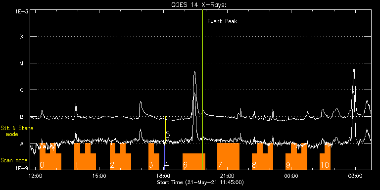 EIS Observation timeline overlay to GOES-Xray curve Code 1" 2" 40" 266" EIS Observations list for this event: STUDY ACRONYM ID DATE OBSERVED DESCRIPTION NOAA# TARGET 0 ar_evolution | 77310 | 2021/05/21 12:12:44 | AR 12824 - active region evolution | | Active Region TIMELINE ID DATE OBSERVED FITS FILE XCEN (+W/-E) YCEN (+N/-S) DUR ----------------------------------------------------------------------------------------------------------------- 77310 | 2021/05/21 12:12:44.000 | eis_l0_20210521_121244.fits.gz | -589.22 | 283.67 | 14m47s 77310 | 2021/05/21 12:27:34.000 | eis_l0_20210521_122734.fits.gz | -587.59 | 283.60 | 14m46s 77310 | 2021/05/21 12:42:23.000 | eis_l0_20210521_124223.fits.gz | -585.97 | 283.60 | 14m47s 77310 | 2021/05/21 12:57:13.000 | eis_l0_20210521_125713.fits.gz | -584.27 | 283.75 | 14m47s 1 ar_evolution | 77304 | 2021/05/21 13:50:44 | AR 12824 - active region evolution | | Active Region TIMELINE ID DATE OBSERVED FITS FILE XCEN (+W/-E) YCEN (+N/-S) DUR ----------------------------------------------------------------------------------------------------------------- 77304 | 2021/05/21 13:50:44.000 | eis_l0_20210521_135044.fits.gz | -578.25 | 283.75 | 14m47s 77304 | 2021/05/21 14:05:34.000 | eis_l0_20210521_140534.fits.gz | -576.62 | 283.91 | 14m46s 77304 | 2021/05/21 14:20:23.000 | eis_l0_20210521_142023.fits.gz | -574.92 | 283.91 | 14m47s 77304 | 2021/05/21 14:35:13.000 | eis_l0_20210521_143513.fits.gz | -573.15 | 283.83 | 14m46s 2 ar_evolution | 77305 | 2021/05/21 15:29:43 | AR 12824 - active region evolution | | Active Region TIMELINE ID DATE OBSERVED FITS FILE XCEN (+W/-E) YCEN (+N/-S) DUR ----------------------------------------------------------------------------------------------------------------- 77305 | 2021/05/21 15:29:43.000 | eis_l0_20210521_152943.fits.gz | -566.97 | 283.98 | 14m47s 77305 | 2021/05/21 15:44:33.000 | eis_l0_20210521_154433.fits.gz | -565.27 | 284.06 | 14m47s 77305 | 2021/05/21 15:59:23.000 | eis_l0_20210521_155923.fits.gz | -563.65 | 283.98 | 14m48s 77305 | 2021/05/21 16:14:13.000 | eis_l0_20210521_161413.fits.gz | -561.87 | 284.06 | 14m48s 3 ar_evolution | 77311 | 2021/05/21 17:18:43 | AR 12824 - active region evolution | | Active Region TIMELINE ID DATE OBSERVED FITS FILE XCEN (+W/-E) YCEN (+N/-S) DUR ----------------------------------------------------------------------------------------------------------------- 77311 | 2021/05/21 17:18:43.000 | eis_l0_20210521_171843.fits.gz | -554.46 | 284.14 | 14m47s 77311 | 2021/05/21 17:33:33.000 | eis_l0_20210521_173333.fits.gz | -552.83 | 284.21 | 14m47s 4 PRY_slot_contextLITE | 77297 | 2021/05/21 18:02:20 | Pointing monitoring | | Active Region TIMELINE ID DATE OBSERVED FITS FILE XCEN (+W/-E) YCEN (+N/-S) DUR ----------------------------------------------------------------------------------------------------------------- 77297 | 2021/05/21 18:02:20.000 | eis_l0_20210521_180220.fits.gz | -37.35 | -31.58 | 2m56s 5 XRT_synop_AIA | 77298 | 2021/05/21 18:05:34 | Pointing monitoring | | Quiet Sun TIMELINE ID DATE OBSERVED FITS FILE XCEN (+W/-E) YCEN (+N/-S) DUR ----------------------------------------------------------------------------------------------------------------- 77298 | 2021/05/21 18:05:34.000 | eis_l0_20210521_180534.fits.gz | -154.95 | -31.50 | 10s 6 Atlas_60 | 77309 | 2021/05/21 18:55:20 | AR 12824 - atlas | | Quiet Sun TIMELINE ID DATE OBSERVED FITS FILE XCEN (+W/-E) YCEN (+N/-S) DUR ----------------------------------------------------------------------------------------------------------------- 77309 | 2021/05/21 18:55:20.000 | eis_l0_20210521_185520.fits.gz | -519.96 | 316.37 | 1h1m39s 7 HPW021VEL260x512v2 | 77306 | 2021/05/21 20:32:10 | AR 12824 raster | 2824 | Active Region TIMELINE ID DATE OBSERVED FITS FILE XCEN (+W/-E) YCEN (+N/-S) DUR ----------------------------------------------------------------------------------------------------------------- 77306 | 2021/05/21 20:32:10.000 | eis_l0_20210521_203210.fits.gz | -531.82 | 284.45 | 1h0m45s 8 ar_evolution | 77307 | 2021/05/21 22:09:13 | AR 12824 - active region evolution | | Active Region TIMELINE ID DATE OBSERVED FITS FILE XCEN (+W/-E) YCEN (+N/-S) DUR ----------------------------------------------------------------------------------------------------------------- 77307 | 2021/05/21 22:09:13.000 | eis_l0_20210521_220913.fits.gz | -520.31 | 284.60 | 14m47s 77307 | 2021/05/21 22:24:03.000 | eis_l0_20210521_222403.fits.gz | -518.53 | 284.76 | 14m47s 77307 | 2021/05/21 22:38:53.000 | eis_l0_20210521_223853.fits.gz | -516.76 | 284.60 | 14m47s 77307 | 2021/05/21 22:53:43.000 | eis_l0_20210521_225343.fits.gz | -514.90 | 284.68 | 14m46s 9 ar_evolution | 77308 | 2021/05/21 23:44:43 | AR 12824 - active region evolution | | Active Region TIMELINE ID DATE OBSERVED FITS FILE XCEN (+W/-E) YCEN (+N/-S) DUR ----------------------------------------------------------------------------------------------------------------- 77308 | 2021/05/21 23:44:43.000 | eis_l0_20210521_234443.fits.gz | -508.72 | 284.76 | 14m47s 77308 | 2021/05/21 23:59:33.000 | eis_l0_20210521_235933.fits.gz | -506.95 | 284.91 | 14m48s 77308 | 2021/05/22 00:14:24.000 | eis_l0_20210522_001424.fits.gz | -505.25 | 284.76 | 14m47s 77308 | 2021/05/22 00:29:14.000 | eis_l0_20210522_002914.fits.gz | -503.39 | 284.83 | 14m47s 10 ar_evolution | 77303 | 2021/05/22 01:19:43 | AR 12824 - active region evolution | | Active Region TIMELINE ID DATE OBSERVED FITS FILE XCEN (+W/-E) YCEN (+N/-S) DUR ----------------------------------------------------------------------------------------------------------------- 77303 | 2021/05/22 01:19:43.000 | eis_l0_20210522_011943.fits.gz | -497.54 | 285.07 | 14m47s 77303 | 2021/05/22 01:34:33.000 | eis_l0_20210522_013433.fits.gz | -495.69 | 284.99 | 14m47s : Check study information : Download file : View thumbnails For this event, also check for: