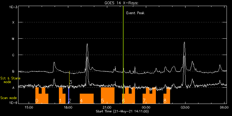 EIS Observation timeline overlay to GOES-Xray curve Code 1" 2" 40" 266" EIS Observations list for this event: STUDY ACRONYM ID DATE OBSERVED DESCRIPTION NOAA# TARGET 0 ar_evolution | 77305 | 2021/05/21 15:29:43 | AR 12824 - active region evolution | | Active Region TIMELINE ID DATE OBSERVED FITS FILE XCEN (+W/-E) YCEN (+N/-S) DUR ----------------------------------------------------------------------------------------------------------------- 77305 | 2021/05/21 15:29:43.000 | eis_l0_20210521_152943.fits.gz | -566.97 | 283.98 | 14m47s 77305 | 2021/05/21 15:44:33.000 | eis_l0_20210521_154433.fits.gz | -565.27 | 284.06 | 14m47s 77305 | 2021/05/21 15:59:23.000 | eis_l0_20210521_155923.fits.gz | -563.65 | 283.98 | 14m48s 77305 | 2021/05/21 16:14:13.000 | eis_l0_20210521_161413.fits.gz | -561.87 | 284.06 | 14m48s 1 ar_evolution | 77311 | 2021/05/21 17:18:43 | AR 12824 - active region evolution | | Active Region TIMELINE ID DATE OBSERVED FITS FILE XCEN (+W/-E) YCEN (+N/-S) DUR ----------------------------------------------------------------------------------------------------------------- 77311 | 2021/05/21 17:18:43.000 | eis_l0_20210521_171843.fits.gz | -554.46 | 284.14 | 14m47s 77311 | 2021/05/21 17:33:33.000 | eis_l0_20210521_173333.fits.gz | -552.83 | 284.21 | 14m47s 2 PRY_slot_contextLITE | 77297 | 2021/05/21 18:02:20 | Pointing monitoring | | Active Region TIMELINE ID DATE OBSERVED FITS FILE XCEN (+W/-E) YCEN (+N/-S) DUR ----------------------------------------------------------------------------------------------------------------- 77297 | 2021/05/21 18:02:20.000 | eis_l0_20210521_180220.fits.gz | -37.35 | -31.58 | 2m56s 3 XRT_synop_AIA | 77298 | 2021/05/21 18:05:34 | Pointing monitoring | | Quiet Sun TIMELINE ID DATE OBSERVED FITS FILE XCEN (+W/-E) YCEN (+N/-S) DUR ----------------------------------------------------------------------------------------------------------------- 77298 | 2021/05/21 18:05:34.000 | eis_l0_20210521_180534.fits.gz | -154.95 | -31.50 | 10s 4 Atlas_60 | 77309 | 2021/05/21 18:55:20 | AR 12824 - atlas | | Quiet Sun TIMELINE ID DATE OBSERVED FITS FILE XCEN (+W/-E) YCEN (+N/-S) DUR ----------------------------------------------------------------------------------------------------------------- 77309 | 2021/05/21 18:55:20.000 | eis_l0_20210521_185520.fits.gz | -519.96 | 316.37 | 1h1m39s 5 HPW021VEL260x512v2 | 77306 | 2021/05/21 20:32:10 | AR 12824 raster | 2824 | Active Region TIMELINE ID DATE OBSERVED FITS FILE XCEN (+W/-E) YCEN (+N/-S) DUR ----------------------------------------------------------------------------------------------------------------- 77306 | 2021/05/21 20:32:10.000 | eis_l0_20210521_203210.fits.gz | -531.82 | 284.45 | 1h0m45s 6 ar_evolution | 77307 | 2021/05/21 22:09:13 | AR 12824 - active region evolution | | Active Region TIMELINE ID DATE OBSERVED FITS FILE XCEN (+W/-E) YCEN (+N/-S) DUR ----------------------------------------------------------------------------------------------------------------- 77307 | 2021/05/21 22:09:13.000 | eis_l0_20210521_220913.fits.gz | -520.31 | 284.60 | 14m47s 77307 | 2021/05/21 22:24:03.000 | eis_l0_20210521_222403.fits.gz | -518.53 | 284.76 | 14m47s 77307 | 2021/05/21 22:38:53.000 | eis_l0_20210521_223853.fits.gz | -516.76 | 284.60 | 14m47s 77307 | 2021/05/21 22:53:43.000 | eis_l0_20210521_225343.fits.gz | -514.90 | 284.68 | 14m46s 7 ar_evolution | 77308 | 2021/05/21 23:44:43 | AR 12824 - active region evolution | | Active Region TIMELINE ID DATE OBSERVED FITS FILE XCEN (+W/-E) YCEN (+N/-S) DUR ----------------------------------------------------------------------------------------------------------------- 77308 | 2021/05/21 23:44:43.000 | eis_l0_20210521_234443.fits.gz | -508.72 | 284.76 | 14m47s 77308 | 2021/05/21 23:59:33.000 | eis_l0_20210521_235933.fits.gz | -506.95 | 284.91 | 14m48s 77308 | 2021/05/22 00:14:24.000 | eis_l0_20210522_001424.fits.gz | -505.25 | 284.76 | 14m47s 77308 | 2021/05/22 00:29:14.000 | eis_l0_20210522_002914.fits.gz | -503.39 | 284.83 | 14m47s 8 ar_evolution | 77303 | 2021/05/22 01:19:43 | AR 12824 - active region evolution | | Active Region TIMELINE ID DATE OBSERVED FITS FILE XCEN (+W/-E) YCEN (+N/-S) DUR ----------------------------------------------------------------------------------------------------------------- 77303 | 2021/05/22 01:19:43.000 | eis_l0_20210522_011943.fits.gz | -497.54 | 285.07 | 14m47s 77303 | 2021/05/22 01:34:33.000 | eis_l0_20210522_013433.fits.gz | -495.69 | 284.99 | 14m47s : Check study information : Download file : View thumbnails For this event, also check for: