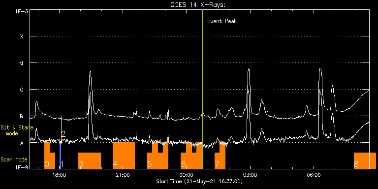 EIS Observation timeline overlay to GOES-Xray curve Code 1" 2" 40" 266" EIS Observations list for this event: STUDY ACRONYM ID DATE OBSERVED DESCRIPTION NOAA# TARGET 0 ar_evolution | 77311 | 2021/05/21 17:18:43 | AR 12824 - active region evolution | | Active Region TIMELINE ID DATE OBSERVED FITS FILE XCEN (+W/-E) YCEN (+N/-S) DUR ----------------------------------------------------------------------------------------------------------------- 77311 | 2021/05/21 17:18:43.000 | eis_l0_20210521_171843.fits.gz | -554.46 | 284.14 | 14m47s 77311 | 2021/05/21 17:33:33.000 | eis_l0_20210521_173333.fits.gz | -552.83 | 284.21 | 14m47s 1 PRY_slot_contextLITE | 77297 | 2021/05/21 18:02:20 | Pointing monitoring | | Active Region TIMELINE ID DATE OBSERVED FITS FILE XCEN (+W/-E) YCEN (+N/-S) DUR ----------------------------------------------------------------------------------------------------------------- 77297 | 2021/05/21 18:02:20.000 | eis_l0_20210521_180220.fits.gz | -37.35 | -31.58 | 2m56s 2 XRT_synop_AIA | 77298 | 2021/05/21 18:05:34 | Pointing monitoring | | Quiet Sun TIMELINE ID DATE OBSERVED FITS FILE XCEN (+W/-E) YCEN (+N/-S) DUR ----------------------------------------------------------------------------------------------------------------- 77298 | 2021/05/21 18:05:34.000 | eis_l0_20210521_180534.fits.gz | -154.95 | -31.50 | 10s 3 Atlas_60 | 77309 | 2021/05/21 18:55:20 | AR 12824 - atlas | | Quiet Sun TIMELINE ID DATE OBSERVED FITS FILE XCEN (+W/-E) YCEN (+N/-S) DUR ----------------------------------------------------------------------------------------------------------------- 77309 | 2021/05/21 18:55:20.000 | eis_l0_20210521_185520.fits.gz | -519.96 | 316.37 | 1h1m39s 4 HPW021VEL260x512v2 | 77306 | 2021/05/21 20:32:10 | AR 12824 raster | 2824 | Active Region TIMELINE ID DATE OBSERVED FITS FILE XCEN (+W/-E) YCEN (+N/-S) DUR ----------------------------------------------------------------------------------------------------------------- 77306 | 2021/05/21 20:32:10.000 | eis_l0_20210521_203210.fits.gz | -531.82 | 284.45 | 1h0m45s 5 ar_evolution | 77307 | 2021/05/21 22:09:13 | AR 12824 - active region evolution | | Active Region TIMELINE ID DATE OBSERVED FITS FILE XCEN (+W/-E) YCEN (+N/-S) DUR ----------------------------------------------------------------------------------------------------------------- 77307 | 2021/05/21 22:09:13.000 | eis_l0_20210521_220913.fits.gz | -520.31 | 284.60 | 14m47s 77307 | 2021/05/21 22:24:03.000 | eis_l0_20210521_222403.fits.gz | -518.53 | 284.76 | 14m47s 77307 | 2021/05/21 22:38:53.000 | eis_l0_20210521_223853.fits.gz | -516.76 | 284.60 | 14m47s 77307 | 2021/05/21 22:53:43.000 | eis_l0_20210521_225343.fits.gz | -514.90 | 284.68 | 14m46s 6 ar_evolution | 77308 | 2021/05/21 23:44:43 | AR 12824 - active region evolution | | Active Region TIMELINE ID DATE OBSERVED FITS FILE XCEN (+W/-E) YCEN (+N/-S) DUR ----------------------------------------------------------------------------------------------------------------- 77308 | 2021/05/21 23:44:43.000 | eis_l0_20210521_234443.fits.gz | -508.72 | 284.76 | 14m47s 77308 | 2021/05/21 23:59:33.000 | eis_l0_20210521_235933.fits.gz | -506.95 | 284.91 | 14m48s 77308 | 2021/05/22 00:14:24.000 | eis_l0_20210522_001424.fits.gz | -505.25 | 284.76 | 14m47s 77308 | 2021/05/22 00:29:14.000 | eis_l0_20210522_002914.fits.gz | -503.39 | 284.83 | 14m47s 7 ar_evolution | 77303 | 2021/05/22 01:19:43 | AR 12824 - active region evolution | | Active Region TIMELINE ID DATE OBSERVED FITS FILE XCEN (+W/-E) YCEN (+N/-S) DUR ----------------------------------------------------------------------------------------------------------------- 77303 | 2021/05/22 01:19:43.000 | eis_l0_20210522_011943.fits.gz | -497.54 | 285.07 | 14m47s 77303 | 2021/05/22 01:34:33.000 | eis_l0_20210522_013433.fits.gz | -495.69 | 284.99 | 14m47s 8 Large_CH_Map | 77296 | 2021/05/22 07:53:13 | HOP393: cycle 24/25 equatorial transit | | Quiet Sun TIMELINE ID DATE OBSERVED FITS FILE XCEN (+W/-E) YCEN (+N/-S) DUR ----------------------------------------------------------------------------------------------------------------- 77296 | 2021/05/22 07:53:13.000 | eis_l0_20210522_075313.fits.gz | -45.95 | -40.38 | 1h1m52s : Check study information : Download file : View thumbnails For this event, also check for: