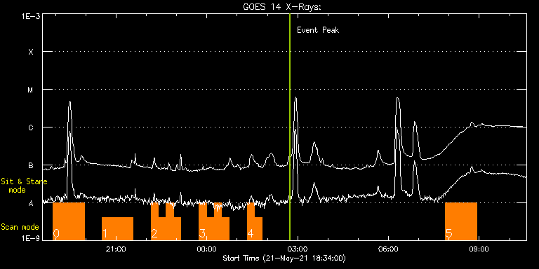EIS Observation timeline overlay to GOES-Xray curve Code 1" 2" 40" 266" EIS Observations list for this event: STUDY ACRONYM ID DATE OBSERVED DESCRIPTION NOAA# TARGET 0 Atlas_60 | 77309 | 2021/05/21 18:55:20 | AR 12824 - atlas | | Quiet Sun TIMELINE ID DATE OBSERVED FITS FILE XCEN (+W/-E) YCEN (+N/-S) DUR ----------------------------------------------------------------------------------------------------------------- 77309 | 2021/05/21 18:55:20.000 | eis_l0_20210521_185520.fits.gz | -519.96 | 316.37 | 1h1m39s 1 HPW021VEL260x512v2 | 77306 | 2021/05/21 20:32:10 | AR 12824 raster | 2824 | Active Region TIMELINE ID DATE OBSERVED FITS FILE XCEN (+W/-E) YCEN (+N/-S) DUR ----------------------------------------------------------------------------------------------------------------- 77306 | 2021/05/21 20:32:10.000 | eis_l0_20210521_203210.fits.gz | -531.82 | 284.45 | 1h0m45s 2 ar_evolution | 77307 | 2021/05/21 22:09:13 | AR 12824 - active region evolution | | Active Region TIMELINE ID DATE OBSERVED FITS FILE XCEN (+W/-E) YCEN (+N/-S) DUR ----------------------------------------------------------------------------------------------------------------- 77307 | 2021/05/21 22:09:13.000 | eis_l0_20210521_220913.fits.gz | -520.31 | 284.60 | 14m47s 77307 | 2021/05/21 22:24:03.000 | eis_l0_20210521_222403.fits.gz | -518.53 | 284.76 | 14m47s 77307 | 2021/05/21 22:38:53.000 | eis_l0_20210521_223853.fits.gz | -516.76 | 284.60 | 14m47s 77307 | 2021/05/21 22:53:43.000 | eis_l0_20210521_225343.fits.gz | -514.90 | 284.68 | 14m46s 3 ar_evolution | 77308 | 2021/05/21 23:44:43 | AR 12824 - active region evolution | | Active Region TIMELINE ID DATE OBSERVED FITS FILE XCEN (+W/-E) YCEN (+N/-S) DUR ----------------------------------------------------------------------------------------------------------------- 77308 | 2021/05/21 23:44:43.000 | eis_l0_20210521_234443.fits.gz | -508.72 | 284.76 | 14m47s 77308 | 2021/05/21 23:59:33.000 | eis_l0_20210521_235933.fits.gz | -506.95 | 284.91 | 14m48s 77308 | 2021/05/22 00:14:24.000 | eis_l0_20210522_001424.fits.gz | -505.25 | 284.76 | 14m47s 77308 | 2021/05/22 00:29:14.000 | eis_l0_20210522_002914.fits.gz | -503.39 | 284.83 | 14m47s 4 ar_evolution | 77303 | 2021/05/22 01:19:43 | AR 12824 - active region evolution | | Active Region TIMELINE ID DATE OBSERVED FITS FILE XCEN (+W/-E) YCEN (+N/-S) DUR ----------------------------------------------------------------------------------------------------------------- 77303 | 2021/05/22 01:19:43.000 | eis_l0_20210522_011943.fits.gz | -497.54 | 285.07 | 14m47s 77303 | 2021/05/22 01:34:33.000 | eis_l0_20210522_013433.fits.gz | -495.69 | 284.99 | 14m47s 5 Large_CH_Map | 77296 | 2021/05/22 07:53:13 | HOP393: cycle 24/25 equatorial transit | | Quiet Sun TIMELINE ID DATE OBSERVED FITS FILE XCEN (+W/-E) YCEN (+N/-S) DUR ----------------------------------------------------------------------------------------------------------------- 77296 | 2021/05/22 07:53:13.000 | eis_l0_20210522_075313.fits.gz | -45.95 | -40.38 | 1h1m52s : Check study information : Download file : View thumbnails For this event, also check for: