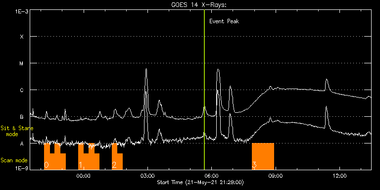 EIS Observation timeline overlay to GOES-Xray curve Code 1" 2" 40" 266" EIS Observations list for this event: STUDY ACRONYM ID DATE OBSERVED DESCRIPTION NOAA# TARGET 0 ar_evolution | 77307 | 2021/05/21 22:09:13 | AR 12824 - active region evolution | | Active Region TIMELINE ID DATE OBSERVED FITS FILE XCEN (+W/-E) YCEN (+N/-S) DUR ----------------------------------------------------------------------------------------------------------------- 77307 | 2021/05/21 22:09:13.000 | eis_l0_20210521_220913.fits.gz | -520.31 | 284.60 | 14m47s 77307 | 2021/05/21 22:24:03.000 | eis_l0_20210521_222403.fits.gz | -518.53 | 284.76 | 14m47s 77307 | 2021/05/21 22:38:53.000 | eis_l0_20210521_223853.fits.gz | -516.76 | 284.60 | 14m47s 77307 | 2021/05/21 22:53:43.000 | eis_l0_20210521_225343.fits.gz | -514.90 | 284.68 | 14m46s 1 ar_evolution | 77308 | 2021/05/21 23:44:43 | AR 12824 - active region evolution | | Active Region TIMELINE ID DATE OBSERVED FITS FILE XCEN (+W/-E) YCEN (+N/-S) DUR ----------------------------------------------------------------------------------------------------------------- 77308 | 2021/05/21 23:44:43.000 | eis_l0_20210521_234443.fits.gz | -508.72 | 284.76 | 14m47s 77308 | 2021/05/21 23:59:33.000 | eis_l0_20210521_235933.fits.gz | -506.95 | 284.91 | 14m48s 77308 | 2021/05/22 00:14:24.000 | eis_l0_20210522_001424.fits.gz | -505.25 | 284.76 | 14m47s 77308 | 2021/05/22 00:29:14.000 | eis_l0_20210522_002914.fits.gz | -503.39 | 284.83 | 14m47s 2 ar_evolution | 77303 | 2021/05/22 01:19:43 | AR 12824 - active region evolution | | Active Region TIMELINE ID DATE OBSERVED FITS FILE XCEN (+W/-E) YCEN (+N/-S) DUR ----------------------------------------------------------------------------------------------------------------- 77303 | 2021/05/22 01:19:43.000 | eis_l0_20210522_011943.fits.gz | -497.54 | 285.07 | 14m47s 77303 | 2021/05/22 01:34:33.000 | eis_l0_20210522_013433.fits.gz | -495.69 | 284.99 | 14m47s 3 Large_CH_Map | 77296 | 2021/05/22 07:53:13 | HOP393: cycle 24/25 equatorial transit | | Quiet Sun TIMELINE ID DATE OBSERVED FITS FILE XCEN (+W/-E) YCEN (+N/-S) DUR ----------------------------------------------------------------------------------------------------------------- 77296 | 2021/05/22 07:53:13.000 | eis_l0_20210522_075313.fits.gz | -45.95 | -40.38 | 1h1m52s : Check study information : Download file : View thumbnails For this event, also check for: