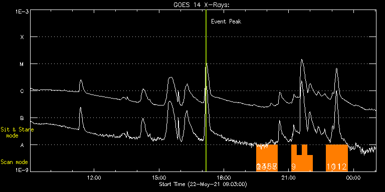 EIS Observation timeline overlay to GOES-Xray curve
