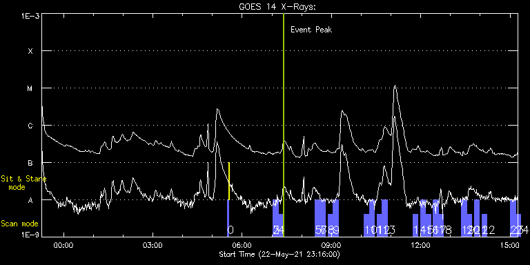 EIS Observation timeline overlay to GOES-Xray curve Code 1" 2" 40" 266" EIS Observations list for this event: STUDY ACRONYM ID DATE OBSERVED DESCRIPTION NOAA# TARGET 0 PRY_slot_contextLITE | 77341 | 2021/05/23 05:30:20 | Pointing Monitoring | | Active Region TIMELINE ID DATE OBSERVED FITS FILE XCEN (+W/-E) YCEN (+N/-S) DUR ----------------------------------------------------------------------------------------------------------------- 77341 | 2021/05/23 05:30:20.000 | eis_l0_20210523_053020.fits.gz | -15.29 | -0.50 | 2m56s 1 XRT_synop_AIA | 77342 | 2021/05/23 05:33:35 | Pointing Monitoring | | Quiet Sun TIMELINE ID DATE OBSERVED FITS FILE XCEN (+W/-E) YCEN (+N/-S) DUR ----------------------------------------------------------------------------------------------------------------- 77342 | 2021/05/23 05:33:35.000 | eis_l0_20210523_053335.fits.gz | -132.49 | -0.42 | 10s 2 full_sun_slot_scan_3 | 77313 | 2021/05/23 07:02:27 | HOP 130 Long Exposure #1/15-1 | | Quiet Sun TIMELINE ID DATE OBSERVED FITS FILE XCEN (+W/-E) YCEN (+N/-S) DUR ----------------------------------------------------------------------------------------------------------------- 77313 | 2021/05/23 07:02:27.000 | eis_l0_20210523_070227.fits.gz | 902.40 | 152.42 | 10m27s 3 full_sun_slot_scan_3 | 77313 | 2021/05/23 07:02:27 | HOP 130 Long Exposure #1/15-1 | | Quiet Sun TIMELINE ID DATE OBSERVED FITS FILE XCEN (+W/-E) YCEN (+N/-S) DUR ----------------------------------------------------------------------------------------------------------------- 77313 | 2021/05/23 07:02:27.000 | eis_l0_20210523_070227.fits.gz | 902.40 | 152.42 | 10m27s 4 full_sun_slot_scan_3 | 77314 | 2021/05/23 07:12:59 | HOP 130 Long Exposure #1/15-2 | | Quiet Sun TIMELINE ID DATE OBSERVED FITS FILE XCEN (+W/-E) YCEN (+N/-S) DUR ----------------------------------------------------------------------------------------------------------------- 77314 | 2021/05/23 07:12:59.000 | eis_l0_20210523_071259.fits.gz | 902.25 | -305.50 | 10m27s 5 full_sun_slot_scan_3 | 77315 | 2021/05/23 08:27:13 | HOP 130 Long Exposure #2/15-1 | | Quiet Sun TIMELINE ID DATE OBSERVED FITS FILE XCEN (+W/-E) YCEN (+N/-S) DUR ----------------------------------------------------------------------------------------------------------------- 77315 | 2021/05/23 08:27:13.000 | eis_l0_20210523_082713.fits.gz | 434.21 | 152.50 | 10m27s 6 full_sun_slot_scan_3 | 77316 | 2021/05/23 08:37:45 | HOP 130 Long Exposure #2/15-2 | | Quiet Sun TIMELINE ID DATE OBSERVED FITS FILE XCEN (+W/-E) YCEN (+N/-S) DUR ----------------------------------------------------------------------------------------------------------------- 77316 | 2021/05/23 08:37:45.000 | eis_l0_20210523_083745.fits.gz | 434.28 | -305.42 | 10m27s 7 full_sun_slot_scan_3 | 77316 | 2021/05/23 08:37:45 | HOP 130 Long Exposure #2/15-2 | | Quiet Sun TIMELINE ID DATE OBSERVED FITS FILE XCEN (+W/-E) YCEN (+N/-S) DUR ----------------------------------------------------------------------------------------------------------------- 77316 | 2021/05/23 08:37:45.000 | eis_l0_20210523_083745.fits.gz | 434.28 | -305.42 | 10m27s 8 full_sun_slot_scan_3 | 77317 | 2021/05/23 08:53:13 | HOP 130 Long Exposure #3/15-1 | 2824 | Quiet Sun TIMELINE ID DATE OBSERVED FITS FILE XCEN (+W/-E) YCEN (+N/-S) DUR ----------------------------------------------------------------------------------------------------------------- 77317 | 2021/05/23 08:53:13.000 | eis_l0_20210523_085313.fits.gz | -33.76 | 152.50 | 10m27s 9 full_sun_slot_scan_3 | 77318 | 2021/05/23 09:03:45 | HOP 130 Long Exposure #3/15-2 | | Quiet Sun TIMELINE ID DATE OBSERVED FITS FILE XCEN (+W/-E) YCEN (+N/-S) DUR ----------------------------------------------------------------------------------------------------------------- 77318 | 2021/05/23 09:03:45.000 | eis_l0_20210523_090345.fits.gz | -33.68 | -305.42 | 10m27s 10 full_sun_slot_scan_3 | 77319 | 2021/05/23 10:05:43 | HOP 130 Long Exposure #4/15-1 | 2825 | Quiet Sun TIMELINE ID DATE OBSERVED FITS FILE XCEN (+W/-E) YCEN (+N/-S) DUR ----------------------------------------------------------------------------------------------------------------- 77319 | 2021/05/23 10:05:43.000 | eis_l0_20210523_100543.fits.gz | -501.73 | 152.50 | 10m27s 11 full_sun_slot_scan_3 | 77320 | 2021/05/23 10:16:16 | HOP 130 Long Exposure #4/15-2 | | Quiet Sun TIMELINE ID DATE OBSERVED FITS FILE XCEN (+W/-E) YCEN (+N/-S) DUR ----------------------------------------------------------------------------------------------------------------- 77320 | 2021/05/23 10:16:16.000 | eis_l0_20210523_101616.fits.gz | -501.73 | -305.42 | 10m26s 12 full_sun_slot_scan_3 | 77321 | 2021/05/23 10:31:43 | HOP 130 Long Exposure #5/15-1 | | Quiet Sun TIMELINE ID DATE OBSERVED FITS FILE XCEN (+W/-E) YCEN (+N/-S) DUR ----------------------------------------------------------------------------------------------------------------- 77321 | 2021/05/23 10:31:43.000 | eis_l0_20210523_103143.fits.gz | -9903.16 | -9810.20 | 10m27s 13 full_sun_slot_scan_3 | 77322 | 2021/05/23 10:42:15 | HOP 130 Long Exposure #5/15-2 | | Quiet Sun TIMELINE ID DATE OBSERVED FITS FILE XCEN (+W/-E) YCEN (+N/-S) DUR ----------------------------------------------------------------------------------------------------------------- 77322 | 2021/05/23 10:42:15.000 | eis_l0_20210523_104215.fits.gz | -9903.16 | -10268.20 | 10m27s 14 full_sun_slot_scan_3 | 77323 | 2021/05/23 11:44:13 | HOP 130 Long Exposure #6/15 | | Quiet Sun TIMELINE ID DATE OBSERVED FITS FILE XCEN (+W/-E) YCEN (+N/-S) DUR ----------------------------------------------------------------------------------------------------------------- 77323 | 2021/05/23 11:44:13.000 | eis_l0_20210523_114413.fits.gz | 723.27 | 622.55 | 10m27s 15 full_sun_slot_scan_3 | 77324 | 2021/05/23 11:59:13 | HOP 130 Long Exposure #7/15-1 | | Quiet Sun TIMELINE ID DATE OBSERVED FITS FILE XCEN (+W/-E) YCEN (+N/-S) DUR ------------------------------------------------------------------------------------------------------