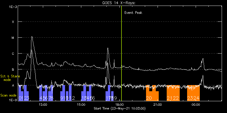 EIS Observation timeline overlay to GOES-Xray curve