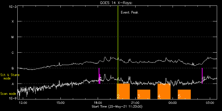 EIS Observation timeline overlay to GOES-Xray curve Code 1" 2" 40" 266" EIS Observations list for this event: STUDY ACRONYM ID DATE OBSERVED DESCRIPTION NOAA# TARGET 0 regcal071 | 77417 | 2021/05/25 18:03:42 | Dark exposures, CCD bottom rows (100s | | Engineering TIMELINE ID DATE OBSERVED FITS FILE XCEN (+W/-E) YCEN (+N/-S) DUR ----------------------------------------------------------------------------------------------------------------- 77417 | 2021/05/25 18:03:42.000 | eis_l0_20210525_180342.fits.gz | 14.59 | -305.50 | 3m22s 1 regcal072 | 77418 | 2021/05/25 18:07:31 | Dark exposures, top CCD rows (100s exp | | Engineering TIMELINE ID DATE OBSERVED FITS FILE XCEN (+W/-E) YCEN (+N/-S) DUR ----------------------------------------------------------------------------------------------------------------- 77418 | 2021/05/25 18:07:31.000 | eis_l0_20210525_180731.fits.gz | 14.59 | 205.50 | 3m21s 2 HPW021VEL260x512v2 | 77398 | 2021/05/25 19:32:11 | Active Region Studies | 2824 | Active Region TIMELINE ID DATE OBSERVED FITS FILE XCEN (+W/-E) YCEN (+N/-S) DUR ----------------------------------------------------------------------------------------------------------------- 77398 | 2021/05/25 19:32:11.000 | eis_l0_20210525_193211.fits.gz | 317.64 | 303.06 | 1h0m44s 3 HPW021VEL260x512v2 | 77399 | 2021/05/25 21:10:14 | Active Region Studies | 2824 | Active Region TIMELINE ID DATE OBSERVED FITS FILE XCEN (+W/-E) YCEN (+N/-S) DUR ----------------------------------------------------------------------------------------------------------------- 77399 | 2021/05/25 21:10:14.000 | eis_l0_20210525_211014.fits.gz | 330.85 | 302.83 | 1h0m44s 4 HPW021VEL260x512v2 | 77400 | 2021/05/25 22:48:13 | Active Region Studies | 2824 | Active Region TIMELINE ID DATE OBSERVED FITS FILE XCEN (+W/-E) YCEN (+N/-S) DUR ----------------------------------------------------------------------------------------------------------------- 77400 | 2021/05/25 22:48:13.000 | eis_l0_20210525_224813.fits.gz | 343.98 | 302.44 | 1h0m46s 5 Atlas_60 | 77401 | 2021/05/26 00:24:43 | Active Region Studies | | Quiet Sun TIMELINE ID DATE OBSERVED FITS FILE XCEN (+W/-E) YCEN (+N/-S) DUR ----------------------------------------------------------------------------------------------------------------- 77401 | 2021/05/26 00:24:43.000 | eis_l0_20210526_002443.fits.gz | 357.38 | 302.29 | 1h1m39s 6 regcal074 | 77420 | 2021/05/26 02:20:12 | Dark exposures including overscan pixe | | Engineering TIMELINE ID DATE OBSERVED FITS FILE XCEN (+W/-E) YCEN (+N/-S) DUR ----------------------------------------------------------------------------------------------------------------- 77420 | 2021/05/26 02:20:12.000 | eis_l0_20210526_022012.fits.gz | 14.59 | 205.42 | 3m21s 7 regcal076 | 77421 | 2021/05/26 02:24:01 | Flatfield, 1 exposure, led 100ms, ccd | | Engineering TIMELINE ID DATE OBSERVED FITS FILE XCEN (+W/-E) YCEN (+N/-S) DUR ----------------------------------------------------------------------------------------------------------------- 77421 | 2021/05/26 02:24:01.000 | eis_l0_20210526_022401.fits.gz | 14.59 | -50.42 | 1s : Check study information : Download file : View thumbnails For this event, also check for: