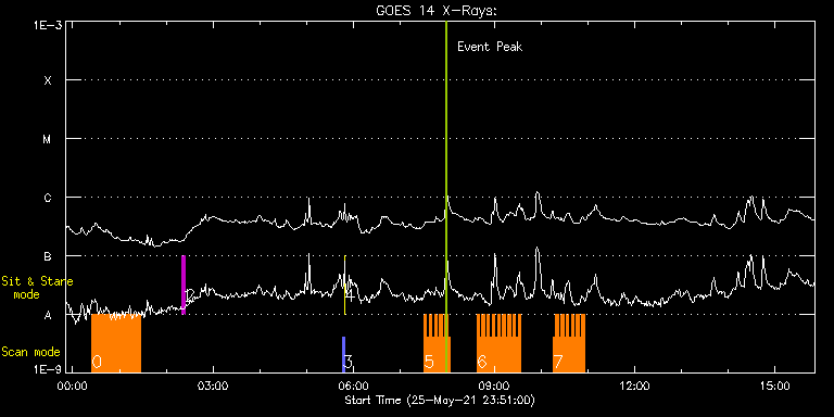EIS Observation timeline overlay to GOES-Xray curve Code 1" 2" 40" 266" EIS Observations list for this event: STUDY ACRONYM ID DATE OBSERVED DESCRIPTION NOAA# TARGET 0 Atlas_60 | 77401 | 2021/05/26 00:24:43 | Active Region Studies | | Quiet Sun TIMELINE ID DATE OBSERVED FITS FILE XCEN (+W/-E) YCEN (+N/-S) DUR ----------------------------------------------------------------------------------------------------------------- 77401 | 2021/05/26 00:24:43.000 | eis_l0_20210526_002443.fits.gz | 357.38 | 302.29 | 1h1m39s 1 regcal074 | 77420 | 2021/05/26 02:20:12 | Dark exposures including overscan pixe | | Engineering TIMELINE ID DATE OBSERVED FITS FILE XCEN (+W/-E) YCEN (+N/-S) DUR ----------------------------------------------------------------------------------------------------------------- 77420 | 2021/05/26 02:20:12.000 | eis_l0_20210526_022012.fits.gz | 14.59 | 205.42 | 3m21s 2 regcal076 | 77421 | 2021/05/26 02:24:01 | Flatfield, 1 exposure, led 100ms, ccd | | Engineering TIMELINE ID DATE OBSERVED FITS FILE XCEN (+W/-E) YCEN (+N/-S) DUR ----------------------------------------------------------------------------------------------------------------- 77421 | 2021/05/26 02:24:01.000 | eis_l0_20210526_022401.fits.gz | 14.59 | -50.42 | 1s 3 PRY_slot_contextLITE | 77375 | 2021/05/26 05:45:50 | Pointing Monitoring | | Active Region TIMELINE ID DATE OBSERVED FITS FILE XCEN (+W/-E) YCEN (+N/-S) DUR ----------------------------------------------------------------------------------------------------------------- 77375 | 2021/05/26 05:45:50.000 | eis_l0_20210526_054550.fits.gz | -15.29 | -0.58 | 2m56s 4 XRT_synop_AIA | 77376 | 2021/05/26 05:49:05 | Pointing Monitoring | | Quiet Sun TIMELINE ID DATE OBSERVED FITS FILE XCEN (+W/-E) YCEN (+N/-S) DUR ----------------------------------------------------------------------------------------------------------------- 77376 | 2021/05/26 05:49:05.000 | eis_l0_20210526_054905.fits.gz | -132.57 | -0.42 | 10s 5 qub_hi-cad_flare_v2 | 77393 | 2021/05/26 07:30:20 | HOP 418 (Joint GREGOR - Solar Orbiter/ | | Flare TIMELINE ID DATE OBSERVED FITS FILE XCEN (+W/-E) YCEN (+N/-S) DUR ----------------------------------------------------------------------------------------------------------------- 77393 | 2021/05/26 07:30:20.000 | eis_l0_20210526_073020.fits.gz | -446.71 | 275.33 | 3m16s 77393 | 2021/05/26 07:33:39.000 | eis_l0_20210526_073339.fits.gz | -446.32 | 275.33 | 3m17s 77393 | 2021/05/26 07:36:58.000 | eis_l0_20210526_073658.fits.gz | -445.94 | 275.33 | 3m16s 77393 | 2021/05/26 07:40:17.000 | eis_l0_20210526_074017.fits.gz | -445.40 | 275.33 | 3m17s 77393 | 2021/05/26 07:43:36.000 | eis_l0_20210526_074336.fits.gz | -445.01 | 275.25 | 3m17s 77393 | 2021/05/26 07:46:56.000 | eis_l0_20210526_074656.fits.gz | -444.62 | 275.25 | 3m16s 77393 | 2021/05/26 07:50:15.000 | eis_l0_20210526_075015.fits.gz | -444.24 | 275.25 | 3m16s 77393 | 2021/05/26 07:53:34.000 | eis_l0_20210526_075334.fits.gz | -443.70 | 275.25 | 3m17s 77393 | 2021/05/26 07:56:53.000 | eis_l0_20210526_075653.fits.gz | -443.31 | 275.33 | 3m17s 77393 | 2021/05/26 08:00:13.000 | eis_l0_20210526_080013.fits.gz | -443.00 | 275.25 | 3m16s 6 qub_hi-cad_flare_v2 | 77394 | 2021/05/26 08:37:40 | HOP 418 (Joint GREGOR - Solar Orbiter/ | | Flare TIMELINE ID DATE OBSERVED FITS FILE XCEN (+W/-E) YCEN (+N/-S) DUR ----------------------------------------------------------------------------------------------------------------- 77394 | 2021/05/26 08:37:40.000 | eis_l0_20210526_083740.fits.gz | -438.06 | 275.41 | 3m17s 77394 | 2021/05/26 08:41:00.000 | eis_l0_20210526_084100.fits.gz | -437.75 | 275.33 | 3m16s 77394 | 2021/05/26 08:44:19.000 | eis_l0_20210526_084419.fits.gz | -437.29 | 275.33 | 3m17s 77394 | 2021/05/26 08:47:38.000 | eis_l0_20210526_084738.fits.gz | -436.90 | 275.33 | 3m17s 77394 | 2021/05/26 08:50:57.000 | eis_l0_20210526_085057.fits.gz | -436.43 | 275.33 | 3m17s 77394 | 2021/05/26 08:54:16.000 | eis_l0_20210526_085416.fits.gz | -435.97 | 275.41 | 3m17s 77394 | 2021/05/26 08:57:36.000 | eis_l0_20210526_085736.fits.gz | -435.66 | 275.33 | 3m16s 77394 | 2021/05/26 09:00:55.000 | eis_l0_20210526_090055.fits.gz | -435.20 | 275.41 | 3m16s 77394 | 2021/05/26 09:04:14.000 | eis_l0_20210526_090414.fits.gz | -434.73 | 275.33 | 3m16s 77394 | 2021/05/26 09:07:33.000 | eis_l0_20210526_090733.fits.gz | -434.27 | 275.41 | 3m17s 77394 | 2021/05/26 09:10:53.000 | eis_l0_20210526_091053.fits.gz | -433.89 | 275.41 | 3m16s 77394 | 2021/05/26 09:14:12.000 | eis_l0_20210526_091412.fits.gz | -433.42 | 275.41 | 3m16s 77394 | 2021/05/26 09:17:31.000 | eis_l0_20210526_091731.fits.gz | -433.04 | 275.41 | 3m17s 77394 | 2021/05/26 09:20:50.000 | eis_l0_20210526_092050.fits.gz | -432.65 | 275.33 | 3m17s 77394 | 2021/05/26 09:24:09.000 | eis_l0_20210526_092409.fits.gz | -432.19 | 275.33 | 3m17s 77394 | 2021/05/26 09:27:29.000 | eis_l0_20210526_092729.fits.gz | -431.80 | 275.33 | 3m16s 77394 | 2021/05/26 09:30:48.000 | eis_l0_20210526_093048.fits.gz | -431.34 | 275.41 | 3m16s 7 qub_hi-cad_flare_v2 | 77395 | 2021/05/26 10:15:43 | HOP 418 (Joint GREGOR - Solar Orbiter/ | | Flare TIMELINE ID DATE OBSERVED FITS FILE XCEN (+W/-E) YCEN (+N/-S) DUR ----------------------------------------------------------------------------------------------------------------- 77395 | 2021/05/26 10:15:43.000 | eis_l0_20210526_101543.fits.gz | -425.54 | 275.41 | 3m16s 77395 | 2021/05/26 10:19:02.000 | eis_l0_20210526_101902.fits.gz | -425.16 | 275.41 | 3m16s 77395 | 2021/05/26 10:22:21.000 | eis_l0_20210526_102221.fits.gz | -424.69 | 275.33 | 3m16s 77395 | 2021/05/26 10:25:40.000 | eis_l0_20210526_102540.fits.gz | -424.23 | 275.56 | 3m16s 77395 | 2021/05/26 10:28:59.000 | eis_l0_20210526_102859.fits.gz | -423.84 | 275.48 | 3m16s 77395 | 2021/05/26 10:32:18.000 | eis_l0_20210526_103218.fits.gz | -423.46 | 275.41 | 3m16s 77395 | 2021/05/26 10:35:37.000 | eis_l0_20210526_103537.fits.gz | -423.07 | 275.33 | 3m16s 77395 | 2021/05/26 10:38:56.000 | eis_l0_20210526_103856.