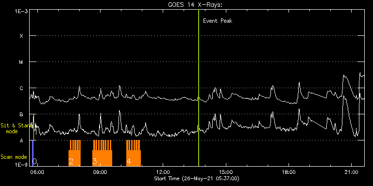 EIS Observation timeline overlay to GOES-Xray curve Code 1" 2" 40" 266" EIS Observations list for this event: STUDY ACRONYM ID DATE OBSERVED DESCRIPTION NOAA# TARGET 0 PRY_slot_contextLITE | 77375 | 2021/05/26 05:45:50 | Pointing Monitoring | | Active Region TIMELINE ID DATE OBSERVED FITS FILE XCEN (+W/-E) YCEN (+N/-S) DUR ----------------------------------------------------------------------------------------------------------------- 77375 | 2021/05/26 05:45:50.000 | eis_l0_20210526_054550.fits.gz | -15.29 | -0.58 | 2m56s 1 XRT_synop_AIA | 77376 | 2021/05/26 05:49:05 | Pointing Monitoring | | Quiet Sun TIMELINE ID DATE OBSERVED FITS FILE XCEN (+W/-E) YCEN (+N/-S) DUR ----------------------------------------------------------------------------------------------------------------- 77376 | 2021/05/26 05:49:05.000 | eis_l0_20210526_054905.fits.gz | -132.57 | -0.42 | 10s 2 qub_hi-cad_flare_v2 | 77393 | 2021/05/26 07:30:20 | HOP 418 (Joint GREGOR - Solar Orbiter/ | | Flare TIMELINE ID DATE OBSERVED FITS FILE XCEN (+W/-E) YCEN (+N/-S) DUR ----------------------------------------------------------------------------------------------------------------- 77393 | 2021/05/26 07:30:20.000 | eis_l0_20210526_073020.fits.gz | -446.71 | 275.33 | 3m16s 77393 | 2021/05/26 07:33:39.000 | eis_l0_20210526_073339.fits.gz | -446.32 | 275.33 | 3m17s 77393 | 2021/05/26 07:36:58.000 | eis_l0_20210526_073658.fits.gz | -445.94 | 275.33 | 3m16s 77393 | 2021/05/26 07:40:17.000 | eis_l0_20210526_074017.fits.gz | -445.40 | 275.33 | 3m17s 77393 | 2021/05/26 07:43:36.000 | eis_l0_20210526_074336.fits.gz | -445.01 | 275.25 | 3m17s 77393 | 2021/05/26 07:46:56.000 | eis_l0_20210526_074656.fits.gz | -444.62 | 275.25 | 3m16s 77393 | 2021/05/26 07:50:15.000 | eis_l0_20210526_075015.fits.gz | -444.24 | 275.25 | 3m16s 77393 | 2021/05/26 07:53:34.000 | eis_l0_20210526_075334.fits.gz | -443.70 | 275.25 | 3m17s 77393 | 2021/05/26 07:56:53.000 | eis_l0_20210526_075653.fits.gz | -443.31 | 275.33 | 3m17s 77393 | 2021/05/26 08:00:13.000 | eis_l0_20210526_080013.fits.gz | -443.00 | 275.25 | 3m16s 3 qub_hi-cad_flare_v2 | 77394 | 2021/05/26 08:37:40 | HOP 418 (Joint GREGOR - Solar Orbiter/ | | Flare TIMELINE ID DATE OBSERVED FITS FILE XCEN (+W/-E) YCEN (+N/-S) DUR ----------------------------------------------------------------------------------------------------------------- 77394 | 2021/05/26 08:37:40.000 | eis_l0_20210526_083740.fits.gz | -438.06 | 275.41 | 3m17s 77394 | 2021/05/26 08:41:00.000 | eis_l0_20210526_084100.fits.gz | -437.75 | 275.33 | 3m16s 77394 | 2021/05/26 08:44:19.000 | eis_l0_20210526_084419.fits.gz | -437.29 | 275.33 | 3m17s 77394 | 2021/05/26 08:47:38.000 | eis_l0_20210526_084738.fits.gz | -436.90 | 275.33 | 3m17s 77394 | 2021/05/26 08:50:57.000 | eis_l0_20210526_085057.fits.gz | -436.43 | 275.33 | 3m17s 77394 | 2021/05/26 08:54:16.000 | eis_l0_20210526_085416.fits.gz | -435.97 | 275.41 | 3m17s 77394 | 2021/05/26 08:57:36.000 | eis_l0_20210526_085736.fits.gz | -435.66 | 275.33 | 3m16s 77394 | 2021/05/26 09:00:55.000 | eis_l0_20210526_090055.fits.gz | -435.20 | 275.41 | 3m16s 77394 | 2021/05/26 09:04:14.000 | eis_l0_20210526_090414.fits.gz | -434.73 | 275.33 | 3m16s 77394 | 2021/05/26 09:07:33.000 | eis_l0_20210526_090733.fits.gz | -434.27 | 275.41 | 3m17s 77394 | 2021/05/26 09:10:53.000 | eis_l0_20210526_091053.fits.gz | -433.89 | 275.41 | 3m16s 77394 | 2021/05/26 09:14:12.000 | eis_l0_20210526_091412.fits.gz | -433.42 | 275.41 | 3m16s 77394 | 2021/05/26 09:17:31.000 | eis_l0_20210526_091731.fits.gz | -433.04 | 275.41 | 3m17s 77394 | 2021/05/26 09:20:50.000 | eis_l0_20210526_092050.fits.gz | -432.65 | 275.33 | 3m17s 77394 | 2021/05/26 09:24:09.000 | eis_l0_20210526_092409.fits.gz | -432.19 | 275.33 | 3m17s 77394 | 2021/05/26 09:27:29.000 | eis_l0_20210526_092729.fits.gz | -431.80 | 275.33 | 3m16s 77394 | 2021/05/26 09:30:48.000 | eis_l0_20210526_093048.fits.gz | -431.34 | 275.41 | 3m16s 4 qub_hi-cad_flare_v2 | 77395 | 2021/05/26 10:15:43 | HOP 418 (Joint GREGOR - Solar Orbiter/ | | Flare TIMELINE ID DATE OBSERVED FITS FILE XCEN (+W/-E) YCEN (+N/-S) DUR ----------------------------------------------------------------------------------------------------------------- 77395 | 2021/05/26 10:15:43.000 | eis_l0_20210526_101543.fits.gz | -425.54 | 275.41 | 3m16s 77395 | 2021/05/26 10:19:02.000 | eis_l0_20210526_101902.fits.gz | -425.16 | 275.41 | 3m16s 77395 | 2021/05/26 10:22:21.000 | eis_l0_20210526_102221.fits.gz | -424.69 | 275.33 | 3m16s 77395 | 2021/05/26 10:25:40.000 | eis_l0_20210526_102540.fits.gz | -424.23 | 275.56 | 3m16s 77395 | 2021/05/26 10:28:59.000 | eis_l0_20210526_102859.fits.gz | -423.84 | 275.48 | 3m16s 77395 | 2021/05/26 10:32:18.000 | eis_l0_20210526_103218.fits.gz | -423.46 | 275.41 | 3m16s 77395 | 2021/05/26 10:35:37.000 | eis_l0_20210526_103537.fits.gz | -423.07 | 275.33 | 3m16s 77395 | 2021/05/26 10:38:56.000 | eis_l0_20210526_103856.fits.gz | -422.68 | 275.48 | 3m17s 77395 | 2021/05/26 10:42:15.000 | eis_l0_20210526_104215.fits.gz | -422.14 | 275.41 | 3m17s 77395 | 2021/05/26 10:45:34.000 | eis_l0_20210526_104534.fits.gz | -421.83 | 275.48 | 3m17s 77395 | 2021/05/26 10:48:54.000 | eis_l0_20210526_104854.fits.gz | -421.22 | 275.41 | 3m16s 77395 | 2021/05/26 10:52:13.000 | eis_l0_20210526_105213.fits.gz | -420.75 | 275.41 | 3m16s : Check study information : Download file : View thumbnails For this event, also check for: