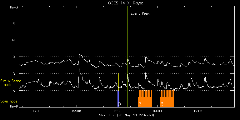 EIS Observation timeline overlay to GOES-Xray curve Code 1" 2" 40" 266" EIS Observations list for this event: STUDY ACRONYM ID DATE OBSERVED DESCRIPTION NOAA# TARGET 0 PRY_slot_contextLITE | 77377 | 2021/05/27 06:03:20 | Pointing Monitoring | | Active Region TIMELINE ID DATE OBSERVED FITS FILE XCEN (+W/-E) YCEN (+N/-S) DUR ----------------------------------------------------------------------------------------------------------------- 77377 | 2021/05/27 06:03:20.000 | eis_l0_20210527_060320.fits.gz | -15.29 | -0.50 | 2m56s 1 XRT_synop_AIA | 77378 | 2021/05/27 06:06:34 | Pointing Monitoring | | Quiet Sun TIMELINE ID DATE OBSERVED FITS FILE XCEN (+W/-E) YCEN (+N/-S) DUR ----------------------------------------------------------------------------------------------------------------- 77378 | 2021/05/27 06:06:34.000 | eis_l0_20210527_060634.fits.gz | -132.57 | -0.42 | 11s 2 qub_hi-cad_flare_v2 | 77389 | 2021/05/27 07:34:49 | HOP 418 (Joint GREGOR - Solar Orbiter/ | | Flare TIMELINE ID DATE OBSERVED FITS FILE XCEN (+W/-E) YCEN (+N/-S) DUR ----------------------------------------------------------------------------------------------------------------- 77389 | 2021/05/27 07:34:49.000 | eis_l0_20210527_073449.fits.gz | -253.76 | 274.56 | 3m17s 77389 | 2021/05/27 07:38:09.000 | eis_l0_20210527_073809.fits.gz | -253.30 | 274.41 | 3m16s 77389 | 2021/05/27 07:41:28.000 | eis_l0_20210527_074128.fits.gz | -252.91 | 274.48 | 3m16s 77389 | 2021/05/27 07:44:47.000 | eis_l0_20210527_074447.fits.gz | -252.45 | 274.41 | 3m16s 77389 | 2021/05/27 07:48:05.000 | eis_l0_20210527_074805.fits.gz | -251.99 | 274.48 | 3m16s 77389 | 2021/05/27 07:51:24.000 | eis_l0_20210527_075124.fits.gz | -251.45 | 274.48 | 3m16s 77389 | 2021/05/27 07:54:42.000 | eis_l0_20210527_075442.fits.gz | -251.06 | 274.33 | 3m17s 77389 | 2021/05/27 07:58:02.000 | eis_l0_20210527_075802.fits.gz | -250.67 | 274.33 | 3m16s 77389 | 2021/05/27 08:01:21.000 | eis_l0_20210527_080121.fits.gz | -250.13 | 274.48 | 3m16s 77389 | 2021/05/27 08:04:40.000 | eis_l0_20210527_080440.fits.gz | -249.67 | 274.48 | 3m16s 77389 | 2021/05/27 08:07:59.000 | eis_l0_20210527_080759.fits.gz | -249.21 | 274.48 | 3m16s 77389 | 2021/05/27 08:11:18.000 | eis_l0_20210527_081118.fits.gz | -248.74 | 274.41 | 3m16s 77389 | 2021/05/27 08:14:37.000 | eis_l0_20210527_081437.fits.gz | -248.20 | 274.56 | 3m16s 77389 | 2021/05/27 08:17:55.000 | eis_l0_20210527_081755.fits.gz | -247.81 | 274.33 | 3m17s 77389 | 2021/05/27 08:21:15.000 | eis_l0_20210527_082115.fits.gz | -247.35 | 274.41 | 3m16s 77389 | 2021/05/27 08:24:34.000 | eis_l0_20210527_082434.fits.gz | -246.89 | 274.33 | 3m16s 77389 | 2021/05/27 08:27:53.000 | eis_l0_20210527_082753.fits.gz | -246.42 | 274.25 | 3m16s 77389 | 2021/05/27 08:31:12.000 | eis_l0_20210527_083112.fits.gz | -245.96 | 274.41 | 3m16s 3 qub_hi-cad_flare_v2 | 77390 | 2021/05/27 09:13:10 | HOP 418 (Joint GREGOR - Solar Orbiter/ | | Flare TIMELINE ID DATE OBSERVED FITS FILE XCEN (+W/-E) YCEN (+N/-S) DUR ----------------------------------------------------------------------------------------------------------------- 77390 | 2021/05/27 09:13:10.000 | eis_l0_20210527_091310.fits.gz | -240.01 | 274.48 | 3m17s 77390 | 2021/05/27 09:16:30.000 | eis_l0_20210527_091630.fits.gz | -239.55 | 274.41 | 3m16s 77390 | 2021/05/27 09:19:49.000 | eis_l0_20210527_091949.fits.gz | -239.24 | 274.41 | 3m16s 77390 | 2021/05/27 09:23:08.000 | eis_l0_20210527_092308.fits.gz | -238.70 | 274.41 | 3m17s 77390 | 2021/05/27 09:26:27.000 | eis_l0_20210527_092627.fits.gz | -238.24 | 274.41 | 3m17s 77390 | 2021/05/27 09:29:46.000 | eis_l0_20210527_092946.fits.gz | -237.70 | 274.41 | 3m17s 77390 | 2021/05/27 09:33:05.000 | eis_l0_20210527_093305.fits.gz | -237.39 | 274.33 | 3m17s 77390 | 2021/05/27 09:36:25.000 | eis_l0_20210527_093625.fits.gz | -236.92 | 274.33 | 3m16s 77390 | 2021/05/27 09:39:44.000 | eis_l0_20210527_093944.fits.gz | -236.38 | 274.48 | 3m17s 77390 | 2021/05/27 09:43:03.000 | eis_l0_20210527_094303.fits.gz | -235.92 | 274.41 | 3m17s 77390 | 2021/05/27 09:46:22.000 | eis_l0_20210527_094622.fits.gz | -235.45 | 274.41 | 3m17s 77390 | 2021/05/27 09:49:42.000 | eis_l0_20210527_094942.fits.gz | -234.99 | 274.48 | 3m16s 77390 | 2021/05/27 09:53:00.000 | eis_l0_20210527_095300.fits.gz | -234.45 | 274.33 | 3m17s 77390 | 2021/05/27 09:56:19.000 | eis_l0_20210527_095619.fits.gz | -233.99 | 274.33 | 3m17s 77390 | 2021/05/27 09:59:39.000 | eis_l0_20210527_095939.fits.gz | -233.60 | 274.48 | 3m16s 77390 | 2021/05/27 10:02:58.000 | eis_l0_20210527_100258.fits.gz | -233.14 | 274.33 | 3m16s 77390 | 2021/05/27 10:06:17.000 | eis_l0_20210527_100617.fits.gz | -232.67 | 274.41 | 3m16s 77390 | 2021/05/27 10:09:36.000 | eis_l0_20210527_100936.fits.gz | -232.21 | 274.41 | 3m17s : Check study information : Download file : View thumbnails For this event, also check for: