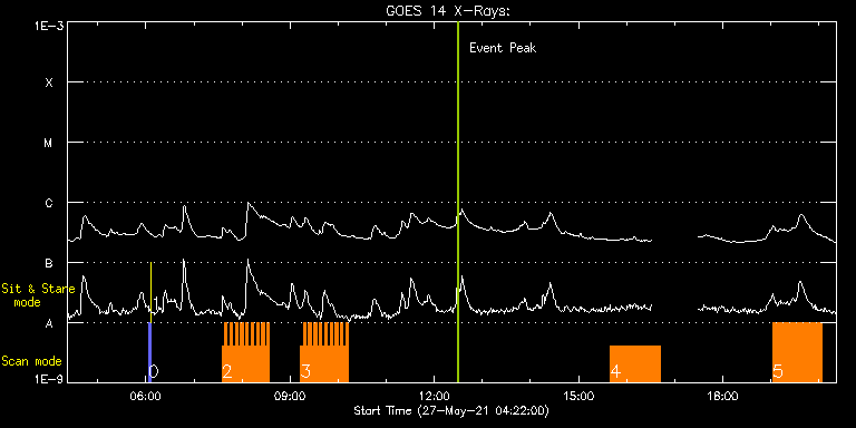 EIS Observation timeline overlay to GOES-Xray curve Code 1" 2" 40" 266" EIS Observations list for this event: STUDY ACRONYM ID DATE OBSERVED DESCRIPTION NOAA# TARGET 0 PRY_slot_contextLITE | 77377 | 2021/05/27 06:03:20 | Pointing Monitoring | | Active Region TIMELINE ID DATE OBSERVED FITS FILE XCEN (+W/-E) YCEN (+N/-S) DUR ----------------------------------------------------------------------------------------------------------------- 77377 | 2021/05/27 06:03:20.000 | eis_l0_20210527_060320.fits.gz | -15.29 | -0.50 | 2m56s 1 XRT_synop_AIA | 77378 | 2021/05/27 06:06:34 | Pointing Monitoring | | Quiet Sun TIMELINE ID DATE OBSERVED FITS FILE XCEN (+W/-E) YCEN (+N/-S) DUR ----------------------------------------------------------------------------------------------------------------- 77378 | 2021/05/27 06:06:34.000 | eis_l0_20210527_060634.fits.gz | -132.57 | -0.42 | 11s 2 qub_hi-cad_flare_v2 | 77389 | 2021/05/27 07:34:49 | HOP 418 (Joint GREGOR - Solar Orbiter/ | | Flare TIMELINE ID DATE OBSERVED FITS FILE XCEN (+W/-E) YCEN (+N/-S) DUR ----------------------------------------------------------------------------------------------------------------- 77389 | 2021/05/27 07:34:49.000 | eis_l0_20210527_073449.fits.gz | -253.76 | 274.56 | 3m17s 77389 | 2021/05/27 07:38:09.000 | eis_l0_20210527_073809.fits.gz | -253.30 | 274.41 | 3m16s 77389 | 2021/05/27 07:41:28.000 | eis_l0_20210527_074128.fits.gz | -252.91 | 274.48 | 3m16s 77389 | 2021/05/27 07:44:47.000 | eis_l0_20210527_074447.fits.gz | -252.45 | 274.41 | 3m16s 77389 | 2021/05/27 07:48:05.000 | eis_l0_20210527_074805.fits.gz | -251.99 | 274.48 | 3m16s 77389 | 2021/05/27 07:51:24.000 | eis_l0_20210527_075124.fits.gz | -251.45 | 274.48 | 3m16s 77389 | 2021/05/27 07:54:42.000 | eis_l0_20210527_075442.fits.gz | -251.06 | 274.33 | 3m17s 77389 | 2021/05/27 07:58:02.000 | eis_l0_20210527_075802.fits.gz | -250.67 | 274.33 | 3m16s 77389 | 2021/05/27 08:01:21.000 | eis_l0_20210527_080121.fits.gz | -250.13 | 274.48 | 3m16s 77389 | 2021/05/27 08:04:40.000 | eis_l0_20210527_080440.fits.gz | -249.67 | 274.48 | 3m16s 77389 | 2021/05/27 08:07:59.000 | eis_l0_20210527_080759.fits.gz | -249.21 | 274.48 | 3m16s 77389 | 2021/05/27 08:11:18.000 | eis_l0_20210527_081118.fits.gz | -248.74 | 274.41 | 3m16s 77389 | 2021/05/27 08:14:37.000 | eis_l0_20210527_081437.fits.gz | -248.20 | 274.56 | 3m16s 77389 | 2021/05/27 08:17:55.000 | eis_l0_20210527_081755.fits.gz | -247.81 | 274.33 | 3m17s 77389 | 2021/05/27 08:21:15.000 | eis_l0_20210527_082115.fits.gz | -247.35 | 274.41 | 3m16s 77389 | 2021/05/27 08:24:34.000 | eis_l0_20210527_082434.fits.gz | -246.89 | 274.33 | 3m16s 77389 | 2021/05/27 08:27:53.000 | eis_l0_20210527_082753.fits.gz | -246.42 | 274.25 | 3m16s 77389 | 2021/05/27 08:31:12.000 | eis_l0_20210527_083112.fits.gz | -245.96 | 274.41 | 3m16s 3 qub_hi-cad_flare_v2 | 77390 | 2021/05/27 09:13:10 | HOP 418 (Joint GREGOR - Solar Orbiter/ | | Flare TIMELINE ID DATE OBSERVED FITS FILE XCEN (+W/-E) YCEN (+N/-S) DUR ----------------------------------------------------------------------------------------------------------------- 77390 | 2021/05/27 09:13:10.000 | eis_l0_20210527_091310.fits.gz | -240.01 | 274.48 | 3m17s 77390 | 2021/05/27 09:16:30.000 | eis_l0_20210527_091630.fits.gz | -239.55 | 274.41 | 3m16s 77390 | 2021/05/27 09:19:49.000 | eis_l0_20210527_091949.fits.gz | -239.24 | 274.41 | 3m16s 77390 | 2021/05/27 09:23:08.000 | eis_l0_20210527_092308.fits.gz | -238.70 | 274.41 | 3m17s 77390 | 2021/05/27 09:26:27.000 | eis_l0_20210527_092627.fits.gz | -238.24 | 274.41 | 3m17s 77390 | 2021/05/27 09:29:46.000 | eis_l0_20210527_092946.fits.gz | -237.70 | 274.41 | 3m17s 77390 | 2021/05/27 09:33:05.000 | eis_l0_20210527_093305.fits.gz | -237.39 | 274.33 | 3m17s 77390 | 2021/05/27 09:36:25.000 | eis_l0_20210527_093625.fits.gz | -236.92 | 274.33 | 3m16s 77390 | 2021/05/27 09:39:44.000 | eis_l0_20210527_093944.fits.gz | -236.38 | 274.48 | 3m17s 77390 | 2021/05/27 09:43:03.000 | eis_l0_20210527_094303.fits.gz | -235.92 | 274.41 | 3m17s 77390 | 2021/05/27 09:46:22.000 | eis_l0_20210527_094622.fits.gz | -235.45 | 274.41 | 3m17s 77390 | 2021/05/27 09:49:42.000 | eis_l0_20210527_094942.fits.gz | -234.99 | 274.48 | 3m16s 77390 | 2021/05/27 09:53:00.000 | eis_l0_20210527_095300.fits.gz | -234.45 | 274.33 | 3m17s 77390 | 2021/05/27 09:56:19.000 | eis_l0_20210527_095619.fits.gz | -233.99 | 274.33 | 3m17s 77390 | 2021/05/27 09:59:39.000 | eis_l0_20210527_095939.fits.gz | -233.60 | 274.48 | 3m16s 77390 | 2021/05/27 10:02:58.000 | eis_l0_20210527_100258.fits.gz | -233.14 | 274.33 | 3m16s 77390 | 2021/05/27 10:06:17.000 | eis_l0_20210527_100617.fits.gz | -232.67 | 274.41 | 3m16s 77390 | 2021/05/27 10:09:36.000 | eis_l0_20210527_100936.fits.gz | -232.21 | 274.41 | 3m17s 4 Atlas_60 | 77422 | 2021/05/27 15:39:50 | Active Region Studies | | Quiet Sun TIMELINE ID DATE OBSERVED FITS FILE XCEN (+W/-E) YCEN (+N/-S) DUR ----------------------------------------------------------------------------------------------------------------- 77422 | 2021/05/27 15:39:50.000 | eis_l0_20210527_153950.fits.gz | 638.53 | 293.95 | 1h1m39s 5 HPW021VEL260x512v2 | 77405 | 2021/05/27 19:02:40 | Active Region Studies | 2824 | Active Region TIMELINE ID DATE OBSERVED FITS FILE XCEN (+W/-E) YCEN (+N/-S) DUR ----------------------------------------------------------------------------------------------------------------- 77405 | 2021/05/27 19:02:40.000 | eis_l0_20210527_190240.fits.gz | 658.57 | 293.49 | 1h0m45s : Check study information : Download file : View thumbnails For this event, also check for:
