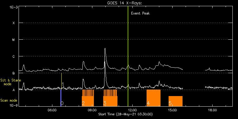 EIS Observation timeline overlay to GOES-Xray curve