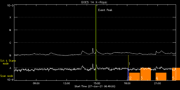 EIS Observation timeline overlay to GOES-Xray curve Code 1" 2" 40" 266" EIS Observations list for this event: STUDY ACRONYM ID DATE OBSERVED DESCRIPTION NOAA# TARGET 0 PRY_slot_contextLITE | 77453 | 2021/06/07 18:03:25 | Pointing Monitoring | | Active Region TIMELINE ID DATE OBSERVED FITS FILE XCEN (+W/-E) YCEN (+N/-S) DUR ----------------------------------------------------------------------------------------------------------------- 77453 | 2021/06/07 18:03:25.000 | eis_l0_20210607_180325.fits.gz | -15.44 | -0.58 | 2m56s 1 XRT_synop_AIA | 77454 | 2021/06/07 18:06:56 | Pointing Monitoring | | Quiet Sun TIMELINE ID DATE OBSERVED FITS FILE XCEN (+W/-E) YCEN (+N/-S) DUR ----------------------------------------------------------------------------------------------------------------- 77454 | 2021/06/07 18:06:56.000 | eis_l0_20210607_180656.fits.gz | -132.57 | -0.58 | 10s 2 Large_CH_Map | 77459 | 2021/06/07 18:12:48 | HOP 336 (Cycle 25 bright points) North | | Quiet Sun TIMELINE ID DATE OBSERVED FITS FILE XCEN (+W/-E) YCEN (+N/-S) DUR ----------------------------------------------------------------------------------------------------------------- 77459 | 2021/06/07 18:12:48.000 | eis_l0_20210607_181248.fits.gz | -185.54 | 497.92 | 1h1m54s 3 Large_CH_Map | 77460 | 2021/06/07 19:18:38 | HOP 336 (Cycle 25 bright points) North | | Quiet Sun TIMELINE ID DATE OBSERVED FITS FILE XCEN (+W/-E) YCEN (+N/-S) DUR ----------------------------------------------------------------------------------------------------------------- 77460 | 2021/06/07 19:18:38.000 | eis_l0_20210607_191838.fits.gz | -27.42 | 497.61 | 1h1m53s 4 Large_CH_Map | 77461 | 2021/06/07 20:49:39 | HOP 336 (Cycle 25 bright points) North | | Quiet Sun TIMELINE ID DATE OBSERVED FITS FILE XCEN (+W/-E) YCEN (+N/-S) DUR ----------------------------------------------------------------------------------------------------------------- 77461 | 2021/06/07 20:49:39.000 | eis_l0_20210607_204939.fits.gz | 133.79 | 497.54 | 1h1m52s 5 Large_CH_Map | 77458 | 2021/06/07 22:26:38 | HOP 336 (Cycle 25 bright points) South | | Quiet Sun TIMELINE ID DATE OBSERVED FITS FILE XCEN (+W/-E) YCEN (+N/-S) DUR ----------------------------------------------------------------------------------------------------------------- 77458 | 2021/06/07 22:26:38.000 | eis_l0_20210607_222638.fits.gz | -175.42 | -648.38 | 1h1m54s : Check study information : Download file : View thumbnails For this event, also check for: