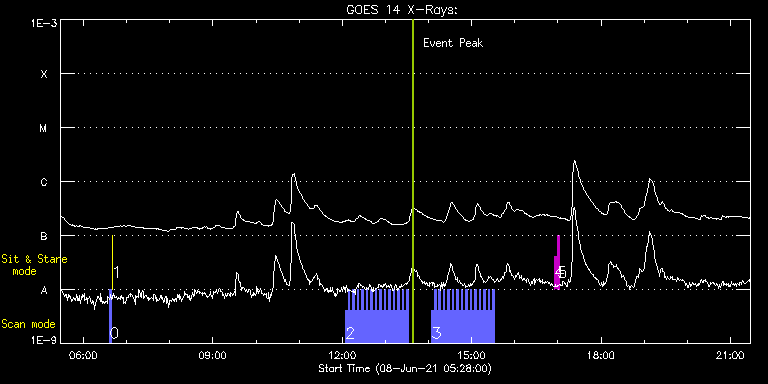 EIS Observation timeline overlay to GOES-Xray curve