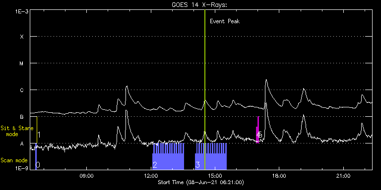 EIS Observation timeline overlay to GOES-Xray curve