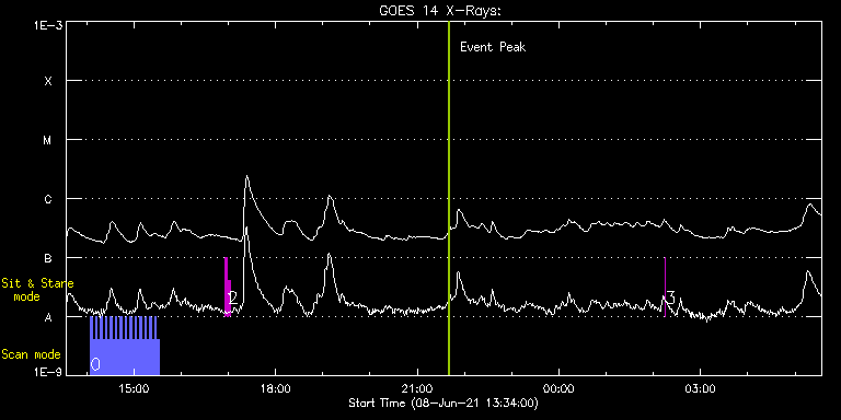 EIS Observation timeline overlay to GOES-Xray curve Code 1" 2" 40" 266" EIS Observations list for this event: STUDY ACRONYM ID DATE OBSERVED DESCRIPTION NOAA# TARGET 0 Alignment_modify_v2 | 77494 | 2021/06/08 14:04:46 | Co-alignment program E. Limb | | Quiet Sun TIMELINE ID DATE OBSERVED FITS FILE XCEN (+W/-E) YCEN (+N/-S) DUR ----------------------------------------------------------------------------------------------------------------- 77494 | 2021/06/08 14:04:46.000 | eis_l0_20210608_140446.fits.gz | -9889.18 | -10003.20 | 2m34s 77494 | 2021/06/08 14:07:53.000 | eis_l0_20210608_140753.fits.gz | -9889.18 | -10003.20 | 2m34s 77494 | 2021/06/08 14:11:01.000 | eis_l0_20210608_141101.fits.gz | -9889.18 | -10003.20 | 2m34s 77494 | 2021/06/08 14:14:08.000 | eis_l0_20210608_141408.fits.gz | -9889.18 | -10003.20 | 2m34s 77494 | 2021/06/08 14:17:16.000 | eis_l0_20210608_141716.fits.gz | -9889.18 | -10003.20 | 2m34s 77494 | 2021/06/08 14:20:23.000 | eis_l0_20210608_142023.fits.gz | -9889.18 | -10003.20 | 2m34s 77494 | 2021/06/08 14:23:31.000 | eis_l0_20210608_142331.fits.gz | -9889.18 | -10003.20 | 2m34s 77494 | 2021/06/08 14:26:38.000 | eis_l0_20210608_142638.fits.gz | -9889.18 | -10003.20 | 2m34s 77494 | 2021/06/08 14:29:46.000 | eis_l0_20210608_142946.fits.gz | -9889.18 | -10003.20 | 2m34s 77494 | 2021/06/08 14:32:54.000 | eis_l0_20210608_143254.fits.gz | -9889.18 | -10003.20 | 2m33s 77494 | 2021/06/08 14:36:01.000 | eis_l0_20210608_143601.fits.gz | -9889.18 | -10003.20 | 2m34s 77494 | 2021/06/08 14:39:09.000 | eis_l0_20210608_143909.fits.gz | -9889.18 | -10003.20 | 2m34s 77494 | 2021/06/08 14:42:16.000 | eis_l0_20210608_144216.fits.gz | -9889.18 | -10003.20 | 2m34s 77494 | 2021/06/08 14:45:24.000 | eis_l0_20210608_144524.fits.gz | -9889.18 | -10003.20 | 2m34s 77494 | 2021/06/08 14:48:31.000 | eis_l0_20210608_144831.fits.gz | -9889.18 | -10003.20 | 2m34s 77494 | 2021/06/08 14:51:39.000 | eis_l0_20210608_145139.fits.gz | -9889.18 | -10003.20 | 2m34s 77494 | 2021/06/08 14:54:47.000 | eis_l0_20210608_145447.fits.gz | -9889.18 | -10003.20 | 2m33s 77494 | 2021/06/08 14:57:54.000 | eis_l0_20210608_145754.fits.gz | -9889.18 | -10003.20 | 2m34s 77494 | 2021/06/08 15:01:01.000 | eis_l0_20210608_150101.fits.gz | -9889.18 | -10003.20 | 2m34s 77494 | 2021/06/08 15:04:09.000 | eis_l0_20210608_150409.fits.gz | -9889.18 | -10003.20 | 2m34s 77494 | 2021/06/08 15:07:17.000 | eis_l0_20210608_150717.fits.gz | -9889.18 | -10003.20 | 2m33s 77494 | 2021/06/08 15:10:24.000 | eis_l0_20210608_151024.fits.gz | -9889.18 | -10003.20 | 2m34s 77494 | 2021/06/08 15:13:31.000 | eis_l0_20210608_151331.fits.gz | -9889.18 | -10003.20 | 2m34s 77494 | 2021/06/08 15:16:39.000 | eis_l0_20210608_151639.fits.gz | -9889.18 | -10003.20 | 2m34s 77494 | 2021/06/08 15:19:46.000 | eis_l0_20210608_151946.fits.gz | -9889.18 | -10003.20 | 2m34s 77494 | 2021/06/08 15:22:54.000 | eis_l0_20210608_152254.fits.gz | -9889.18 | -10003.20 | 2m34s 77494 | 2021/06/08 15:26:01.000 | eis_l0_20210608_152601.fits.gz | -9889.18 | -10003.20 | 2m34s 77494 | 2021/06/08 15:29:09.000 | eis_l0_20210608_152909.fits.gz | -9889.18 | -10003.20 | 2m34s 1 regcal071 | 77513 | 2021/06/08 16:55:42 | Dark exposures, CCD bottom rows (100s | | Engineering TIMELINE ID DATE OBSERVED FITS FILE XCEN (+W/-E) YCEN (+N/-S) DUR ----------------------------------------------------------------------------------------------------------------- 77513 | 2021/06/08 16:55:42.000 | eis_l0_20210608_165542.fits.gz | 357.64 | -666.63 | 3m22s 2 regcal072 | 77514 | 2021/06/08 16:59:30 | Dark exposures, top CCD rows (100s exp | | Engineering TIMELINE ID DATE OBSERVED FITS FILE XCEN (+W/-E) YCEN (+N/-S) DUR ----------------------------------------------------------------------------------------------------------------- 77514 | 2021/06/08 16:59:30.000 | eis_l0_20210608_165930.fits.gz | 358.26 | -155.71 | 3m22s 3 regcal070 | 77516 | 2021/06/09 02:15:12 | Flat field with overscan pixels (50*8) | | Engineering TIMELINE ID DATE OBSERVED FITS FILE XCEN (+W/-E) YCEN (+N/-S) DUR ----------------------------------------------------------------------------------------------------------------- 77516 | 2021/06/09 02:15:12.000 | eis_l0_20210609_021512.fits.gz | 14.59 | 205.58 | 2s : Check study information : Download file : View thumbnails For this event, also check for: