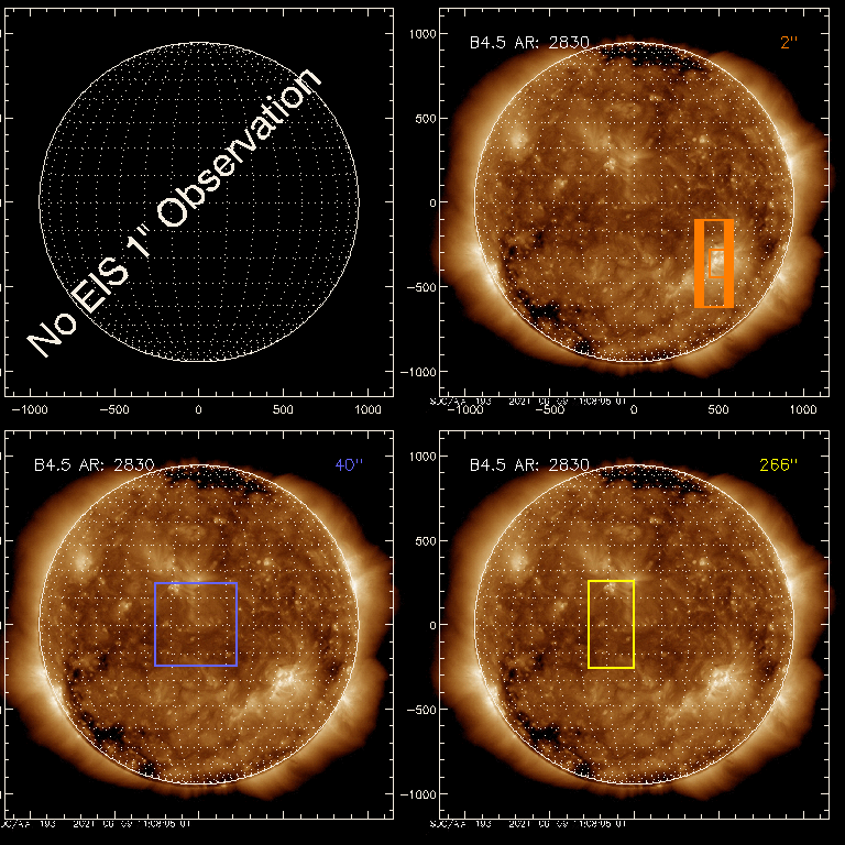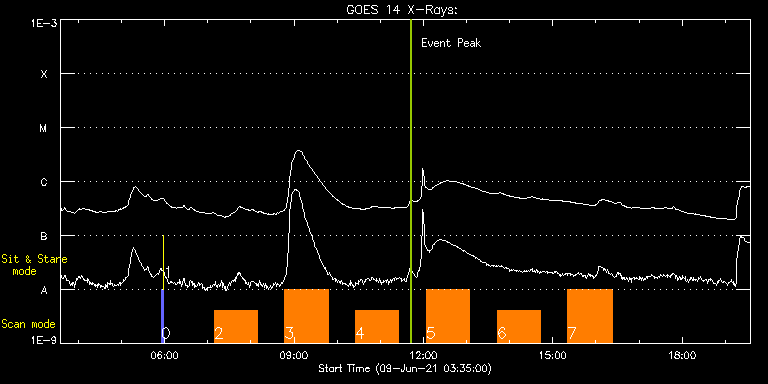 EIS Observation timeline overlay to GOES-Xray curve Code 1" 2" 40" 266" EIS Observations list for this event: STUDY ACRONYM ID DATE OBSERVED DESCRIPTION NOAA# TARGET 0 PRY_slot_contextLITE | 77499 | 2021/06/09 05:55:13 | Pointing Monitoring | 2832 | Active Region TIMELINE ID DATE OBSERVED FITS FILE XCEN (+W/-E) YCEN (+N/-S) DUR ----------------------------------------------------------------------------------------------------------------- 77499 | 2021/06/09 05:55:13.000 | eis_l0_20210609_055513.fits.gz | -15.29 | -0.42 | 2m56s 1 XRT_synop_AIA | 77500 | 2021/06/09 05:58:28 | Pointing Monitoring | 2832 | Quiet Sun TIMELINE ID DATE OBSERVED FITS FILE XCEN (+W/-E) YCEN (+N/-S) DUR ----------------------------------------------------------------------------------------------------------------- 77500 | 2021/06/09 05:58:28.000 | eis_l0_20210609_055828.fits.gz | -132.64 | -0.42 | 10s 2 HPW021VEL260x512v2 | 77521 | 2021/06/09 07:08:50 | Active Region Studies | 2829 | Active Region TIMELINE ID DATE OBSERVED FITS FILE XCEN (+W/-E) YCEN (+N/-S) DUR ----------------------------------------------------------------------------------------------------------------- 77521 | 2021/06/09 07:08:50.000 | eis_l0_20210609_070850.fits.gz | 453.43 | -364.17 | 1h0m44s 3 HPW021VEL260x512v2 | 77522 | 2021/06/09 08:47:13 | Active Region Studies | 2829 | Active Region TIMELINE ID DATE OBSERVED FITS FILE XCEN (+W/-E) YCEN (+N/-S) DUR ----------------------------------------------------------------------------------------------------------------- 77522 | 2021/06/09 08:47:13.000 | eis_l0_20210609_084713.fits.gz | 465.09 | -364.25 | 1h0m45s 4 HPW021VEL260x512v2 | 77523 | 2021/06/09 10:25:13 | Active Region Studies | 2829 | Active Region TIMELINE ID DATE OBSERVED FITS FILE XCEN (+W/-E) YCEN (+N/-S) DUR ----------------------------------------------------------------------------------------------------------------- 77523 | 2021/06/09 10:25:13.000 | eis_l0_20210609_102513.fits.gz | 476.76 | -364.33 | 1h0m44s 5 HPW021VEL260x512v2 | 77524 | 2021/06/09 12:03:40 | Active Region Studies | 2829 | Active Region TIMELINE ID DATE OBSERVED FITS FILE XCEN (+W/-E) YCEN (+N/-S) DUR ----------------------------------------------------------------------------------------------------------------- 77524 | 2021/06/09 12:03:40.000 | eis_l0_20210609_120340.fits.gz | 488.52 | -364.33 | 1h0m45s 6 HPW021VEL260x512v2 | 77525 | 2021/06/09 13:42:41 | Active Region Studies | 2829 | Active Region TIMELINE ID DATE OBSERVED FITS FILE XCEN (+W/-E) YCEN (+N/-S) DUR ----------------------------------------------------------------------------------------------------------------- 77525 | 2021/06/09 13:42:41.000 | eis_l0_20210609_134241.fits.gz | 499.95 | -364.48 | 1h0m45s 7 Atlas_60 | 77526 | 2021/06/09 15:20:40 | Active Region Studies | 2829 | Quiet Sun TIMELINE ID DATE OBSERVED FITS FILE XCEN (+W/-E) YCEN (+N/-S) DUR ----------------------------------------------------------------------------------------------------------------- 77526 | 2021/06/09 15:20:40.000 | eis_l0_20210609_152040.fits.gz | 511.40 | -364.40 | 1h1m40s : Check study information : Download file : View thumbnails For this event, also check for: