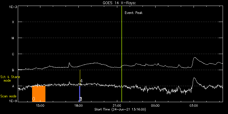 EIS Observation timeline overlay to GOES-Xray curve Code 1" 2" 40" 266" EIS Observations list for this event: STUDY ACRONYM ID DATE OBSERVED DESCRIPTION NOAA# TARGET 0 HPW021VEL260x512v2 | 77750 | 2021/06/24 14:23:10 | Active region studies | 2833 | Active Region TIMELINE ID DATE OBSERVED FITS FILE XCEN (+W/-E) YCEN (+N/-S) DUR ----------------------------------------------------------------------------------------------------------------- 77750 | 2021/06/24 14:23:10.000 | eis_l0_20210624_142310.fits.gz | 811.75 | 318.39 | 1h0m45s 1 PRY_slot_contextLITE | 77778 | 2021/06/24 18:03:19 | Changes in EIS pointing and alignment | | Active Region TIMELINE ID DATE OBSERVED FITS FILE XCEN (+W/-E) YCEN (+N/-S) DUR ----------------------------------------------------------------------------------------------------------------- 77778 | 2021/06/24 18:03:19.000 | eis_l0_20210624_180319.fits.gz | -15.29 | -0.50 | 2m56s 2 PRY_slot_contextLITE | 77778 | 2021/06/24 18:03:19 | Changes in EIS pointing and alignment | | Active Region TIMELINE ID DATE OBSERVED FITS FILE XCEN (+W/-E) YCEN (+N/-S) DUR ----------------------------------------------------------------------------------------------------------------- 77778 | 2021/06/24 18:03:19.000 | eis_l0_20210624_180319.fits.gz | -15.29 | -0.50 | 2m56s 3 PRY_slot_contextLITE | 77778 | 2021/06/24 18:03:19 | Changes in EIS pointing and alignment | | Active Region TIMELINE ID DATE OBSERVED FITS FILE XCEN (+W/-E) YCEN (+N/-S) DUR ----------------------------------------------------------------------------------------------------------------- 77778 | 2021/06/24 18:03:19.000 | eis_l0_20210624_180319.fits.gz | -15.29 | -0.50 | 2m56s 4 XRT_synop_AIA | 77779 | 2021/06/24 18:06:33 | Changes in EIS pointing and alignment | | Quiet Sun TIMELINE ID DATE OBSERVED FITS FILE XCEN (+W/-E) YCEN (+N/-S) DUR ----------------------------------------------------------------------------------------------------------------- 77779 | 2021/06/24 18:06:33.000 | eis_l0_20210624_180633.fits.gz | -132.49 | -0.58 | 10s : Check study information : Download file : View thumbnails For this event, also check for: