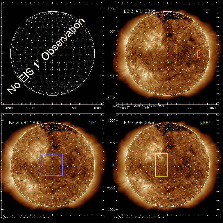 EIS Observation timeline overlay to GOES-Xray curve Code 1" 2" 40" 266" EIS Observations list for this event: STUDY ACRONYM ID DATE OBSERVED DESCRIPTION NOAA# TARGET 0 dhb_atlas_120m_30" | 77767 | 2021/06/27 12:53:12 | Quiet Sun Network and coronal bright p | | Quiet Sun TIMELINE ID DATE OBSERVED FITS FILE XCEN (+W/-E) YCEN (+N/-S) DUR ----------------------------------------------------------------------------------------------------------------- 77767 | 2021/06/27 12:53:12.000 | eis_l0_20210627_125312.fits.gz | 706.03 | -16.64 | 1h0m49s 1 PRY_slot_contextLITE | 77771 | 2021/06/27 17:58:19 | Changes in EIS pointing and alignment | | Active Region TIMELINE ID DATE OBSERVED FITS FILE XCEN (+W/-E) YCEN (+N/-S) DUR ----------------------------------------------------------------------------------------------------------------- 77771 | 2021/06/27 17:58:19.000 | eis_l0_20210627_175819.fits.gz | -15.29 | -0.50 | 2m56s 2 XRT_synop_AIA | 77784 | 2021/06/27 18:01:34 | Changes in EIS pointing and alignment | | Quiet Sun TIMELINE ID DATE OBSERVED FITS FILE XCEN (+W/-E) YCEN (+N/-S) DUR ----------------------------------------------------------------------------------------------------------------- 77784 | 2021/06/27 18:01:34.000 | eis_l0_20210627_180134.fits.gz | -132.57 | -0.50 | 10s 3 synop008 | 77769 | 2021/06/28 02:00:46 | Synop 008 | | Quiet Sun TIMELINE ID DATE OBSERVED FITS FILE XCEN (+W/-E) YCEN (+N/-S) DUR ----------------------------------------------------------------------------------------------------------------- 77769 | 2021/06/28 02:00:46.000 | eis_l0_20210628_020046.fits.gz | 196.09 | -0.11 | 54m29s : Check study information : Download file : View thumbnails For this event, also check for: