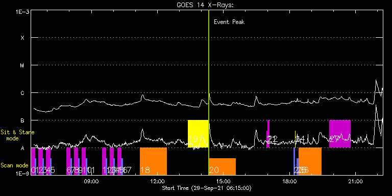 EIS Observation timeline overlay to GOES-Xray curve Code 1" 2" 40" 266" EIS Observations list for this event: STUDY ACRONYM ID DATE OBSERVED DESCRIPTION NOAA# TARGET 0 SK_DEEP_5x512_SLIT1 | 79060 | 2021/09/29 06:15:20 | HOP 412 (Synoptic SOT Latitudinal Scan | | Quiet Sun TIMELINE ID DATE OBSERVED FITS FILE XCEN (+W/-E) YCEN (+N/-S) DUR ----------------------------------------------------------------------------------------------------------------- 79060 | 2021/09/29 06:15:20.000 | eis_l0_20210929_061520.fits.gz | -23.67 | 140.71 | 10m8s 1 PRY_slot_contextLITE | 79061 | 2021/09/29 06:25:53 | HOP 412 (Synoptic SOT Latitudinal Scan | | Active Region TIMELINE ID DATE OBSERVED FITS FILE XCEN (+W/-E) YCEN (+N/-S) DUR ----------------------------------------------------------------------------------------------------------------- 79061 | 2021/09/29 06:25:53.000 | eis_l0_20210929_062553.fits.gz | -38.73 | 140.48 | 2m57s 2 SK_DEEP_5x512_SLIT1 | 79044 | 2021/09/29 06:36:20 | HOP 412 (Synoptic SOT Latitudinal Scan | | Quiet Sun TIMELINE ID DATE OBSERVED FITS FILE XCEN (+W/-E) YCEN (+N/-S) DUR ----------------------------------------------------------------------------------------------------------------- 79044 | 2021/09/29 06:36:20.000 | eis_l0_20210929_063620.fits.gz | -23.67 | 240.66 | 10m8s 3 PRY_slot_contextLITE | 79045 | 2021/09/29 06:46:53 | HOP 412 (Synoptic SOT Latitudinal Scan | | Active Region TIMELINE ID DATE OBSERVED FITS FILE XCEN (+W/-E) YCEN (+N/-S) DUR ----------------------------------------------------------------------------------------------------------------- 79045 | 2021/09/29 06:46:53.000 | eis_l0_20210929_064653.fits.gz | -38.65 | 240.66 | 2m57s 4 SK_DEEP_5x512_SLIT1 | 79046 | 2021/09/29 06:57:20 | HOP 412 (Synoptic SOT Latitudinal Scan | | Quiet Sun TIMELINE ID DATE OBSERVED FITS FILE XCEN (+W/-E) YCEN (+N/-S) DUR ----------------------------------------------------------------------------------------------------------------- 79046 | 2021/09/29 06:57:20.000 | eis_l0_20210929_065720.fits.gz | -23.67 | 340.47 | 10m8s 5 PRY_slot_contextLITE | 79047 | 2021/09/29 07:07:53 | HOP 412 (Synoptic SOT Latitudinal Scan | | Active Region TIMELINE ID DATE OBSERVED FITS FILE XCEN (+W/-E) YCEN (+N/-S) DUR ----------------------------------------------------------------------------------------------------------------- 79047 | 2021/09/29 07:07:53.000 | eis_l0_20210929_070753.fits.gz | -38.73 | 340.39 | 2m57s 6 SK_DEEP_5x512_SLIT1 | 79048 | 2021/09/29 07:52:20 | HOP 412 (Synoptic SOT Latitudinal Scan | | Quiet Sun TIMELINE ID DATE OBSERVED FITS FILE XCEN (+W/-E) YCEN (+N/-S) DUR ----------------------------------------------------------------------------------------------------------------- 79048 | 2021/09/29 07:52:20.000 | eis_l0_20210929_075220.fits.gz | -23.75 | 440.51 | 10m8s 7 PRY_slot_contextLITE | 79049 | 2021/09/29 08:02:53 | HOP 412 (Synoptic SOT Latitudinal Scan | | Active Region TIMELINE ID DATE OBSERVED FITS FILE XCEN (+W/-E) YCEN (+N/-S) DUR ----------------------------------------------------------------------------------------------------------------- 79049 | 2021/09/29 08:02:53.000 | eis_l0_20210929_080253.fits.gz | -38.57 | 440.43 | 2m57s 8 SK_DEEP_5x512_SLIT1 | 79050 | 2021/09/29 08:13:20 | HOP 412 (Synoptic SOT Latitudinal Scan | | Quiet Sun TIMELINE ID DATE OBSERVED FITS FILE XCEN (+W/-E) YCEN (+N/-S) DUR ----------------------------------------------------------------------------------------------------------------- 79050 | 2021/09/29 08:13:20.000 | eis_l0_20210929_081320.fits.gz | -23.60 | 540.54 | 10m8s 9 PRY_slot_contextLITE | 79051 | 2021/09/29 08:23:53 | HOP 412 (Synoptic SOT Latitudinal Scan | | Active Region TIMELINE ID DATE OBSERVED FITS FILE XCEN (+W/-E) YCEN (+N/-S) DUR ----------------------------------------------------------------------------------------------------------------- 79051 | 2021/09/29 08:23:53.000 | eis_l0_20210929_082353.fits.gz | -38.65 | 540.54 | 2m57s 10 SK_DEEP_5x512_SLIT1 | 79052 | 2021/09/29 08:34:20 | HOP 412 (Synoptic SOT Latitudinal Scan | | Quiet Sun TIMELINE ID DATE OBSERVED FITS FILE XCEN (+W/-E) YCEN (+N/-S) DUR ----------------------------------------------------------------------------------------------------------------- 79052 | 2021/09/29 08:34:20.000 | eis_l0_20210929_083420.fits.gz | -23.67 | 640.65 | 10m8s 11 PRY_slot_contextLITE | 79053 | 2021/09/29 08:44:53 | HOP 412 (Synoptic SOT Latitudinal Scan | | Active Region TIMELINE ID DATE OBSERVED FITS FILE XCEN (+W/-E) YCEN (+N/-S) DUR ----------------------------------------------------------------------------------------------------------------- 79053 | 2021/09/29 08:44:53.000 | eis_l0_20210929_084453.fits.gz | -38.65 | 640.58 | 2m56s 12 SK_DEEP_5x512_SLIT1 | 79054 | 2021/09/29 09:29:20 | HOP 412 (Synoptic SOT Latitudinal Scan | | Quiet Sun TIMELINE ID DATE OBSERVED FITS FILE XCEN (+W/-E) YCEN (+N/-S) DUR ----------------------------------------------------------------------------------------------------------------- 79054 | 2021/09/29 09:29:20.000 | eis_l0_20210929_092920.fits.gz | -23.50 | 740.77 | 10m8s 13 PRY_slot_contextLITE | 79055 | 2021/09/29 09:39:53 | HOP 412 (Synoptic SOT Latitudinal Scan | | Active Region TIMELINE ID DATE OBSERVED FITS FILE XCEN (+W/-E) YCEN (+N/-S) DUR ----------------------------------------------------------------------------------------------------------------- 79055 | 2021/09/29 09:39:53.000 | eis_l0_20210929_093953.fits.gz | -38.65 | 740.61 | 2m56s 14 SK_DEEP_5x512_SLIT1 | 79056 | 2021/09/29 09:50:20 | HOP 412 (Synoptic SOT Latitudinal Scan | | Quiet Sun TIMELINE ID DATE OBSERVED FITS FILE XCEN (+W/-E) YCEN (+N/-S) DUR ----------------------------------------------------------------------------------------------------------------- 79056 | 2021/09/29 09:50:20.000 | eis_l0_20210929_095020.fits.gz | -23.42 | 840.49 | 10m8s 15 PRY_slot_contextLITE | 79057 | 2021/09/29 10:00:53 | HOP 412 (Synoptic SOT Latitudinal Scan | | Active Region TIMELINE ID