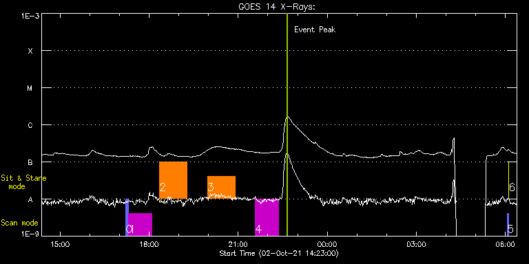 EIS Observation timeline overlay to GOES-Xray curve Code 1" 2" 40" 266" EIS Observations list for this event: STUDY ACRONYM ID DATE OBSERVED DESCRIPTION NOAA# TARGET 0 PRY_slot_contextLIQS | 79155 | 2021/10/02 17:13:21 | HOP 0420(Study of MHD Waves in the Chr | 2880 | Quiet Sun TIMELINE ID DATE OBSERVED FITS FILE XCEN (+W/-E) YCEN (+N/-S) DUR ----------------------------------------------------------------------------------------------------------------- 79155 | 2021/10/02 17:13:21.000 | eis_l0_20211002_171321.fits.gz | -152.49 | 375.65 | 5m26s 1 HPW021VEL120x512v2_b | 79156 | 2021/10/02 17:18:59 | HOP 0420(Study of MHD Waves in the Chr | | Active Region TIMELINE ID DATE OBSERVED FITS FILE XCEN (+W/-E) YCEN (+N/-S) DUR ----------------------------------------------------------------------------------------------------------------- 79156 | 2021/10/02 17:18:59.000 | eis_l0_20211002_171859.fits.gz | -137.07 | 375.57 | 46m53s 2 HPW021VEL001x512v2 | 79157 | 2021/10/02 18:20:57 | HOP 0420(Study of MHD Waves in the Chr | | Active Region TIMELINE ID DATE OBSERVED FITS FILE XCEN (+W/-E) YCEN (+N/-S) DUR ----------------------------------------------------------------------------------------------------------------- 79157 | 2021/10/02 18:20:57.000 | eis_l0_20211002_182057.fits.gz | -69.95 | 375.42 | 55m49s 3 HPW021VEL001x512v2 | 79158 | 2021/10/02 19:57:41 | HOP 0420(Study of MHD Waves in the Chr | | Active Region TIMELINE ID DATE OBSERVED FITS FILE XCEN (+W/-E) YCEN (+N/-S) DUR ----------------------------------------------------------------------------------------------------------------- 79158 | 2021/10/02 19:57:41.000 | eis_l0_20211002_195741.fits.gz | -60.66 | 375.34 | 55m51s 4 HPW021VEL120x512v2_b | 79164 | 2021/10/02 21:34:27 | HOP 0420(Study of MHD Waves in the Chr | 2880 | Active Region TIMELINE ID DATE OBSERVED FITS FILE XCEN (+W/-E) YCEN (+N/-S) DUR ----------------------------------------------------------------------------------------------------------------- 79164 | 2021/10/02 21:34:27.000 | eis_l0_20211002_213427.fits.gz | -104.40 | 375.42 | 46m54s 5 PRY_slot_contextLITE | 79140 | 2021/10/03 06:03:34 | Pointing Monitoring | | Active Region TIMELINE ID DATE OBSERVED FITS FILE XCEN (+W/-E) YCEN (+N/-S) DUR ----------------------------------------------------------------------------------------------------------------- 79140 | 2021/10/03 06:03:34.000 | eis_l0_20211003_060334.fits.gz | -15.21 | -0.50 | 2m56s 6 XRT_synop_AIA | 79141 | 2021/10/03 06:06:49 | Pointing Monitoring | | Quiet Sun TIMELINE ID DATE OBSERVED FITS FILE XCEN (+W/-E) YCEN (+N/-S) DUR ----------------------------------------------------------------------------------------------------------------- 79141 | 2021/10/03 06:06:49.000 | eis_l0_20211003_060649.fits.gz | -132.57 | -0.58 | 10s : Check study information : Download file : View thumbnails For this event, also check for: