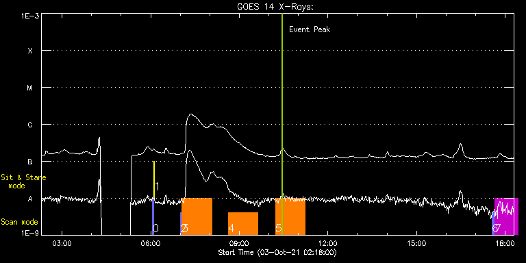 EIS Observation timeline overlay to GOES-Xray curve Code 1" 2" 40" 266" EIS Observations list for this event: STUDY ACRONYM ID DATE OBSERVED DESCRIPTION NOAA# TARGET 0 PRY_slot_contextLITE | 79140 | 2021/10/03 06:03:34 | Pointing Monitoring | | Active Region TIMELINE ID DATE OBSERVED FITS FILE XCEN (+W/-E) YCEN (+N/-S) DUR ----------------------------------------------------------------------------------------------------------------- 79140 | 2021/10/03 06:03:34.000 | eis_l0_20211003_060334.fits.gz | -15.21 | -0.50 | 2m56s 1 XRT_synop_AIA | 79141 | 2021/10/03 06:06:49 | Pointing Monitoring | | Quiet Sun TIMELINE ID DATE OBSERVED FITS FILE XCEN (+W/-E) YCEN (+N/-S) DUR ----------------------------------------------------------------------------------------------------------------- 79141 | 2021/10/03 06:06:49.000 | eis_l0_20211003_060649.fits.gz | -132.57 | -0.58 | 10s 2 PRY_slot_contextLITE | 79173 | 2021/10/03 06:59:57 | AR 12880 obs | 2880 | Active Region TIMELINE ID DATE OBSERVED FITS FILE XCEN (+W/-E) YCEN (+N/-S) DUR ----------------------------------------------------------------------------------------------------------------- 79173 | 2021/10/03 06:59:57.000 | eis_l0_20211003_065957.fits.gz | -44.42 | 375.11 | 2m56s 3 Atlas_60 | 79174 | 2021/10/03 07:03:18 | AR 12880 obs | | Quiet Sun TIMELINE ID DATE OBSERVED FITS FILE XCEN (+W/-E) YCEN (+N/-S) DUR ----------------------------------------------------------------------------------------------------------------- 79174 | 2021/10/03 07:03:18.000 | eis_l0_20211003_070318.fits.gz | -29.22 | 375.26 | 1h1m40s 4 HPW021VEL260x512v2 | 79175 | 2021/10/03 08:37:13 | AR 12880 obs | 2880 | Active Region TIMELINE ID DATE OBSERVED FITS FILE XCEN (+W/-E) YCEN (+N/-S) DUR ----------------------------------------------------------------------------------------------------------------- 79175 | 2021/10/03 08:37:13.000 | eis_l0_20211003_083713.fits.gz | -17.34 | 375.26 | 1h0m45s 5 HPW021VEL260x512v2 | 79177 | 2021/10/03 10:13:13 | AR 12880 obs | 2880 | Active Region TIMELINE ID DATE OBSERVED FITS FILE XCEN (+W/-E) YCEN (+N/-S) DUR ----------------------------------------------------------------------------------------------------------------- 79177 | 2021/10/03 10:13:13.000 | eis_l0_20211003_101313.fits.gz | -5.05 | 375.18 | 1h0m44s 6 PRY_slot_contextLIQS | 79160 | 2021/10/03 17:33:20 | HOP 0420(Study of MHD Waves in the Chr | 2880 | Quiet Sun TIMELINE ID DATE OBSERVED FITS FILE XCEN (+W/-E) YCEN (+N/-S) DUR ----------------------------------------------------------------------------------------------------------------- 79160 | 2021/10/03 17:33:20.000 | eis_l0_20211003_173320.fits.gz | 34.68 | 375.88 | 5m27s 7 HPW021VEL120x512v2_b | 79161 | 2021/10/03 17:38:58 | HOP 0420(Study of MHD Waves in the Chr | 2880 | Active Region TIMELINE ID DATE OBSERVED FITS FILE XCEN (+W/-E) YCEN (+N/-S) DUR ----------------------------------------------------------------------------------------------------------------- 79161 | 2021/10/03 17:38:58.000 | eis_l0_20211003_173858.fits.gz | 50.10 | 375.96 | 46m53s : Check study information : Download file : View thumbnails For this event, also check for: