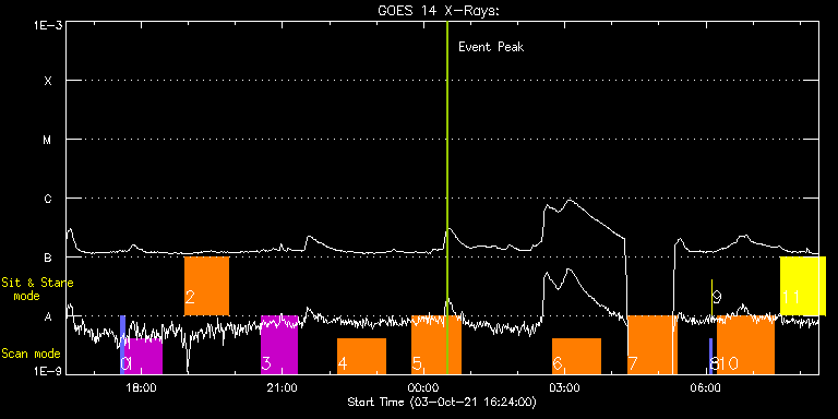 EIS Observation timeline overlay to GOES-Xray curve Code 1" 2" 40" 266" EIS Observations list for this event: STUDY ACRONYM ID DATE OBSERVED DESCRIPTION NOAA# TARGET 0 PRY_slot_contextLIQS | 79160 | 2021/10/03 17:33:20 | HOP 0420(Study of MHD Waves in the Chr | 2880 | Quiet Sun TIMELINE ID DATE OBSERVED FITS FILE XCEN (+W/-E) YCEN (+N/-S) DUR ----------------------------------------------------------------------------------------------------------------- 79160 | 2021/10/03 17:33:20.000 | eis_l0_20211003_173320.fits.gz | 34.68 | 375.88 | 5m27s 1 HPW021VEL120x512v2_b | 79161 | 2021/10/03 17:38:58 | HOP 0420(Study of MHD Waves in the Chr | 2880 | Active Region TIMELINE ID DATE OBSERVED FITS FILE XCEN (+W/-E) YCEN (+N/-S) DUR ----------------------------------------------------------------------------------------------------------------- 79161 | 2021/10/03 17:38:58.000 | eis_l0_20211003_173858.fits.gz | 50.10 | 375.96 | 46m53s 2 HPW021VEL001x512v2 | 79165 | 2021/10/03 18:55:56 | HOP 0420(Study of MHD Waves in the Chr | | Active Region TIMELINE ID DATE OBSERVED FITS FILE XCEN (+W/-E) YCEN (+N/-S) DUR ----------------------------------------------------------------------------------------------------------------- 79165 | 2021/10/03 18:55:56.000 | eis_l0_20211003_185556.fits.gz | 6.18 | 376.03 | 55m51s 3 HPW021VEL120x512v2_b | 79166 | 2021/10/03 20:32:26 | HOP 0420(Study of MHD Waves in the Chr | 2880 | Active Region TIMELINE ID DATE OBSERVED FITS FILE XCEN (+W/-E) YCEN (+N/-S) DUR ----------------------------------------------------------------------------------------------------------------- 79166 | 2021/10/03 20:32:26.000 | eis_l0_20211003_203226.fits.gz | 72.27 | 376.34 | 46m54s 4 Large_CH_Map | 79146 | 2021/10/03 22:09:56 | HOP 336 (Cycle 25 bright points) North | | Quiet Sun TIMELINE ID DATE OBSERVED FITS FILE XCEN (+W/-E) YCEN (+N/-S) DUR ----------------------------------------------------------------------------------------------------------------- 79146 | 2021/10/03 22:09:56.000 | eis_l0_20211003_220956.fits.gz | -41.99 | 458.97 | 1h1m53s 5 Large_CH_Map | 79149 | 2021/10/03 23:45:10 | HOP 336 (Cycle 25 bright points) North | | Quiet Sun TIMELINE ID DATE OBSERVED FITS FILE XCEN (+W/-E) YCEN (+N/-S) DUR ----------------------------------------------------------------------------------------------------------------- 79149 | 2021/10/03 23:45:10.000 | eis_l0_20211003_234510.fits.gz | -30.17 | 458.81 | 1h1m53s 6 Large_CH_Map | 79147 | 2021/10/04 02:44:10 | HOP 336 (Cycle 25 bright points) South | | Quiet Sun TIMELINE ID DATE OBSERVED FITS FILE XCEN (+W/-E) YCEN (+N/-S) DUR ----------------------------------------------------------------------------------------------------------------- 79147 | 2021/10/04 02:44:10.000 | eis_l0_20211004_024410.fits.gz | -35.89 | -697.58 | 1h1m53s 7 Large_CH_Map | 79150 | 2021/10/04 04:20:40 | HOP 336 (Cycle 25 bright points) South | | Quiet Sun TIMELINE ID DATE OBSERVED FITS FILE XCEN (+W/-E) YCEN (+N/-S) DUR ----------------------------------------------------------------------------------------------------------------- 79150 | 2021/10/04 04:20:40.000 | eis_l0_20211004_042040.fits.gz | -26.00 | -697.66 | 1h1m53s 8 PRY_slot_contextLITE | 79142 | 2021/10/04 06:04:50 | Pointing Monitoring | | Active Region TIMELINE ID DATE OBSERVED FITS FILE XCEN (+W/-E) YCEN (+N/-S) DUR ----------------------------------------------------------------------------------------------------------------- 79142 | 2021/10/04 06:04:50.000 | eis_l0_20211004_060450.fits.gz | -15.29 | -0.50 | 2m56s 9 XRT_synop_AIA | 79143 | 2021/10/04 06:08:04 | Pointing Monitoring | | Quiet Sun TIMELINE ID DATE OBSERVED FITS FILE XCEN (+W/-E) YCEN (+N/-S) DUR ----------------------------------------------------------------------------------------------------------------- 79143 | 2021/10/04 06:08:04.000 | eis_l0_20211004_060804.fits.gz | -132.49 | -0.42 | 10s 10 raster_hefe3 | 79151 | 2021/10/04 06:14:50 | HOP 0361(Measuring high time cadence d | | Active Region TIMELINE ID DATE OBSERVED FITS FILE XCEN (+W/-E) YCEN (+N/-S) DUR ----------------------------------------------------------------------------------------------------------------- 79151 | 2021/10/04 06:14:50.000 | eis_l0_20211004_061450.fits.gz | 144.87 | 378.04 | 1h12m18s 11 fast_slot_hefe3 | 79172 | 2021/10/04 07:35:33 | HOP 0361(Measuring high time cadence d | | Active Region TIMELINE ID DATE OBSERVED FITS FILE XCEN (+W/-E) YCEN (+N/-S) DUR ----------------------------------------------------------------------------------------------------------------- 79172 | 2021/10/04 07:35:33.000 | eis_l0_20211004_073533.fits.gz | 22.64 | 378.27 | 57m8s : Check study information : Download file : View thumbnails For this event, also check for: