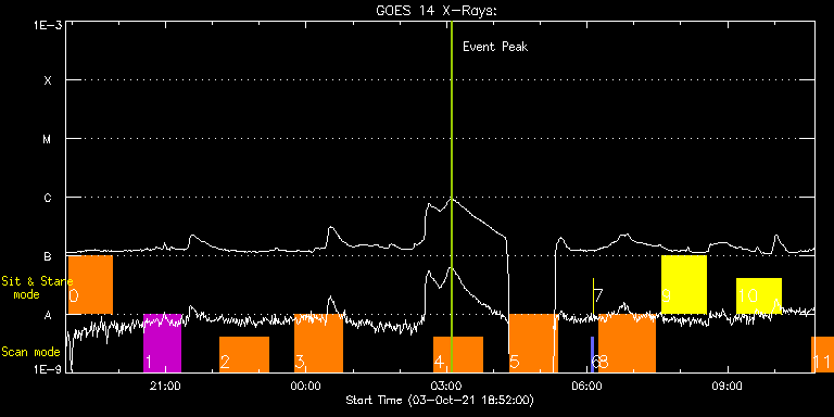 EIS Observation timeline overlay to GOES-Xray curve Code 1" 2" 40" 266" EIS Observations list for this event: STUDY ACRONYM ID DATE OBSERVED DESCRIPTION NOAA# TARGET 0 HPW021VEL001x512v2 | 79165 | 2021/10/03 18:55:56 | HOP 0420(Study of MHD Waves in the Chr | | Active Region TIMELINE ID DATE OBSERVED FITS FILE XCEN (+W/-E) YCEN (+N/-S) DUR ----------------------------------------------------------------------------------------------------------------- 79165 | 2021/10/03 18:55:56.000 | eis_l0_20211003_185556.fits.gz | 6.18 | 376.03 | 55m51s 1 HPW021VEL120x512v2_b | 79166 | 2021/10/03 20:32:26 | HOP 0420(Study of MHD Waves in the Chr | 2880 | Active Region TIMELINE ID DATE OBSERVED FITS FILE XCEN (+W/-E) YCEN (+N/-S) DUR ----------------------------------------------------------------------------------------------------------------- 79166 | 2021/10/03 20:32:26.000 | eis_l0_20211003_203226.fits.gz | 72.27 | 376.34 | 46m54s 2 Large_CH_Map | 79146 | 2021/10/03 22:09:56 | HOP 336 (Cycle 25 bright points) North | | Quiet Sun TIMELINE ID DATE OBSERVED FITS FILE XCEN (+W/-E) YCEN (+N/-S) DUR ----------------------------------------------------------------------------------------------------------------- 79146 | 2021/10/03 22:09:56.000 | eis_l0_20211003_220956.fits.gz | -41.99 | 458.97 | 1h1m53s 3 Large_CH_Map | 79149 | 2021/10/03 23:45:10 | HOP 336 (Cycle 25 bright points) North | | Quiet Sun TIMELINE ID DATE OBSERVED FITS FILE XCEN (+W/-E) YCEN (+N/-S) DUR ----------------------------------------------------------------------------------------------------------------- 79149 | 2021/10/03 23:45:10.000 | eis_l0_20211003_234510.fits.gz | -30.17 | 458.81 | 1h1m53s 4 Large_CH_Map | 79147 | 2021/10/04 02:44:10 | HOP 336 (Cycle 25 bright points) South | | Quiet Sun TIMELINE ID DATE OBSERVED FITS FILE XCEN (+W/-E) YCEN (+N/-S) DUR ----------------------------------------------------------------------------------------------------------------- 79147 | 2021/10/04 02:44:10.000 | eis_l0_20211004_024410.fits.gz | -35.89 | -697.58 | 1h1m53s 5 Large_CH_Map | 79150 | 2021/10/04 04:20:40 | HOP 336 (Cycle 25 bright points) South | | Quiet Sun TIMELINE ID DATE OBSERVED FITS FILE XCEN (+W/-E) YCEN (+N/-S) DUR ----------------------------------------------------------------------------------------------------------------- 79150 | 2021/10/04 04:20:40.000 | eis_l0_20211004_042040.fits.gz | -26.00 | -697.66 | 1h1m53s 6 PRY_slot_contextLITE | 79142 | 2021/10/04 06:04:50 | Pointing Monitoring | | Active Region TIMELINE ID DATE OBSERVED FITS FILE XCEN (+W/-E) YCEN (+N/-S) DUR ----------------------------------------------------------------------------------------------------------------- 79142 | 2021/10/04 06:04:50.000 | eis_l0_20211004_060450.fits.gz | -15.29 | -0.50 | 2m56s 7 XRT_synop_AIA | 79143 | 2021/10/04 06:08:04 | Pointing Monitoring | | Quiet Sun TIMELINE ID DATE OBSERVED FITS FILE XCEN (+W/-E) YCEN (+N/-S) DUR ----------------------------------------------------------------------------------------------------------------- 79143 | 2021/10/04 06:08:04.000 | eis_l0_20211004_060804.fits.gz | -132.49 | -0.42 | 10s 8 raster_hefe3 | 79151 | 2021/10/04 06:14:50 | HOP 0361(Measuring high time cadence d | | Active Region TIMELINE ID DATE OBSERVED FITS FILE XCEN (+W/-E) YCEN (+N/-S) DUR ----------------------------------------------------------------------------------------------------------------- 79151 | 2021/10/04 06:14:50.000 | eis_l0_20211004_061450.fits.gz | 144.87 | 378.04 | 1h12m18s 9 fast_slot_hefe3 | 79172 | 2021/10/04 07:35:33 | HOP 0361(Measuring high time cadence d | | Active Region TIMELINE ID DATE OBSERVED FITS FILE XCEN (+W/-E) YCEN (+N/-S) DUR ----------------------------------------------------------------------------------------------------------------- 79172 | 2021/10/04 07:35:33.000 | eis_l0_20211004_073533.fits.gz | 22.64 | 378.27 | 57m8s 10 fast_slot_hefe3 | 79171 | 2021/10/04 09:12:13 | HOP 0361(Measuring high time cadence d | | Active Region TIMELINE ID DATE OBSERVED FITS FILE XCEN (+W/-E) YCEN (+N/-S) DUR ----------------------------------------------------------------------------------------------------------------- 79171 | 2021/10/04 09:12:13.000 | eis_l0_20211004_091213.fits.gz | 34.87 | 378.66 | 57m8s 11 raster_hefe3 | 79170 | 2021/10/04 10:47:19 | HOP 0361(Measuring high time cadence d | 2880 | Active Region TIMELINE ID DATE OBSERVED FITS FILE XCEN (+W/-E) YCEN (+N/-S) DUR ----------------------------------------------------------------------------------------------------------------- 79170 | 2021/10/04 10:47:19.000 | eis_l0_20211004_104719.fits.gz | 179.10 | 378.97 | 1h12m18s : Check study information : Download file : View thumbnails For this event, also check for: