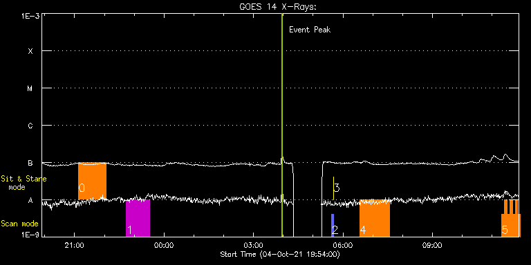EIS Observation timeline overlay to GOES-Xray curve Code 1" 2" 40" 266" EIS Observations list for this event: STUDY ACRONYM ID DATE OBSERVED DESCRIPTION NOAA# TARGET 0 HPW021VEL001x512v2 | 79168 | 2021/10/04 21:08:09 | HOP 0420(Study of MHD Waves in the Chr | | Active Region TIMELINE ID DATE OBSERVED FITS FILE XCEN (+W/-E) YCEN (+N/-S) DUR ----------------------------------------------------------------------------------------------------------------- 79168 | 2021/10/04 21:08:09.000 | eis_l0_20211004_210809.fits.gz | 313.66 | 381.90 | 55m51s 1 HPW021VEL120x512v2_b | 79169 | 2021/10/04 22:44:25 | HOP 0420(Study of MHD Waves in the Chr | 2880 | Active Region TIMELINE ID DATE OBSERVED FITS FILE XCEN (+W/-E) YCEN (+N/-S) DUR ----------------------------------------------------------------------------------------------------------------- 79169 | 2021/10/04 22:44:25.000 | eis_l0_20211004_224425.fits.gz | 268.32 | 382.52 | 46m55s 2 PRY_slot_contextLITE | 79144 | 2021/10/05 05:37:33 | Pointing Monitoring | | Active Region TIMELINE ID DATE OBSERVED FITS FILE XCEN (+W/-E) YCEN (+N/-S) DUR ----------------------------------------------------------------------------------------------------------------- 79144 | 2021/10/05 05:37:33.000 | eis_l0_20211005_053733.fits.gz | -15.29 | -0.42 | 2m56s 3 XRT_synop_AIA | 79145 | 2021/10/05 05:40:48 | Pointing Monitoring | | Quiet Sun TIMELINE ID DATE OBSERVED FITS FILE XCEN (+W/-E) YCEN (+N/-S) DUR ----------------------------------------------------------------------------------------------------------------- 79145 | 2021/10/05 05:40:48.000 | eis_l0_20211005_054048.fits.gz | -132.57 | -0.42 | 10s 4 HPW021VEL260x512v2 | 79176 | 2021/10/05 06:33:18 | AR 12880 obs | 2880 | Active Region TIMELINE ID DATE OBSERVED FITS FILE XCEN (+W/-E) YCEN (+N/-S) DUR ----------------------------------------------------------------------------------------------------------------- 79176 | 2021/10/05 06:33:18.000 | eis_l0_20211005_063318.fits.gz | 325.95 | 385.46 | 1h0m45s 5 HH_Flare+AR_180x152 | 79214 | 2021/10/05 11:19:40 | AR obs | 2882 | Flare TIMELINE ID DATE OBSERVED FITS FILE XCEN (+W/-E) YCEN (+N/-S) DUR ----------------------------------------------------------------------------------------------------------------- 79214 | 2021/10/05 11:19:40.000 | eis_l0_20211005_111940.fits.gz | -814.12 | 201.45 | 5m18s 79214 | 2021/10/05 11:25:01.000 | eis_l0_20211005_112501.fits.gz | -813.73 | 201.45 | 5m18s 79214 | 2021/10/05 11:30:22.000 | eis_l0_20211005_113022.fits.gz | -813.27 | 201.38 | 5m18s 79214 | 2021/10/05 11:35:43.000 | eis_l0_20211005_113543.fits.gz | -812.88 | 201.30 | 5m18s 79214 | 2021/10/05 11:41:04.000 | eis_l0_20211005_114104.fits.gz | -812.49 | 201.30 | 5m18s 79214 | 2021/10/05 11:46:25.000 | eis_l0_20211005_114625.fits.gz | -812.18 | 201.14 | 5m18s 79214 | 2021/10/05 11:51:46.000 | eis_l0_20211005_115146.fits.gz | -811.64 | 201.07 | 5m18s 79214 | 2021/10/05 11:57:07.000 | eis_l0_20211005_115707.fits.gz | -811.26 | 200.99 | 5m19s 79214 | 2021/10/05 12:02:29.000 | eis_l0_20211005_120229.fits.gz | -810.87 | 200.99 | 5m17s 79214 | 2021/10/05 12:07:49.000 | eis_l0_20211005_120749.fits.gz | -810.48 | 200.84 | 5m18s 79214 | 2021/10/05 12:13:09.000 | eis_l0_20211005_121309.fits.gz | -810.10 | 200.84 | 5m18s 79214 | 2021/10/05 12:18:30.000 | eis_l0_20211005_121830.fits.gz | -809.71 | 200.68 | 5m19s 79214 | 2021/10/05 12:23:51.000 | eis_l0_20211005_122351.fits.gz | -809.33 | 200.60 | 5m18s 79214 | 2021/10/05 12:29:12.000 | eis_l0_20211005_122912.fits.gz | -808.86 | 200.60 | 4m24s 79214 | 2021/10/05 12:35:15.000 | eis_l0_20211005_123515.fits.gz | -808.40 | 200.37 | 3m53s 79214 | 2021/10/05 12:40:15.000 | eis_l0_20211005_124015.fits.gz | -808.09 | 200.53 | 4m57s 79214 | 2021/10/05 12:45:14.000 | eis_l0_20211005_124514.fits.gz | -807.55 | 200.45 | 5m19s 79214 | 2021/10/05 12:50:36.000 | eis_l0_20211005_125036.fits.gz | -807.24 | 200.29 | 5m18s 79214 | 2021/10/05 12:55:56.000 | eis_l0_20211005_125556.fits.gz | -806.78 | 200.06 | 5m18s 79214 | 2021/10/05 13:01:17.000 | eis_l0_20211005_130117.fits.gz | -806.47 | 200.14 | 5m18s 79214 | 2021/10/05 13:06:38.000 | eis_l0_20211005_130638.fits.gz | -806.01 | 200.06 | 5m17s 79214 | 2021/10/05 13:11:58.000 | eis_l0_20211005_131158.fits.gz | -805.54 | 200.06 | 5m18s 79214 | 2021/10/05 13:17:18.000 | eis_l0_20211005_131718.fits.gz | -805.16 | 199.99 | 5m18s 79214 | 2021/10/05 13:22:39.000 | eis_l0_20211005_132239.fits.gz | -804.77 | 199.75 | 5m19s 79214 | 2021/10/05 13:28:00.000 | eis_l0_20211005_132800.fits.gz | -804.31 | 199.68 | 5m18s 79214 | 2021/10/05 13:33:20.000 | eis_l0_20211005_133320.fits.gz | -803.92 | 199.60 | 5m18s 79214 | 2021/10/05 13:38:41.000 | eis_l0_20211005_133841.fits.gz | -803.38 | 199.60 | 5m18s 79214 | 2021/10/05 13:44:02.000 | eis_l0_20211005_134402.fits.gz | -803.15 | 199.37 | 5m18s 79214 | 2021/10/05 13:49:23.000 | eis_l0_20211005_134923.fits.gz | -802.68 | 199.52 | 5m18s 79214 | 2021/10/05 13:54:44.000 | eis_l0_20211005_135444.fits.gz | -802.37 | 199.37 | 5m18s 79214 | 2021/10/05 14:00:05.000 | eis_l0_20211005_140005.fits.gz | -801.76 | 199.29 | 5m17s 79214 | 2021/10/05 14:05:25.000 | eis_l0_20211005_140525.fits.gz | -801.37 | 199.14 | 5m19s 79214 | 2021/10/05 14:10:46.000 | eis_l0_20211005_141046.fits.gz | -801.06 | 199.14 | 5m19s 79214 | 2021/10/05 14:16:07.000 | eis_l0_20211005_141607.fits.gz | -800.60 | 199.06 | 5m19s 79214 | 2021/10/05 14:21:29.000 | eis_l0_20211005_142129.fits.gz | -800.13 | 198.98 | 5m18s 79214 | 2021/10/05 14:26:50.000 | eis_l0_20211005_142650.fits.gz | -799.75 | 198.90 | 5m17s 79214 | 2021/10/05 14:32:10.000 | eis_l0_20211005_143210.fits.gz | -799.21 | 198.83 | 5m17s 79214 | 2021/10/05 14:37:30.000 | eis_l0_20211005_143730.fits.gz | -798.90 | 198.83 | 5m18s 79214 | 2021/10/05 14:42:51.000 | eis_l0_20211005_144251.fits.gz | -798.51 | 198.90 | 5m18s 79214 | 2021/10/05 14:48:12.000 | eis_l0_20211005_144812.fits.gz | -798.05 | 198.60 | 5m17s : Check study information : Download file : View th