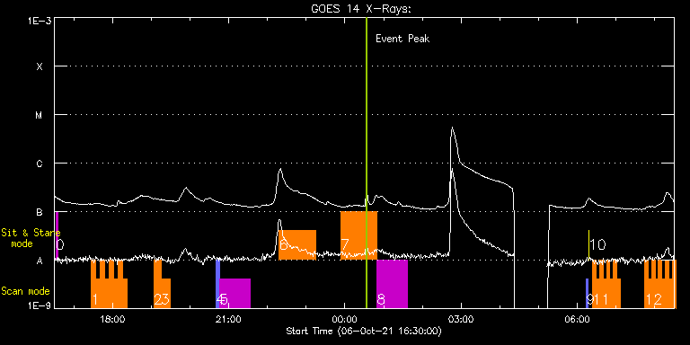 EIS Observation timeline overlay to GOES-Xray curve Code 1" 2" 40" 266" EIS Observations list for this event: STUDY ACRONYM ID DATE OBSERVED DESCRIPTION NOAA# TARGET 0 regcal072 | 79202 | 2021/10/06 16:32:30 | Dark exposures, top CCD rows (100s exp | | Engineering TIMELINE ID DATE OBSERVED FITS FILE XCEN (+W/-E) YCEN (+N/-S) DUR ----------------------------------------------------------------------------------------------------------------- 79202 | 2021/10/06 16:32:30.000 | eis_l0_20211006_163230.fits.gz | 527.67 | 589.03 | 3m21s 1 Cool_loop_narrow | 79186 | 2021/10/06 17:27:12 | HOP 424 Coordinated observation with C | | Active Region TIMELINE ID DATE OBSERVED FITS FILE XCEN (+W/-E) YCEN (+N/-S) DUR ----------------------------------------------------------------------------------------------------------------- 79186 | 2021/10/06 17:27:12.000 | eis_l0_20211006_172712.fits.gz | 524.60 | 413.50 | 6m50s 79186 | 2021/10/06 17:34:05.000 | eis_l0_20211006_173405.fits.gz | 525.29 | 413.58 | 6m50s 79186 | 2021/10/06 17:40:58.000 | eis_l0_20211006_174058.fits.gz | 525.91 | 413.65 | 6m50s 79186 | 2021/10/06 17:47:51.000 | eis_l0_20211006_174751.fits.gz | 526.61 | 413.65 | 6m50s 79186 | 2021/10/06 17:54:44.000 | eis_l0_20211006_175444.fits.gz | 527.22 | 413.81 | 6m50s 79186 | 2021/10/06 18:01:37.000 | eis_l0_20211006_180137.fits.gz | 527.92 | 413.88 | 6m50s 79186 | 2021/10/06 18:08:30.000 | eis_l0_20211006_180830.fits.gz | 528.61 | 414.04 | 6m50s 79186 | 2021/10/06 18:15:23.000 | eis_l0_20211006_181523.fits.gz | 529.31 | 413.96 | 6m50s 2 Cool_loop_response | 79189 | 2021/10/06 19:04:12 | HOP 424 Coordinated observation with C | | Active Region TIMELINE ID DATE OBSERVED FITS FILE XCEN (+W/-E) YCEN (+N/-S) DUR ----------------------------------------------------------------------------------------------------------------- 79189 | 2021/10/06 19:04:12.000 | eis_l0_20211006_190412.fits.gz | 533.87 | 414.42 | 10m49s 3 ar_evolution | 79190 | 2021/10/06 19:15:05 | HOP 424 Coordinated observation with C | | Active Region TIMELINE ID DATE OBSERVED FITS FILE XCEN (+W/-E) YCEN (+N/-S) DUR ----------------------------------------------------------------------------------------------------------------- 79190 | 2021/10/06 19:15:05.000 | eis_l0_20211006_191505.fits.gz | 534.87 | 414.58 | 14m47s 4 PRY_slot_contextLIQS | 79191 | 2021/10/06 20:40:49 | HOP 0420(Study of MHD Waves in the Chr | 2880 | Quiet Sun TIMELINE ID DATE OBSERVED FITS FILE XCEN (+W/-E) YCEN (+N/-S) DUR ----------------------------------------------------------------------------------------------------------------- 79191 | 2021/10/06 20:40:49.000 | eis_l0_20211006_204049.fits.gz | 501.95 | 398.90 | 5m26s 5 HPW021VEL120x512v2_b | 79192 | 2021/10/06 20:46:27 | HOP 0420(Study of MHD Waves in the Chr | | Active Region TIMELINE ID DATE OBSERVED FITS FILE XCEN (+W/-E) YCEN (+N/-S) DUR ----------------------------------------------------------------------------------------------------------------- 79192 | 2021/10/06 20:46:27.000 | eis_l0_20211006_204627.fits.gz | 517.14 | 398.98 | 46m53s 6 HPW021VEL001x512v2 | 79193 | 2021/10/06 22:18:26 | HOP 0420(Study of MHD Waves in the Chr | | Active Region TIMELINE ID DATE OBSERVED FITS FILE XCEN (+W/-E) YCEN (+N/-S) DUR ----------------------------------------------------------------------------------------------------------------- 79193 | 2021/10/06 22:18:26.000 | eis_l0_20211006_221826.fits.gz | 554.14 | 364.90 | 55m50s 7 HPW021VEL001x512v2 | 79194 | 2021/10/06 23:53:39 | HOP 0420(Study of MHD Waves in the Chr | | Active Region TIMELINE ID DATE OBSERVED FITS FILE XCEN (+W/-E) YCEN (+N/-S) DUR ----------------------------------------------------------------------------------------------------------------- 79194 | 2021/10/06 23:53:39.000 | eis_l0_20211006_235339.fits.gz | 543.45 | 365.83 | 55m49s 8 HPW021VEL120x512v2_b | 79196 | 2021/10/07 00:49:47 | HOP 0420(Study of MHD Waves in the Chr | | Active Region TIMELINE ID DATE OBSERVED FITS FILE XCEN (+W/-E) YCEN (+N/-S) DUR ----------------------------------------------------------------------------------------------------------------- 79196 | 2021/10/07 00:49:47.000 | eis_l0_20211007_004947.fits.gz | 544.94 | 401.29 | 46m53s 9 PRY_slot_contextLITE | 79199 | 2021/10/07 06:14:03 | Pointing Monitoring | | Active Region TIMELINE ID DATE OBSERVED FITS FILE XCEN (+W/-E) YCEN (+N/-S) DUR ----------------------------------------------------------------------------------------------------------------- 79199 | 2021/10/07 06:14:03.000 | eis_l0_20211007_061403.fits.gz | -15.29 | -0.35 | 2m56s 10 XRT_synop_AIA | 79200 | 2021/10/07 06:17:18 | Pointing Monitoring | | Quiet Sun TIMELINE ID DATE OBSERVED FITS FILE XCEN (+W/-E) YCEN (+N/-S) DUR ----------------------------------------------------------------------------------------------------------------- 79200 | 2021/10/07 06:17:18.000 | eis_l0_20211007_061718.fits.gz | -132.57 | -0.50 | 10s 11 HH_Flare+AR_180x152 | 79215 | 2021/10/07 06:23:49 | AR obs | | Flare TIMELINE ID DATE OBSERVED FITS FILE XCEN (+W/-E) YCEN (+N/-S) DUR ----------------------------------------------------------------------------------------------------------------- 79215 | 2021/10/07 06:23:49.000 | eis_l0_20211007_062349.fits.gz | -559.22 | 171.33 | 5m17s 79215 | 2021/10/07 06:29:09.000 | eis_l0_20211007_062909.fits.gz | -558.60 | 171.33 | 5m19s 79215 | 2021/10/07 06:34:30.000 | eis_l0_20211007_063430.fits.gz | -557.98 | 171.33 | 5m19s 79215 | 2021/10/07 06:39:52.000 | eis_l0_20211007_063952.fits.gz | -557.36 | 171.17 | 5m17s 79215 | 2021/10/07 06:45:12.000 | eis_l0_20211007_064512.fits.gz | -556.67 | 171.10 | 5m18s 79215 | 2021/10/07 06:50:33.000 | eis_l0_20211007_065033.fits.gz | -556.13 | 171.10 | 5m18s 79215 | 2021/10/07 06:55:54.000 | eis_l0_20211007_065554.fits.gz | -555.43 | 171.10 | 5m18s 79215 | 2021/10/07 07:01:15.000 | eis_l0_20211007_070115.fits.gz | -554.74 | 170.94 | 5m18s 12 HH_Flare+AR_180x152 | 79216 | 2021/10/07 07:44:09 | AR obs | | Flare