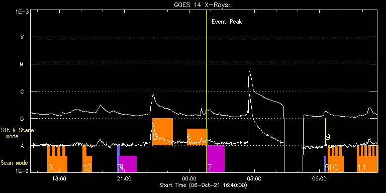 EIS Observation timeline overlay to GOES-Xray curve Code 1" 2" 40" 266" EIS Observations list for this event: STUDY ACRONYM ID DATE OBSERVED DESCRIPTION NOAA# TARGET 0 Cool_loop_narrow | 79186 | 2021/10/06 17:27:12 | HOP 424 Coordinated observation with C | | Active Region TIMELINE ID DATE OBSERVED FITS FILE XCEN (+W/-E) YCEN (+N/-S) DUR ----------------------------------------------------------------------------------------------------------------- 79186 | 2021/10/06 17:27:12.000 | eis_l0_20211006_172712.fits.gz | 524.60 | 413.50 | 6m50s 79186 | 2021/10/06 17:34:05.000 | eis_l0_20211006_173405.fits.gz | 525.29 | 413.58 | 6m50s 79186 | 2021/10/06 17:40:58.000 | eis_l0_20211006_174058.fits.gz | 525.91 | 413.65 | 6m50s 79186 | 2021/10/06 17:47:51.000 | eis_l0_20211006_174751.fits.gz | 526.61 | 413.65 | 6m50s 79186 | 2021/10/06 17:54:44.000 | eis_l0_20211006_175444.fits.gz | 527.22 | 413.81 | 6m50s 79186 | 2021/10/06 18:01:37.000 | eis_l0_20211006_180137.fits.gz | 527.92 | 413.88 | 6m50s 79186 | 2021/10/06 18:08:30.000 | eis_l0_20211006_180830.fits.gz | 528.61 | 414.04 | 6m50s 79186 | 2021/10/06 18:15:23.000 | eis_l0_20211006_181523.fits.gz | 529.31 | 413.96 | 6m50s 1 Cool_loop_response | 79189 | 2021/10/06 19:04:12 | HOP 424 Coordinated observation with C | | Active Region TIMELINE ID DATE OBSERVED FITS FILE XCEN (+W/-E) YCEN (+N/-S) DUR ----------------------------------------------------------------------------------------------------------------- 79189 | 2021/10/06 19:04:12.000 | eis_l0_20211006_190412.fits.gz | 533.87 | 414.42 | 10m49s 2 ar_evolution | 79190 | 2021/10/06 19:15:05 | HOP 424 Coordinated observation with C | | Active Region TIMELINE ID DATE OBSERVED FITS FILE XCEN (+W/-E) YCEN (+N/-S) DUR ----------------------------------------------------------------------------------------------------------------- 79190 | 2021/10/06 19:15:05.000 | eis_l0_20211006_191505.fits.gz | 534.87 | 414.58 | 14m47s 3 PRY_slot_contextLIQS | 79191 | 2021/10/06 20:40:49 | HOP 0420(Study of MHD Waves in the Chr | 2880 | Quiet Sun TIMELINE ID DATE OBSERVED FITS FILE XCEN (+W/-E) YCEN (+N/-S) DUR ----------------------------------------------------------------------------------------------------------------- 79191 | 2021/10/06 20:40:49.000 | eis_l0_20211006_204049.fits.gz | 501.95 | 398.90 | 5m26s 4 HPW021VEL120x512v2_b | 79192 | 2021/10/06 20:46:27 | HOP 0420(Study of MHD Waves in the Chr | | Active Region TIMELINE ID DATE OBSERVED FITS FILE XCEN (+W/-E) YCEN (+N/-S) DUR ----------------------------------------------------------------------------------------------------------------- 79192 | 2021/10/06 20:46:27.000 | eis_l0_20211006_204627.fits.gz | 517.14 | 398.98 | 46m53s 5 HPW021VEL001x512v2 | 79193 | 2021/10/06 22:18:26 | HOP 0420(Study of MHD Waves in the Chr | | Active Region TIMELINE ID DATE OBSERVED FITS FILE XCEN (+W/-E) YCEN (+N/-S) DUR ----------------------------------------------------------------------------------------------------------------- 79193 | 2021/10/06 22:18:26.000 | eis_l0_20211006_221826.fits.gz | 554.14 | 364.90 | 55m50s 6 HPW021VEL001x512v2 | 79194 | 2021/10/06 23:53:39 | HOP 0420(Study of MHD Waves in the Chr | | Active Region TIMELINE ID DATE OBSERVED FITS FILE XCEN (+W/-E) YCEN (+N/-S) DUR ----------------------------------------------------------------------------------------------------------------- 79194 | 2021/10/06 23:53:39.000 | eis_l0_20211006_235339.fits.gz | 543.45 | 365.83 | 55m49s 7 HPW021VEL120x512v2_b | 79196 | 2021/10/07 00:49:47 | HOP 0420(Study of MHD Waves in the Chr | | Active Region TIMELINE ID DATE OBSERVED FITS FILE XCEN (+W/-E) YCEN (+N/-S) DUR ----------------------------------------------------------------------------------------------------------------- 79196 | 2021/10/07 00:49:47.000 | eis_l0_20211007_004947.fits.gz | 544.94 | 401.29 | 46m53s 8 PRY_slot_contextLITE | 79199 | 2021/10/07 06:14:03 | Pointing Monitoring | | Active Region TIMELINE ID DATE OBSERVED FITS FILE XCEN (+W/-E) YCEN (+N/-S) DUR ----------------------------------------------------------------------------------------------------------------- 79199 | 2021/10/07 06:14:03.000 | eis_l0_20211007_061403.fits.gz | -15.29 | -0.35 | 2m56s 9 XRT_synop_AIA | 79200 | 2021/10/07 06:17:18 | Pointing Monitoring | | Quiet Sun TIMELINE ID DATE OBSERVED FITS FILE XCEN (+W/-E) YCEN (+N/-S) DUR ----------------------------------------------------------------------------------------------------------------- 79200 | 2021/10/07 06:17:18.000 | eis_l0_20211007_061718.fits.gz | -132.57 | -0.50 | 10s 10 HH_Flare+AR_180x152 | 79215 | 2021/10/07 06:23:49 | AR obs | | Flare TIMELINE ID DATE OBSERVED FITS FILE XCEN (+W/-E) YCEN (+N/-S) DUR ----------------------------------------------------------------------------------------------------------------- 79215 | 2021/10/07 06:23:49.000 | eis_l0_20211007_062349.fits.gz | -559.22 | 171.33 | 5m17s 79215 | 2021/10/07 06:29:09.000 | eis_l0_20211007_062909.fits.gz | -558.60 | 171.33 | 5m19s 79215 | 2021/10/07 06:34:30.000 | eis_l0_20211007_063430.fits.gz | -557.98 | 171.33 | 5m19s 79215 | 2021/10/07 06:39:52.000 | eis_l0_20211007_063952.fits.gz | -557.36 | 171.17 | 5m17s 79215 | 2021/10/07 06:45:12.000 | eis_l0_20211007_064512.fits.gz | -556.67 | 171.10 | 5m18s 79215 | 2021/10/07 06:50:33.000 | eis_l0_20211007_065033.fits.gz | -556.13 | 171.10 | 5m18s 79215 | 2021/10/07 06:55:54.000 | eis_l0_20211007_065554.fits.gz | -555.43 | 171.10 | 5m18s 79215 | 2021/10/07 07:01:15.000 | eis_l0_20211007_070115.fits.gz | -554.74 | 170.94 | 5m18s 11 HH_Flare+AR_180x152 | 79216 | 2021/10/07 07:44:09 | AR obs | | Flare TIMELINE ID DATE OBSERVED FITS FILE XCEN (+W/-E) YCEN (+N/-S) DUR ----------------------------------------------------------------------------------------------------------------- 79216 | 2021/10/07 07:44:09.000 | eis_l0_20211007_074409.fits.gz | -549.56 | 170.71 | 5m18s 79216 | 2021/10/07 07:49:29.000 | eis_l0_20211007_074929.fits.gz | -548.94 | 170.79 | 5m18s 79216 