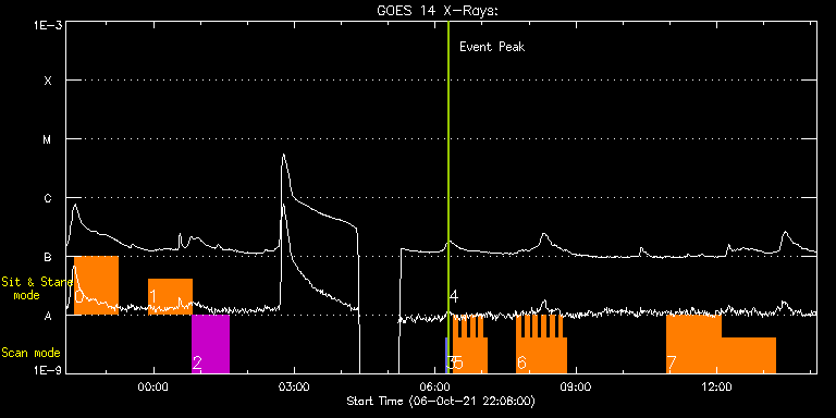 EIS Observation timeline overlay to GOES-Xray curve Code 1" 2" 40" 266" EIS Observations list for this event: STUDY ACRONYM ID DATE OBSERVED DESCRIPTION NOAA# TARGET 0 HPW021VEL001x512v2 | 79193 | 2021/10/06 22:18:26 | HOP 0420(Study of MHD Waves in the Chr | | Active Region TIMELINE ID DATE OBSERVED FITS FILE XCEN (+W/-E) YCEN (+N/-S) DUR ----------------------------------------------------------------------------------------------------------------- 79193 | 2021/10/06 22:18:26.000 | eis_l0_20211006_221826.fits.gz | 554.14 | 364.90 | 55m50s 1 HPW021VEL001x512v2 | 79194 | 2021/10/06 23:53:39 | HOP 0420(Study of MHD Waves in the Chr | | Active Region TIMELINE ID DATE OBSERVED FITS FILE XCEN (+W/-E) YCEN (+N/-S) DUR ----------------------------------------------------------------------------------------------------------------- 79194 | 2021/10/06 23:53:39.000 | eis_l0_20211006_235339.fits.gz | 543.45 | 365.83 | 55m49s 2 HPW021VEL120x512v2_b | 79196 | 2021/10/07 00:49:47 | HOP 0420(Study of MHD Waves in the Chr | | Active Region TIMELINE ID DATE OBSERVED FITS FILE XCEN (+W/-E) YCEN (+N/-S) DUR ----------------------------------------------------------------------------------------------------------------- 79196 | 2021/10/07 00:49:47.000 | eis_l0_20211007_004947.fits.gz | 544.94 | 401.29 | 46m53s 3 PRY_slot_contextLITE | 79199 | 2021/10/07 06:14:03 | Pointing Monitoring | | Active Region TIMELINE ID DATE OBSERVED FITS FILE XCEN (+W/-E) YCEN (+N/-S) DUR ----------------------------------------------------------------------------------------------------------------- 79199 | 2021/10/07 06:14:03.000 | eis_l0_20211007_061403.fits.gz | -15.29 | -0.35 | 2m56s 4 XRT_synop_AIA | 79200 | 2021/10/07 06:17:18 | Pointing Monitoring | | Quiet Sun TIMELINE ID DATE OBSERVED FITS FILE XCEN (+W/-E) YCEN (+N/-S) DUR ----------------------------------------------------------------------------------------------------------------- 79200 | 2021/10/07 06:17:18.000 | eis_l0_20211007_061718.fits.gz | -132.57 | -0.50 | 10s 5 HH_Flare+AR_180x152 | 79215 | 2021/10/07 06:23:49 | AR obs | | Flare TIMELINE ID DATE OBSERVED FITS FILE XCEN (+W/-E) YCEN (+N/-S) DUR ----------------------------------------------------------------------------------------------------------------- 79215 | 2021/10/07 06:23:49.000 | eis_l0_20211007_062349.fits.gz | -559.22 | 171.33 | 5m17s 79215 | 2021/10/07 06:29:09.000 | eis_l0_20211007_062909.fits.gz | -558.60 | 171.33 | 5m19s 79215 | 2021/10/07 06:34:30.000 | eis_l0_20211007_063430.fits.gz | -557.98 | 171.33 | 5m19s 79215 | 2021/10/07 06:39:52.000 | eis_l0_20211007_063952.fits.gz | -557.36 | 171.17 | 5m17s 79215 | 2021/10/07 06:45:12.000 | eis_l0_20211007_064512.fits.gz | -556.67 | 171.10 | 5m18s 79215 | 2021/10/07 06:50:33.000 | eis_l0_20211007_065033.fits.gz | -556.13 | 171.10 | 5m18s 79215 | 2021/10/07 06:55:54.000 | eis_l0_20211007_065554.fits.gz | -555.43 | 171.10 | 5m18s 79215 | 2021/10/07 07:01:15.000 | eis_l0_20211007_070115.fits.gz | -554.74 | 170.94 | 5m18s 6 HH_Flare+AR_180x152 | 79216 | 2021/10/07 07:44:09 | AR obs | | Flare TIMELINE ID DATE OBSERVED FITS FILE XCEN (+W/-E) YCEN (+N/-S) DUR ----------------------------------------------------------------------------------------------------------------- 79216 | 2021/10/07 07:44:09.000 | eis_l0_20211007_074409.fits.gz | -549.56 | 170.71 | 5m18s 79216 | 2021/10/07 07:49:29.000 | eis_l0_20211007_074929.fits.gz | -548.94 | 170.79 | 5m18s 79216 | 2021/10/07 07:54:50.000 | eis_l0_20211007_075450.fits.gz | -548.33 | 170.48 | 5m19s 79216 | 2021/10/07 08:00:12.000 | eis_l0_20211007_080012.fits.gz | -547.71 | 170.63 | 5m17s 79216 | 2021/10/07 08:05:32.000 | eis_l0_20211007_080532.fits.gz | -547.01 | 170.48 | 5m19s 79216 | 2021/10/07 08:10:53.000 | eis_l0_20211007_081053.fits.gz | -546.32 | 170.40 | 5m18s 79216 | 2021/10/07 08:16:14.000 | eis_l0_20211007_081614.fits.gz | -545.62 | 170.40 | 5m17s 79216 | 2021/10/07 08:21:34.000 | eis_l0_20211007_082134.fits.gz | -545.08 | 170.40 | 5m19s 79216 | 2021/10/07 08:26:55.000 | eis_l0_20211007_082655.fits.gz | -544.31 | 170.24 | 5m19s 79216 | 2021/10/07 08:32:16.000 | eis_l0_20211007_083216.fits.gz | -543.77 | 170.24 | 5m18s 79216 | 2021/10/07 08:37:36.000 | eis_l0_20211007_083736.fits.gz | -543.07 | 170.17 | 5m19s 79216 | 2021/10/07 08:42:58.000 | eis_l0_20211007_084258.fits.gz | -542.38 | 170.17 | 5m17s 7 HOP81_new_study | 79236 | 2021/10/07 10:55:41 | HOP81 - North | | Coronal Hole TIMELINE ID DATE OBSERVED FITS FILE XCEN (+W/-E) YCEN (+N/-S) DUR ----------------------------------------------------------------------------------------------------------------- 79236 | 2021/10/07 10:55:41.000 | eis_l0_20211007_105541.fits.gz | -17.33 | 894.67 | 1h9m44s 79236 | 2021/10/07 12:05:30.000 | eis_l0_20211007_120530.fits.gz | -17.25 | 894.60 | 1h9m45s : Check study information : Download file : View thumbnails For this event, also check for: