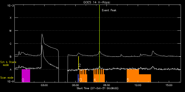 EIS Observation timeline overlay to GOES-Xray curve Code 1" 2" 40" 266" EIS Observations list for this event: STUDY ACRONYM ID DATE OBSERVED DESCRIPTION NOAA# TARGET 0 HPW021VEL120x512v2_b | 79196 | 2021/10/07 00:49:47 | HOP 0420(Study of MHD Waves in the Chr | | Active Region TIMELINE ID DATE OBSERVED FITS FILE XCEN (+W/-E) YCEN (+N/-S) DUR ----------------------------------------------------------------------------------------------------------------- 79196 | 2021/10/07 00:49:47.000 | eis_l0_20211007_004947.fits.gz | 544.94 | 401.29 | 46m53s 1 PRY_slot_contextLITE | 79199 | 2021/10/07 06:14:03 | Pointing Monitoring | | Active Region TIMELINE ID DATE OBSERVED FITS FILE XCEN (+W/-E) YCEN (+N/-S) DUR ----------------------------------------------------------------------------------------------------------------- 79199 | 2021/10/07 06:14:03.000 | eis_l0_20211007_061403.fits.gz | -15.29 | -0.35 | 2m56s 2 XRT_synop_AIA | 79200 | 2021/10/07 06:17:18 | Pointing Monitoring | | Quiet Sun TIMELINE ID DATE OBSERVED FITS FILE XCEN (+W/-E) YCEN (+N/-S) DUR ----------------------------------------------------------------------------------------------------------------- 79200 | 2021/10/07 06:17:18.000 | eis_l0_20211007_061718.fits.gz | -132.57 | -0.50 | 10s 3 HH_Flare+AR_180x152 | 79215 | 2021/10/07 06:23:49 | AR obs | | Flare TIMELINE ID DATE OBSERVED FITS FILE XCEN (+W/-E) YCEN (+N/-S) DUR ----------------------------------------------------------------------------------------------------------------- 79215 | 2021/10/07 06:23:49.000 | eis_l0_20211007_062349.fits.gz | -559.22 | 171.33 | 5m17s 79215 | 2021/10/07 06:29:09.000 | eis_l0_20211007_062909.fits.gz | -558.60 | 171.33 | 5m19s 79215 | 2021/10/07 06:34:30.000 | eis_l0_20211007_063430.fits.gz | -557.98 | 171.33 | 5m19s 79215 | 2021/10/07 06:39:52.000 | eis_l0_20211007_063952.fits.gz | -557.36 | 171.17 | 5m17s 79215 | 2021/10/07 06:45:12.000 | eis_l0_20211007_064512.fits.gz | -556.67 | 171.10 | 5m18s 79215 | 2021/10/07 06:50:33.000 | eis_l0_20211007_065033.fits.gz | -556.13 | 171.10 | 5m18s 79215 | 2021/10/07 06:55:54.000 | eis_l0_20211007_065554.fits.gz | -555.43 | 171.10 | 5m18s 79215 | 2021/10/07 07:01:15.000 | eis_l0_20211007_070115.fits.gz | -554.74 | 170.94 | 5m18s 4 HH_Flare+AR_180x152 | 79216 | 2021/10/07 07:44:09 | AR obs | | Flare TIMELINE ID DATE OBSERVED FITS FILE XCEN (+W/-E) YCEN (+N/-S) DUR ----------------------------------------------------------------------------------------------------------------- 79216 | 2021/10/07 07:44:09.000 | eis_l0_20211007_074409.fits.gz | -549.56 | 170.71 | 5m18s 79216 | 2021/10/07 07:49:29.000 | eis_l0_20211007_074929.fits.gz | -548.94 | 170.79 | 5m18s 79216 | 2021/10/07 07:54:50.000 | eis_l0_20211007_075450.fits.gz | -548.33 | 170.48 | 5m19s 79216 | 2021/10/07 08:00:12.000 | eis_l0_20211007_080012.fits.gz | -547.71 | 170.63 | 5m17s 79216 | 2021/10/07 08:05:32.000 | eis_l0_20211007_080532.fits.gz | -547.01 | 170.48 | 5m19s 79216 | 2021/10/07 08:10:53.000 | eis_l0_20211007_081053.fits.gz | -546.32 | 170.40 | 5m18s 79216 | 2021/10/07 08:16:14.000 | eis_l0_20211007_081614.fits.gz | -545.62 | 170.40 | 5m17s 79216 | 2021/10/07 08:21:34.000 | eis_l0_20211007_082134.fits.gz | -545.08 | 170.40 | 5m19s 79216 | 2021/10/07 08:26:55.000 | eis_l0_20211007_082655.fits.gz | -544.31 | 170.24 | 5m19s 79216 | 2021/10/07 08:32:16.000 | eis_l0_20211007_083216.fits.gz | -543.77 | 170.24 | 5m18s 79216 | 2021/10/07 08:37:36.000 | eis_l0_20211007_083736.fits.gz | -543.07 | 170.17 | 5m19s 79216 | 2021/10/07 08:42:58.000 | eis_l0_20211007_084258.fits.gz | -542.38 | 170.17 | 5m17s 5 HOP81_new_study | 79236 | 2021/10/07 10:55:41 | HOP81 - North | | Coronal Hole TIMELINE ID DATE OBSERVED FITS FILE XCEN (+W/-E) YCEN (+N/-S) DUR ----------------------------------------------------------------------------------------------------------------- 79236 | 2021/10/07 10:55:41.000 | eis_l0_20211007_105541.fits.gz | -17.33 | 894.67 | 1h9m44s 79236 | 2021/10/07 12:05:30.000 | eis_l0_20211007_120530.fits.gz | -17.25 | 894.60 | 1h9m45s : Check study information : Download file : View thumbnails For this event, also check for: