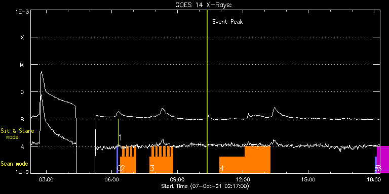 EIS Observation timeline overlay to GOES-Xray curve Code 1" 2" 40" 266" EIS Observations list for this event: STUDY ACRONYM ID DATE OBSERVED DESCRIPTION NOAA# TARGET 0 PRY_slot_contextLITE | 79199 | 2021/10/07 06:14:03 | Pointing Monitoring | | Active Region TIMELINE ID DATE OBSERVED FITS FILE XCEN (+W/-E) YCEN (+N/-S) DUR ----------------------------------------------------------------------------------------------------------------- 79199 | 2021/10/07 06:14:03.000 | eis_l0_20211007_061403.fits.gz | -15.29 | -0.35 | 2m56s 1 XRT_synop_AIA | 79200 | 2021/10/07 06:17:18 | Pointing Monitoring | | Quiet Sun TIMELINE ID DATE OBSERVED FITS FILE XCEN (+W/-E) YCEN (+N/-S) DUR ----------------------------------------------------------------------------------------------------------------- 79200 | 2021/10/07 06:17:18.000 | eis_l0_20211007_061718.fits.gz | -132.57 | -0.50 | 10s 2 HH_Flare+AR_180x152 | 79215 | 2021/10/07 06:23:49 | AR obs | | Flare TIMELINE ID DATE OBSERVED FITS FILE XCEN (+W/-E) YCEN (+N/-S) DUR ----------------------------------------------------------------------------------------------------------------- 79215 | 2021/10/07 06:23:49.000 | eis_l0_20211007_062349.fits.gz | -559.22 | 171.33 | 5m17s 79215 | 2021/10/07 06:29:09.000 | eis_l0_20211007_062909.fits.gz | -558.60 | 171.33 | 5m19s 79215 | 2021/10/07 06:34:30.000 | eis_l0_20211007_063430.fits.gz | -557.98 | 171.33 | 5m19s 79215 | 2021/10/07 06:39:52.000 | eis_l0_20211007_063952.fits.gz | -557.36 | 171.17 | 5m17s 79215 | 2021/10/07 06:45:12.000 | eis_l0_20211007_064512.fits.gz | -556.67 | 171.10 | 5m18s 79215 | 2021/10/07 06:50:33.000 | eis_l0_20211007_065033.fits.gz | -556.13 | 171.10 | 5m18s 79215 | 2021/10/07 06:55:54.000 | eis_l0_20211007_065554.fits.gz | -555.43 | 171.10 | 5m18s 79215 | 2021/10/07 07:01:15.000 | eis_l0_20211007_070115.fits.gz | -554.74 | 170.94 | 5m18s 3 HH_Flare+AR_180x152 | 79216 | 2021/10/07 07:44:09 | AR obs | | Flare TIMELINE ID DATE OBSERVED FITS FILE XCEN (+W/-E) YCEN (+N/-S) DUR ----------------------------------------------------------------------------------------------------------------- 79216 | 2021/10/07 07:44:09.000 | eis_l0_20211007_074409.fits.gz | -549.56 | 170.71 | 5m18s 79216 | 2021/10/07 07:49:29.000 | eis_l0_20211007_074929.fits.gz | -548.94 | 170.79 | 5m18s 79216 | 2021/10/07 07:54:50.000 | eis_l0_20211007_075450.fits.gz | -548.33 | 170.48 | 5m19s 79216 | 2021/10/07 08:00:12.000 | eis_l0_20211007_080012.fits.gz | -547.71 | 170.63 | 5m17s 79216 | 2021/10/07 08:05:32.000 | eis_l0_20211007_080532.fits.gz | -547.01 | 170.48 | 5m19s 79216 | 2021/10/07 08:10:53.000 | eis_l0_20211007_081053.fits.gz | -546.32 | 170.40 | 5m18s 79216 | 2021/10/07 08:16:14.000 | eis_l0_20211007_081614.fits.gz | -545.62 | 170.40 | 5m17s 79216 | 2021/10/07 08:21:34.000 | eis_l0_20211007_082134.fits.gz | -545.08 | 170.40 | 5m19s 79216 | 2021/10/07 08:26:55.000 | eis_l0_20211007_082655.fits.gz | -544.31 | 170.24 | 5m19s 79216 | 2021/10/07 08:32:16.000 | eis_l0_20211007_083216.fits.gz | -543.77 | 170.24 | 5m18s 79216 | 2021/10/07 08:37:36.000 | eis_l0_20211007_083736.fits.gz | -543.07 | 170.17 | 5m19s 79216 | 2021/10/07 08:42:58.000 | eis_l0_20211007_084258.fits.gz | -542.38 | 170.17 | 5m17s 4 HOP81_new_study | 79236 | 2021/10/07 10:55:41 | HOP81 - North | | Coronal Hole TIMELINE ID DATE OBSERVED FITS FILE XCEN (+W/-E) YCEN (+N/-S) DUR ----------------------------------------------------------------------------------------------------------------- 79236 | 2021/10/07 10:55:41.000 | eis_l0_20211007_105541.fits.gz | -17.33 | 894.67 | 1h9m44s 79236 | 2021/10/07 12:05:30.000 | eis_l0_20211007_120530.fits.gz | -17.25 | 894.60 | 1h9m45s 5 PRY_slot_contextLIQS | 79229 | 2021/10/07 18:02:51 | HOP 0420(Study of MHD Waves in the Chr | 2882 | Quiet Sun TIMELINE ID DATE OBSERVED FITS FILE XCEN (+W/-E) YCEN (+N/-S) DUR ----------------------------------------------------------------------------------------------------------------- 79229 | 2021/10/07 18:02:51.000 | eis_l0_20211007_180251.fits.gz | -501.76 | 168.08 | 5m27s 6 HPW021VEL120x512v2_b | 79230 | 2021/10/07 18:08:29 | HOP 0420(Study of MHD Waves in the Chr | 2882 | Active Region TIMELINE ID DATE OBSERVED FITS FILE XCEN (+W/-E) YCEN (+N/-S) DUR ----------------------------------------------------------------------------------------------------------------- 79230 | 2021/10/07 18:08:29.000 | eis_l0_20211007_180829.fits.gz | -486.26 | 168.01 | 46m54s : Check study information : Download file : View thumbnails For this event, also check for: