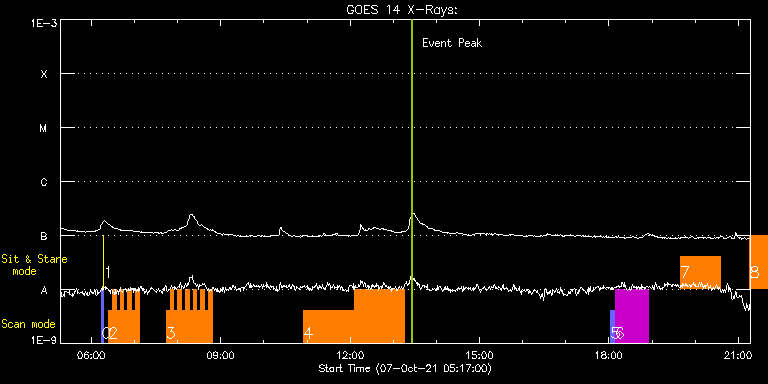 EIS Observation timeline overlay to GOES-Xray curve Code 1" 2" 40" 266" EIS Observations list for this event: STUDY ACRONYM ID DATE OBSERVED DESCRIPTION NOAA# TARGET 0 PRY_slot_contextLITE | 79199 | 2021/10/07 06:14:03 | Pointing Monitoring | | Active Region TIMELINE ID DATE OBSERVED FITS FILE XCEN (+W/-E) YCEN (+N/-S) DUR ----------------------------------------------------------------------------------------------------------------- 79199 | 2021/10/07 06:14:03.000 | eis_l0_20211007_061403.fits.gz | -15.29 | -0.35 | 2m56s 1 XRT_synop_AIA | 79200 | 2021/10/07 06:17:18 | Pointing Monitoring | | Quiet Sun TIMELINE ID DATE OBSERVED FITS FILE XCEN (+W/-E) YCEN (+N/-S) DUR ----------------------------------------------------------------------------------------------------------------- 79200 | 2021/10/07 06:17:18.000 | eis_l0_20211007_061718.fits.gz | -132.57 | -0.50 | 10s 2 HH_Flare+AR_180x152 | 79215 | 2021/10/07 06:23:49 | AR obs | | Flare TIMELINE ID DATE OBSERVED FITS FILE XCEN (+W/-E) YCEN (+N/-S) DUR ----------------------------------------------------------------------------------------------------------------- 79215 | 2021/10/07 06:23:49.000 | eis_l0_20211007_062349.fits.gz | -559.22 | 171.33 | 5m17s 79215 | 2021/10/07 06:29:09.000 | eis_l0_20211007_062909.fits.gz | -558.60 | 171.33 | 5m19s 79215 | 2021/10/07 06:34:30.000 | eis_l0_20211007_063430.fits.gz | -557.98 | 171.33 | 5m19s 79215 | 2021/10/07 06:39:52.000 | eis_l0_20211007_063952.fits.gz | -557.36 | 171.17 | 5m17s 79215 | 2021/10/07 06:45:12.000 | eis_l0_20211007_064512.fits.gz | -556.67 | 171.10 | 5m18s 79215 | 2021/10/07 06:50:33.000 | eis_l0_20211007_065033.fits.gz | -556.13 | 171.10 | 5m18s 79215 | 2021/10/07 06:55:54.000 | eis_l0_20211007_065554.fits.gz | -555.43 | 171.10 | 5m18s 79215 | 2021/10/07 07:01:15.000 | eis_l0_20211007_070115.fits.gz | -554.74 | 170.94 | 5m18s 3 HH_Flare+AR_180x152 | 79216 | 2021/10/07 07:44:09 | AR obs | | Flare TIMELINE ID DATE OBSERVED FITS FILE XCEN (+W/-E) YCEN (+N/-S) DUR ----------------------------------------------------------------------------------------------------------------- 79216 | 2021/10/07 07:44:09.000 | eis_l0_20211007_074409.fits.gz | -549.56 | 170.71 | 5m18s 79216 | 2021/10/07 07:49:29.000 | eis_l0_20211007_074929.fits.gz | -548.94 | 170.79 | 5m18s 79216 | 2021/10/07 07:54:50.000 | eis_l0_20211007_075450.fits.gz | -548.33 | 170.48 | 5m19s 79216 | 2021/10/07 08:00:12.000 | eis_l0_20211007_080012.fits.gz | -547.71 | 170.63 | 5m17s 79216 | 2021/10/07 08:05:32.000 | eis_l0_20211007_080532.fits.gz | -547.01 | 170.48 | 5m19s 79216 | 2021/10/07 08:10:53.000 | eis_l0_20211007_081053.fits.gz | -546.32 | 170.40 | 5m18s 79216 | 2021/10/07 08:16:14.000 | eis_l0_20211007_081614.fits.gz | -545.62 | 170.40 | 5m17s 79216 | 2021/10/07 08:21:34.000 | eis_l0_20211007_082134.fits.gz | -545.08 | 170.40 | 5m19s 79216 | 2021/10/07 08:26:55.000 | eis_l0_20211007_082655.fits.gz | -544.31 | 170.24 | 5m19s 79216 | 2021/10/07 08:32:16.000 | eis_l0_20211007_083216.fits.gz | -543.77 | 170.24 | 5m18s 79216 | 2021/10/07 08:37:36.000 | eis_l0_20211007_083736.fits.gz | -543.07 | 170.17 | 5m19s 79216 | 2021/10/07 08:42:58.000 | eis_l0_20211007_084258.fits.gz | -542.38 | 170.17 | 5m17s 4 HOP81_new_study | 79236 | 2021/10/07 10:55:41 | HOP81 - North | | Coronal Hole TIMELINE ID DATE OBSERVED FITS FILE XCEN (+W/-E) YCEN (+N/-S) DUR ----------------------------------------------------------------------------------------------------------------- 79236 | 2021/10/07 10:55:41.000 | eis_l0_20211007_105541.fits.gz | -17.33 | 894.67 | 1h9m44s 79236 | 2021/10/07 12:05:30.000 | eis_l0_20211007_120530.fits.gz | -17.25 | 894.60 | 1h9m45s 5 PRY_slot_contextLIQS | 79229 | 2021/10/07 18:02:51 | HOP 0420(Study of MHD Waves in the Chr | 2882 | Quiet Sun TIMELINE ID DATE OBSERVED FITS FILE XCEN (+W/-E) YCEN (+N/-S) DUR ----------------------------------------------------------------------------------------------------------------- 79229 | 2021/10/07 18:02:51.000 | eis_l0_20211007_180251.fits.gz | -501.76 | 168.08 | 5m27s 6 HPW021VEL120x512v2_b | 79230 | 2021/10/07 18:08:29 | HOP 0420(Study of MHD Waves in the Chr | 2882 | Active Region TIMELINE ID DATE OBSERVED FITS FILE XCEN (+W/-E) YCEN (+N/-S) DUR ----------------------------------------------------------------------------------------------------------------- 79230 | 2021/10/07 18:08:29.000 | eis_l0_20211007_180829.fits.gz | -486.26 | 168.01 | 46m54s 7 HPW021VEL001x512v2 | 79231 | 2021/10/07 19:39:27 | HOP 0420(Study of MHD Waves in the Chr | | Active Region TIMELINE ID DATE OBSERVED FITS FILE XCEN (+W/-E) YCEN (+N/-S) DUR ----------------------------------------------------------------------------------------------------------------- 79231 | 2021/10/07 19:39:27.000 | eis_l0_20211007_193927.fits.gz | -472.59 | 167.39 | 55m50s 8 HPW021VEL001x512v2 | 79232 | 2021/10/07 21:16:13 | HOP 0420(Study of MHD Waves in the Chr | | Active Region TIMELINE ID DATE OBSERVED FITS FILE XCEN (+W/-E) YCEN (+N/-S) DUR ----------------------------------------------------------------------------------------------------------------- 79232 | 2021/10/07 21:16:13.000 | eis_l0_20211007_211613.fits.gz | -459.57 | 166.69 | 55m50s : Check study information : Download file : View thumbnails For this event, also check for: