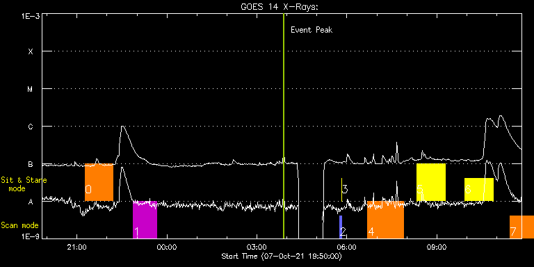 EIS Observation timeline overlay to GOES-Xray curve Code 1" 2" 40" 266" EIS Observations list for this event: STUDY ACRONYM ID DATE OBSERVED DESCRIPTION NOAA# TARGET 0 HPW021VEL001x512v2 | 79232 | 2021/10/07 21:16:13 | HOP 0420(Study of MHD Waves in the Chr | | Active Region TIMELINE ID DATE OBSERVED FITS FILE XCEN (+W/-E) YCEN (+N/-S) DUR ----------------------------------------------------------------------------------------------------------------- 79232 | 2021/10/07 21:16:13.000 | eis_l0_20211007_211613.fits.gz | -459.57 | 166.69 | 55m50s 1 HPW021VEL120x512v2_b | 79233 | 2021/10/07 22:52:56 | HOP 0420(Study of MHD Waves in the Chr | 2882 | Active Region TIMELINE ID DATE OBSERVED FITS FILE XCEN (+W/-E) YCEN (+N/-S) DUR ----------------------------------------------------------------------------------------------------------------- 79233 | 2021/10/07 22:52:56.000 | eis_l0_20211007_225256.fits.gz | -449.57 | 166.00 | 46m53s 2 PRY_slot_contextLITE | 79234 | 2021/10/08 05:46:03 | Pointing Monitoring | 2882 | Active Region TIMELINE ID DATE OBSERVED FITS FILE XCEN (+W/-E) YCEN (+N/-S) DUR ----------------------------------------------------------------------------------------------------------------- 79234 | 2021/10/08 05:46:03.000 | eis_l0_20211008_054603.fits.gz | -15.29 | -0.42 | 2m56s 3 XRT_synop_AIA | 79235 | 2021/10/08 05:49:17 | Pointing Monitoring | 2882 | Quiet Sun TIMELINE ID DATE OBSERVED FITS FILE XCEN (+W/-E) YCEN (+N/-S) DUR ----------------------------------------------------------------------------------------------------------------- 79235 | 2021/10/08 05:49:17.000 | eis_l0_20211008_054917.fits.gz | -132.57 | -0.42 | 10s 4 raster_hefe3 | 79243 | 2021/10/08 06:41:49 | HOP 0361(Measuring high time cadence d | | Active Region TIMELINE ID DATE OBSERVED FITS FILE XCEN (+W/-E) YCEN (+N/-S) DUR ----------------------------------------------------------------------------------------------------------------- 79243 | 2021/10/08 06:41:49.000 | eis_l0_20211008_064149.fits.gz | -387.14 | 163.06 | 1h12m18s 5 fast_slot_hefe3 | 79244 | 2021/10/08 08:19:32 | HOP 0361(Measuring high time cadence d | | Active Region TIMELINE ID DATE OBSERVED FITS FILE XCEN (+W/-E) YCEN (+N/-S) DUR ----------------------------------------------------------------------------------------------------------------- 79244 | 2021/10/08 08:19:32.000 | eis_l0_20211008_081932.fits.gz | -505.87 | 162.44 | 56m58s 6 fast_slot_hefe3 | 79245 | 2021/10/08 09:55:13 | HOP 0361(Measuring high time cadence d | | Active Region TIMELINE ID DATE OBSERVED FITS FILE XCEN (+W/-E) YCEN (+N/-S) DUR ----------------------------------------------------------------------------------------------------------------- 79245 | 2021/10/08 09:55:13.000 | eis_l0_20211008_095513.fits.gz | -493.06 | 161.98 | 57m9s 7 raster_hefe3 | 79246 | 2021/10/08 11:26:49 | HOP 0361(Measuring high time cadence d | | Active Region TIMELINE ID DATE OBSERVED FITS FILE XCEN (+W/-E) YCEN (+N/-S) DUR ----------------------------------------------------------------------------------------------------------------- 79246 | 2021/10/08 11:26:49.000 | eis_l0_20211008_112649.fits.gz | -348.13 | 161.52 | 1h12m19s : Check study information : Download file : View thumbnails For this event, also check for: