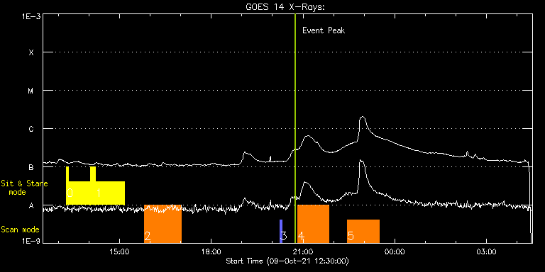 EIS Observation timeline overlay to GOES-Xray curve Code 1" 2" 40" 266" EIS Observations list for this event: STUDY ACRONYM ID DATE OBSERVED DESCRIPTION NOAA# TARGET 0 fast_slot_hefe3 | 79252 | 2021/10/09 13:16:14 | HOP 0361(Measuring high time cadence d | | Active Region TIMELINE ID DATE OBSERVED FITS FILE XCEN (+W/-E) YCEN (+N/-S) DUR ----------------------------------------------------------------------------------------------------------------- 79252 | 2021/10/09 13:16:14.000 | eis_l0_20211009_131614.fits.gz | -258.23 | 156.73 | 3m25s 79252 | 2021/10/09 13:19:52.000 | eis_l0_20211009_131952.fits.gz | -257.69 | 156.57 | 43m48s 79252 | 2021/10/09 14:03:53.000 | eis_l0_20211009_140353.fits.gz | -251.20 | 156.49 | 9m30s 1 fast_slot_hefe3 | 79253 | 2021/10/09 14:13:27 | HOP 0361(Measuring high time cadence d | | Active Region TIMELINE ID DATE OBSERVED FITS FILE XCEN (+W/-E) YCEN (+N/-S) DUR ----------------------------------------------------------------------------------------------------------------- 79253 | 2021/10/09 14:13:27.000 | eis_l0_20211009_141327.fits.gz | -249.81 | 156.49 | 57m9s 2 raster_hefe3 | 79254 | 2021/10/09 15:48:20 | HOP 0361(Measuring high time cadence d | 2882 | Active Region TIMELINE ID DATE OBSERVED FITS FILE XCEN (+W/-E) YCEN (+N/-S) DUR ----------------------------------------------------------------------------------------------------------------- 79254 | 2021/10/09 15:48:20.000 | eis_l0_20211009_154820.fits.gz | -103.81 | 156.49 | 1h12m18s 3 PRY_slot_contextLITE | 79279 | 2021/10/09 20:15:20 | Active Region Studies | 2882 | Active Region TIMELINE ID DATE OBSERVED FITS FILE XCEN (+W/-E) YCEN (+N/-S) DUR ----------------------------------------------------------------------------------------------------------------- 79279 | 2021/10/09 20:15:20.000 | eis_l0_20211009_201520.fits.gz | -79.15 | 156.42 | 2m57s 4 Atlas_60 | 79278 | 2021/10/09 20:49:34 | Active Region Studies | | Quiet Sun TIMELINE ID DATE OBSERVED FITS FILE XCEN (+W/-E) YCEN (+N/-S) DUR ----------------------------------------------------------------------------------------------------------------- 79278 | 2021/10/09 20:49:34.000 | eis_l0_20211009_204934.fits.gz | -59.24 | 156.26 | 1h1m39s 5 Large_CH_Map | 79247 | 2021/10/09 22:27:11 | HOP 393 (Cycle 24/25 equatorial transi | | Quiet Sun TIMELINE ID DATE OBSERVED FITS FILE XCEN (+W/-E) YCEN (+N/-S) DUR ----------------------------------------------------------------------------------------------------------------- 79247 | 2021/10/09 22:27:11.000 | eis_l0_20211009_222711.fits.gz | -37.72 | -111.01 | 1h1m53s : Check study information : Download file : View thumbnails For this event, also check for: