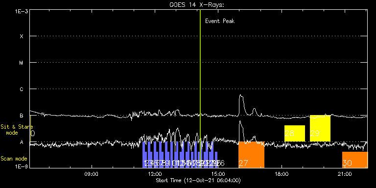 EIS Observation timeline overlay to GOES-Xray curve Code 1" 2" 40" 266" EIS Observations list for this event: STUDY ACRONYM ID DATE OBSERVED DESCRIPTION NOAA# TARGET 0 XRT_synop_AIA | 79272 | 2021/10/12 06:06:34 | Pointing Monitoring | | Quiet Sun TIMELINE ID DATE OBSERVED FITS FILE XCEN (+W/-E) YCEN (+N/-S) DUR ----------------------------------------------------------------------------------------------------------------- 79272 | 2021/10/12 06:06:34.000 | eis_l0_20211012_060634.fits.gz | -132.41 | -0.42 | 10s 1 full_sun_slot_scan_2 | 79281 | 2021/10/12 11:25:27 | HOP 130 #01(1/2) | 2883 | Quiet Sun TIMELINE ID DATE OBSERVED FITS FILE XCEN (+W/-E) YCEN (+N/-S) DUR ----------------------------------------------------------------------------------------------------------------- 79281 | 2021/10/12 11:25:27.000 | eis_l0_20211012_112527.fits.gz | 903.57 | 181.42 | 5m27s 2 full_sun_slot_scan_2 | 79282 | 2021/10/12 11:31:00 | HOP 130 #01(2/2) | | Quiet Sun TIMELINE ID DATE OBSERVED FITS FILE XCEN (+W/-E) YCEN (+N/-S) DUR ----------------------------------------------------------------------------------------------------------------- 79282 | 2021/10/12 11:31:00.000 | eis_l0_20211012_113100.fits.gz | 903.50 | -290.50 | 5m26s 3 full_sun_slot_scan_2 | 79283 | 2021/10/12 11:41:14 | HOP 130 #02(1/2) | 2882 | Quiet Sun TIMELINE ID DATE OBSERVED FITS FILE XCEN (+W/-E) YCEN (+N/-S) DUR ----------------------------------------------------------------------------------------------------------------- 79283 | 2021/10/12 11:41:14.000 | eis_l0_20211012_114114.fits.gz | 435.45 | 181.58 | 5m27s 4 full_sun_slot_scan_2 | 79284 | 2021/10/12 11:46:46 | HOP 130 #02(2/2) | | Quiet Sun TIMELINE ID DATE OBSERVED FITS FILE XCEN (+W/-E) YCEN (+N/-S) DUR ----------------------------------------------------------------------------------------------------------------- 79284 | 2021/10/12 11:46:46.000 | eis_l0_20211012_114646.fits.gz | 435.61 | -290.58 | 5m27s 5 full_sun_slot_scan_2 | 79285 | 2021/10/12 11:57:15 | HOP 130 #03(1/2) | | Quiet Sun TIMELINE ID DATE OBSERVED FITS FILE XCEN (+W/-E) YCEN (+N/-S) DUR ----------------------------------------------------------------------------------------------------------------- 79285 | 2021/10/12 11:57:15.000 | eis_l0_20211012_115715.fits.gz | -32.59 | 181.50 | 5m27s 6 full_sun_slot_scan_2 | 79286 | 2021/10/12 12:02:47 | HOP 130 #03(2/2) | | Quiet Sun TIMELINE ID DATE OBSERVED FITS FILE XCEN (+W/-E) YCEN (+N/-S) DUR ----------------------------------------------------------------------------------------------------------------- 79286 | 2021/10/12 12:02:47.000 | eis_l0_20211012_120247.fits.gz | -32.44 | -290.50 | 5m26s 7 full_sun_slot_scan_2 | 79289 | 2021/10/12 12:13:14 | HOP 130 #04(1/2) | | Quiet Sun TIMELINE ID DATE OBSERVED FITS FILE XCEN (+W/-E) YCEN (+N/-S) DUR ----------------------------------------------------------------------------------------------------------------- 79289 | 2021/10/12 12:13:14.000 | eis_l0_20211012_121314.fits.gz | -500.48 | 181.50 | 5m27s 8 full_sun_slot_scan_2 | 79290 | 2021/10/12 12:18:46 | HOP 130 #04(2/2) | | Quiet Sun TIMELINE ID DATE OBSERVED FITS FILE XCEN (+W/-E) YCEN (+N/-S) DUR ----------------------------------------------------------------------------------------------------------------- 79290 | 2021/10/12 12:18:46.000 | eis_l0_20211012_121846.fits.gz | -500.48 | -290.42 | 5m27s 9 full_sun_slot_scan_2 | 79292 | 2021/10/12 12:29:14 | HOP 130 #05(1/2) | | Quiet Sun TIMELINE ID DATE OBSERVED FITS FILE XCEN (+W/-E) YCEN (+N/-S) DUR ----------------------------------------------------------------------------------------------------------------- 79292 | 2021/10/12 12:29:14.000 | eis_l0_20211012_122914.fits.gz | -9901.91 | -9781.20 | 5m27s 10 full_sun_slot_scan_2 | 79303 | 2021/10/12 12:34:46 | HOP 130 #05(2/2) | | Quiet Sun TIMELINE ID DATE OBSERVED FITS FILE XCEN (+W/-E) YCEN (+N/-S) DUR ----------------------------------------------------------------------------------------------------------------- 79303 | 2021/10/12 12:34:46.000 | eis_l0_20211012_123446.fits.gz | -9901.91 | -10253.20 | 5m27s 11 full_sun_slot_scan_2 | 79293 | 2021/10/12 12:45:14 | HOP 130 #06(1/1) | 2883 | Quiet Sun TIMELINE ID DATE OBSERVED FITS FILE XCEN (+W/-E) YCEN (+N/-S) DUR ----------------------------------------------------------------------------------------------------------------- 79293 | 2021/10/12 12:45:14.000 | eis_l0_20211012_124514.fits.gz | 782.53 | 650.86 | 5m27s 12 full_sun_slot_scan_2 | 79294 | 2021/10/12 12:55:14 | HOP 130 #07(1/2) | | Quiet Sun TIMELINE ID DATE OBSERVED FITS FILE XCEN (+W/-E) YCEN (+N/-S) DUR ----------------------------------------------------------------------------------------------------------------- 79294 | 2021/10/12 12:55:14.000 | eis_l0_20211012_125514.fits.gz | 378.35 | 1027.67 | 5m27s 13 full_sun_slot_scan_2 | 79304 | 2021/10/12 13:00:46 | HOP 130 #07(2/2) | | Quiet Sun TIMELINE ID DATE OBSERVED FITS FILE XCEN (+W/-E) YCEN (+N/-S) DUR ----------------------------------------------------------------------------------------------------------------- 79304 | 2021/10/12 13:00:46.000 | eis_l0_20211012_130046.fits.gz | 378.35 | 555.60 | 5m26s 14 full_sun_slot_scan_2 | 79295 | 2021/10/12 13:11:14 | HOP 130 #08(1/2) | | Quiet Sun TIMELINE ID DATE OBSERVED FITS FILE XCEN (+W/-E) YCEN (+N/-S) DUR ----------------------------------------------------------------------------------------------------------------- 79295 | 2021/10/12 13:11:14.000 | eis_l0_20211012_131114.fits.gz | -32.51 | 1122.53 | 5m27s 15 full_sun_slot_scan_2 | 79305 | 2021/10/12 13:16:46 | HOP 130 #08(2/2) | | Quiet Sun TIMELINE ID DATE OBSERVED FITS FILE XCEN (+W/-E) YCEN (+N/-S) DUR ----------------------------------------------------------------------------------------------------------------- 79305 | 2021/10/12 13:16:46.000 | eis_l0_20211012_131646.fits.gz | -32.44 | 650.53 | 5m27s 16 full_sun_slot_scan_2 | 79296 | 2021/10/12 13:27:14 | HOP 130 #09(1/2) | | Quiet Sun TIM