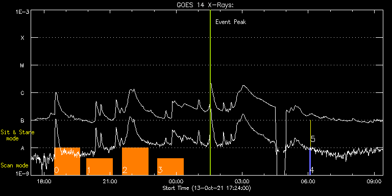 EIS Observation timeline overlay to GOES-Xray curve Code 1" 2" 40" 266" EIS Observations list for this event: STUDY ACRONYM ID DATE OBSERVED DESCRIPTION NOAA# TARGET 0 HOP81_new_study | 79310 | 2021/10/13 18:27:44 | HOP 81(Polar Monitoring Campaign durin | | Coronal Hole TIMELINE ID DATE OBSERVED FITS FILE XCEN (+W/-E) YCEN (+N/-S) DUR ----------------------------------------------------------------------------------------------------------------- 79310 | 2021/10/13 18:27:44.000 | eis_l0_20211013_182744.fits.gz | -19.15 | -904.43 | 1h9m45s 1 HOP81_new_study | 79311 | 2021/10/13 19:56:13 | HOP 81(Polar Monitoring Campaign durin | | Coronal Hole TIMELINE ID DATE OBSERVED FITS FILE XCEN (+W/-E) YCEN (+N/-S) DUR ----------------------------------------------------------------------------------------------------------------- 79311 | 2021/10/13 19:56:13.000 | eis_l0_20211013_195613.fits.gz | -19.25 | -904.51 | 1h9m44s 2 HOP81_new_study | 79312 | 2021/10/13 21:33:40 | HOP 81(Polar Monitoring Campaign durin | | Coronal Hole TIMELINE ID DATE OBSERVED FITS FILE XCEN (+W/-E) YCEN (+N/-S) DUR ----------------------------------------------------------------------------------------------------------------- 79312 | 2021/10/13 21:33:40.000 | eis_l0_20211013_213340.fits.gz | -19.25 | -904.35 | 1h9m44s 3 HOP81_new_study | 79313 | 2021/10/13 23:09:43 | HOP 81(Polar Monitoring Campaign durin | | Coronal Hole TIMELINE ID DATE OBSERVED FITS FILE XCEN (+W/-E) YCEN (+N/-S) DUR ----------------------------------------------------------------------------------------------------------------- 79313 | 2021/10/13 23:09:43.000 | eis_l0_20211013_230943.fits.gz | -19.33 | -904.43 | 1h9m45s 4 PRY_slot_contextLITE | 79323 | 2021/10/14 06:03:20 | Pointing Monitoring | | Active Region TIMELINE ID DATE OBSERVED FITS FILE XCEN (+W/-E) YCEN (+N/-S) DUR ----------------------------------------------------------------------------------------------------------------- 79323 | 2021/10/14 06:03:20.000 | eis_l0_20211014_060320.fits.gz | -15.21 | -0.42 | 2m56s 5 XRT_synop_AIA | 79324 | 2021/10/14 06:06:34 | Pointing Monitoring | | Quiet Sun TIMELINE ID DATE OBSERVED FITS FILE XCEN (+W/-E) YCEN (+N/-S) DUR ----------------------------------------------------------------------------------------------------------------- 79324 | 2021/10/14 06:06:34.000 | eis_l0_20211014_060634.fits.gz | -132.49 | -0.50 | 10s : Check study information : Download file : View thumbnails For this event, also check for: