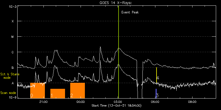 EIS Observation timeline overlay to GOES-Xray curve Code 1" 2" 40" 266" EIS Observations list for this event: STUDY ACRONYM ID DATE OBSERVED DESCRIPTION NOAA# TARGET 0 HOP81_new_study | 79311 | 2021/10/13 19:56:13 | HOP 81(Polar Monitoring Campaign durin | | Coronal Hole TIMELINE ID DATE OBSERVED FITS FILE XCEN (+W/-E) YCEN (+N/-S) DUR ----------------------------------------------------------------------------------------------------------------- 79311 | 2021/10/13 19:56:13.000 | eis_l0_20211013_195613.fits.gz | -19.25 | -904.51 | 1h9m44s 1 HOP81_new_study | 79312 | 2021/10/13 21:33:40 | HOP 81(Polar Monitoring Campaign durin | | Coronal Hole TIMELINE ID DATE OBSERVED FITS FILE XCEN (+W/-E) YCEN (+N/-S) DUR ----------------------------------------------------------------------------------------------------------------- 79312 | 2021/10/13 21:33:40.000 | eis_l0_20211013_213340.fits.gz | -19.25 | -904.35 | 1h9m44s 2 HOP81_new_study | 79313 | 2021/10/13 23:09:43 | HOP 81(Polar Monitoring Campaign durin | | Coronal Hole TIMELINE ID DATE OBSERVED FITS FILE XCEN (+W/-E) YCEN (+N/-S) DUR ----------------------------------------------------------------------------------------------------------------- 79313 | 2021/10/13 23:09:43.000 | eis_l0_20211013_230943.fits.gz | -19.33 | -904.43 | 1h9m45s 3 PRY_slot_contextLITE | 79323 | 2021/10/14 06:03:20 | Pointing Monitoring | | Active Region TIMELINE ID DATE OBSERVED FITS FILE XCEN (+W/-E) YCEN (+N/-S) DUR ----------------------------------------------------------------------------------------------------------------- 79323 | 2021/10/14 06:03:20.000 | eis_l0_20211014_060320.fits.gz | -15.21 | -0.42 | 2m56s 4 XRT_synop_AIA | 79324 | 2021/10/14 06:06:34 | Pointing Monitoring | | Quiet Sun TIMELINE ID DATE OBSERVED FITS FILE XCEN (+W/-E) YCEN (+N/-S) DUR ----------------------------------------------------------------------------------------------------------------- 79324 | 2021/10/14 06:06:34.000 | eis_l0_20211014_060634.fits.gz | -132.49 | -0.50 | 10s : Check study information : Download file : View thumbnails For this event, also check for: