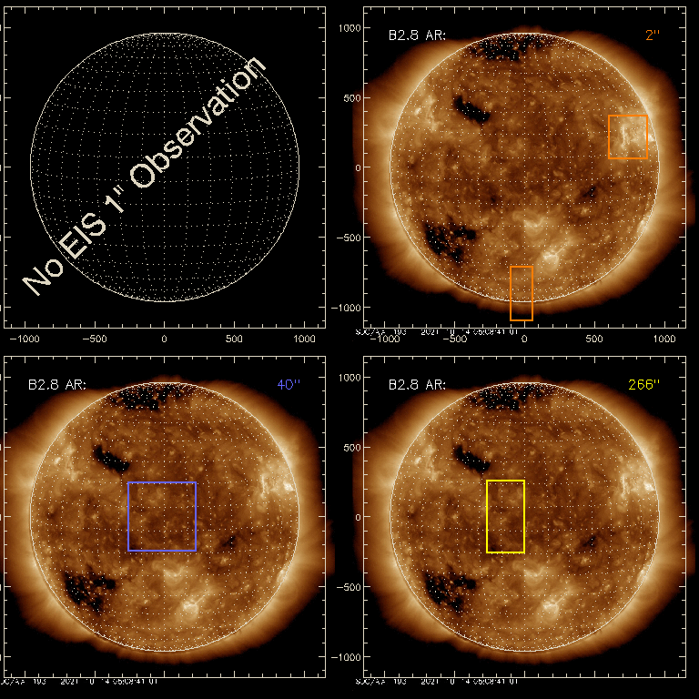 EIS Observation timeline overlay to GOES-Xray curve Code 1" 2" 40" 266" EIS Observations list for this event: STUDY ACRONYM ID DATE OBSERVED DESCRIPTION NOAA# TARGET 0 HOP81_new_study | 79312 | 2021/10/13 21:33:40 | HOP 81(Polar Monitoring Campaign durin | | Coronal Hole TIMELINE ID DATE OBSERVED FITS FILE XCEN (+W/-E) YCEN (+N/-S) DUR ----------------------------------------------------------------------------------------------------------------- 79312 | 2021/10/13 21:33:40.000 | eis_l0_20211013_213340.fits.gz | -19.25 | -904.35 | 1h9m44s 1 HOP81_new_study | 79313 | 2021/10/13 23:09:43 | HOP 81(Polar Monitoring Campaign durin | | Coronal Hole TIMELINE ID DATE OBSERVED FITS FILE XCEN (+W/-E) YCEN (+N/-S) DUR ----------------------------------------------------------------------------------------------------------------- 79313 | 2021/10/13 23:09:43.000 | eis_l0_20211013_230943.fits.gz | -19.33 | -904.43 | 1h9m45s 2 PRY_slot_contextLITE | 79323 | 2021/10/14 06:03:20 | Pointing Monitoring | | Active Region TIMELINE ID DATE OBSERVED FITS FILE XCEN (+W/-E) YCEN (+N/-S) DUR ----------------------------------------------------------------------------------------------------------------- 79323 | 2021/10/14 06:03:20.000 | eis_l0_20211014_060320.fits.gz | -15.21 | -0.42 | 2m56s 3 XRT_synop_AIA | 79324 | 2021/10/14 06:06:34 | Pointing Monitoring | | Quiet Sun TIMELINE ID DATE OBSERVED FITS FILE XCEN (+W/-E) YCEN (+N/-S) DUR ----------------------------------------------------------------------------------------------------------------- 79324 | 2021/10/14 06:06:34.000 | eis_l0_20211014_060634.fits.gz | -132.49 | -0.50 | 10s 4 raster_hefe3 | 79358 | 2021/10/14 12:34:21 | HOP 361(Measuring high time cadence dy | 2882 | Active Region TIMELINE ID DATE OBSERVED FITS FILE XCEN (+W/-E) YCEN (+N/-S) DUR ----------------------------------------------------------------------------------------------------------------- 79358 | 2021/10/14 12:34:21.000 | eis_l0_20211014_123421.fits.gz | 744.01 | 213.73 | 1h12m18s : Check study information : Download file : View thumbnails For this event, also check for: