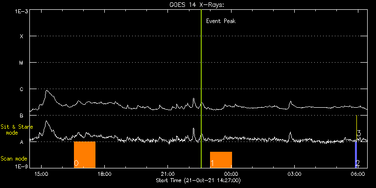 EIS Observation timeline overlay to GOES-Xray curve Code 1" 2" 40" 266" EIS Observations list for this event: STUDY ACRONYM ID DATE OBSERVED DESCRIPTION NOAA# TARGET 0 HPW021VEL260x512v2 | 79455 | 2021/10/21 16:33:13 | Active region studies. | 2886 | Active Region TIMELINE ID DATE OBSERVED FITS FILE XCEN (+W/-E) YCEN (+N/-S) DUR ----------------------------------------------------------------------------------------------------------------- 79455 | 2021/10/21 16:33:13.000 | eis_l0_20211021_163313.fits.gz | -462.73 | -395.52 | 1h0m46s 1 HPW021VEL260x512v2 | 79451 | 2021/10/21 23:00:14 | Active region studies. | 2886 | Active Region TIMELINE ID DATE OBSERVED FITS FILE XCEN (+W/-E) YCEN (+N/-S) DUR ----------------------------------------------------------------------------------------------------------------- 79451 | 2021/10/21 23:00:14.000 | eis_l0_20211021_230014.fits.gz | -412.76 | -397.60 | 1h0m44s 2 PRY_slot_contextLITE | 79443 | 2021/10/22 05:52:50 | Pointing Monitoring | | Active Region TIMELINE ID DATE OBSERVED FITS FILE XCEN (+W/-E) YCEN (+N/-S) DUR ----------------------------------------------------------------------------------------------------------------- 79443 | 2021/10/22 05:52:50.000 | eis_l0_20211022_055250.fits.gz | -15.29 | -0.42 | 2m56s 3 XRT_synop_AIA | 79444 | 2021/10/22 05:56:05 | Pointing Monitoring | | Quiet Sun TIMELINE ID DATE OBSERVED FITS FILE XCEN (+W/-E) YCEN (+N/-S) DUR ----------------------------------------------------------------------------------------------------------------- 79444 | 2021/10/22 05:56:05.000 | eis_l0_20211022_055605.fits.gz | -132.57 | -0.42 | 10s : Check study information : Download file : View thumbnails For this event, also check for: