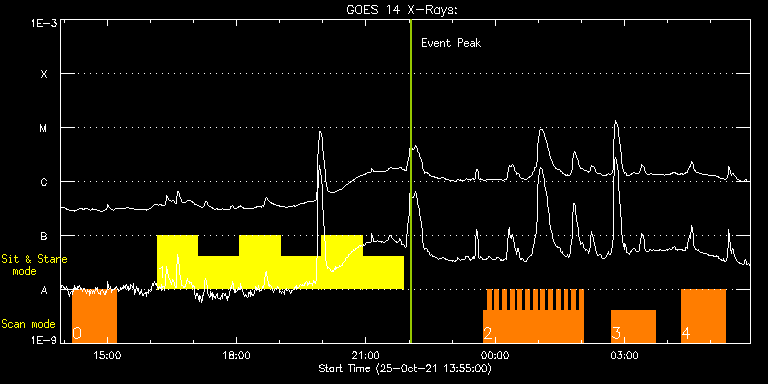 EIS Observation timeline overlay to GOES-Xray curve Code 1" 2" 40" 266" EIS Observations list for this event: STUDY ACRONYM ID DATE OBSERVED DESCRIPTION NOAA# TARGET 0 Large_CH_Map | 79463 | 2021/10/25 14:11:38 | HOP 336 (Cycle 25 bright points) South | | Quiet Sun TIMELINE ID DATE OBSERVED FITS FILE XCEN (+W/-E) YCEN (+N/-S) DUR ----------------------------------------------------------------------------------------------------------------- 79463 | 2021/10/25 14:11:38.000 | eis_l0_20211025_141138.fits.gz | -25.37 | -687.83 | 1h1m54s 1 Flare266_Hunter01 | 79497 | 2021/10/25 16:09:33 | Observe a Flare and Study Early Stage | | Flare TIMELINE ID DATE OBSERVED FITS FILE XCEN (+W/-E) YCEN (+N/-S) DUR ----------------------------------------------------------------------------------------------------------------- 79497 | 2021/10/25 16:09:33.000 | eis_l0_20211025_160933.fits.gz | -645.30 | -488.38 | 56m22s 79497 | 2021/10/25 17:06:47.000 | eis_l0_20211025_170647.fits.gz | -638.74 | -488.68 | 56m23s 79497 | 2021/10/25 18:04:02.000 | eis_l0_20211025_180402.fits.gz | -632.40 | -489.07 | 56m22s 79497 | 2021/10/25 19:01:16.000 | eis_l0_20211025_190116.fits.gz | -625.84 | -489.46 | 56m23s 79497 | 2021/10/25 19:58:31.000 | eis_l0_20211025_195831.fits.gz | -619.35 | -489.77 | 56m22s 79497 | 2021/10/25 20:55:45.000 | eis_l0_20211025_205545.fits.gz | -612.71 | -490.08 | 56m22s 2 HH_Flare+AR_180x152 | 79486 | 2021/10/25 23:43:19 | Observe a Flare and Study Early Stage | | Flare TIMELINE ID DATE OBSERVED FITS FILE XCEN (+W/-E) YCEN (+N/-S) DUR ----------------------------------------------------------------------------------------------------------------- 79486 | 2021/10/25 23:43:19.000 | eis_l0_20211025_234319.fits.gz | -464.55 | -523.00 | 5m17s 79486 | 2021/10/25 23:48:39.000 | eis_l0_20211025_234839.fits.gz | -463.85 | -523.00 | 5m19s 79486 | 2021/10/25 23:54:00.000 | eis_l0_20211025_235400.fits.gz | -463.16 | -523.08 | 5m18s 79486 | 2021/10/25 23:59:21.000 | eis_l0_20211025_235921.fits.gz | -462.54 | -523.08 | 5m18s 79486 | 2021/10/26 00:04:42.000 | eis_l0_20211026_000442.fits.gz | -461.92 | -523.31 | 5m18s 79486 | 2021/10/26 00:10:03.000 | eis_l0_20211026_001003.fits.gz | -461.30 | -523.16 | 5m18s 79486 | 2021/10/26 00:15:24.000 | eis_l0_20211026_001524.fits.gz | -460.68 | -523.23 | 5m18s 79486 | 2021/10/26 00:20:45.000 | eis_l0_20211026_002045.fits.gz | -460.07 | -523.31 | 5m17s 79486 | 2021/10/26 00:26:05.000 | eis_l0_20211026_002605.fits.gz | -459.37 | -523.23 | 5m17s 79486 | 2021/10/26 00:31:25.000 | eis_l0_20211026_003125.fits.gz | -458.83 | -523.39 | 5m18s 79486 | 2021/10/26 00:36:46.000 | eis_l0_20211026_003646.fits.gz | -458.21 | -523.47 | 5m18s 79486 | 2021/10/26 00:42:07.000 | eis_l0_20211026_004207.fits.gz | -457.52 | -523.31 | 5m17s 79486 | 2021/10/26 00:47:27.000 | eis_l0_20211026_004727.fits.gz | -456.90 | -523.39 | 5m18s 79486 | 2021/10/26 00:52:48.000 | eis_l0_20211026_005248.fits.gz | -456.28 | -523.39 | 5m18s 79486 | 2021/10/26 00:58:09.000 | eis_l0_20211026_005809.fits.gz | -455.66 | -523.39 | 5m18s 79486 | 2021/10/26 01:03:30.000 | eis_l0_20211026_010330.fits.gz | -455.05 | -523.31 | 5m18s 79486 | 2021/10/26 01:08:51.000 | eis_l0_20211026_010851.fits.gz | -454.43 | -523.47 | 5m18s 79486 | 2021/10/26 01:14:11.000 | eis_l0_20211026_011411.fits.gz | -453.81 | -523.54 | 5m18s 79486 | 2021/10/26 01:19:32.000 | eis_l0_20211026_011932.fits.gz | -453.19 | -523.47 | 5m18s 79486 | 2021/10/26 01:24:53.000 | eis_l0_20211026_012453.fits.gz | -452.57 | -523.47 | 5m17s 79486 | 2021/10/26 01:30:13.000 | eis_l0_20211026_013013.fits.gz | -451.80 | -523.70 | 5m17s 79486 | 2021/10/26 01:35:33.000 | eis_l0_20211026_013533.fits.gz | -451.26 | -523.70 | 5m19s 79486 | 2021/10/26 01:40:55.000 | eis_l0_20211026_014055.fits.gz | -450.64 | -523.62 | 5m17s 79486 | 2021/10/26 01:46:15.000 | eis_l0_20211026_014615.fits.gz | -449.95 | -523.70 | 5m18s 79486 | 2021/10/26 01:51:36.000 | eis_l0_20211026_015136.fits.gz | -449.33 | -523.78 | 5m18s 79486 | 2021/10/26 01:56:57.000 | eis_l0_20211026_015657.fits.gz | -448.71 | -523.70 | 5m17s 3 HPW021VEL260x512v2 | 79490 | 2021/10/26 02:41:42 | Active Region Studies | | Active Region TIMELINE ID DATE OBSERVED FITS FILE XCEN (+W/-E) YCEN (+N/-S) DUR ----------------------------------------------------------------------------------------------------------------- 79490 | 2021/10/26 02:41:42.000 | eis_l0_20211026_024142.fits.gz | -441.14 | -492.01 | 1h0m45s 4 Atlas_60 | 79485 | 2021/10/26 04:18:42 | Active Region Studies | | Quiet Sun TIMELINE ID DATE OBSERVED FITS FILE XCEN (+W/-E) YCEN (+N/-S) DUR ----------------------------------------------------------------------------------------------------------------- 79485 | 2021/10/26 04:18:42.000 | eis_l0_20211026_041842.fits.gz | -429.13 | -492.39 | 1h1m39s : Check study information : Download file : View thumbnails For this event, also check for: