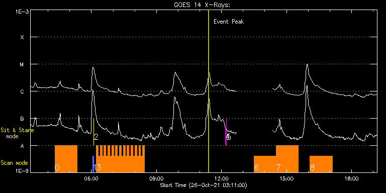 EIS Observation timeline overlay to GOES-Xray curve Code 1" 2" 40" 266" EIS Observations list for this event: STUDY ACRONYM ID DATE OBSERVED DESCRIPTION NOAA# TARGET 0 Atlas_60 | 79485 | 2021/10/26 04:18:42 | Active Region Studies | | Quiet Sun TIMELINE ID DATE OBSERVED FITS FILE XCEN (+W/-E) YCEN (+N/-S) DUR ----------------------------------------------------------------------------------------------------------------- 79485 | 2021/10/26 04:18:42.000 | eis_l0_20211026_041842.fits.gz | -429.13 | -492.39 | 1h1m39s 1 PRY_slot_contextLITE | 79468 | 2021/10/26 06:03:19 | Pointing Monitoring | | Active Region TIMELINE ID DATE OBSERVED FITS FILE XCEN (+W/-E) YCEN (+N/-S) DUR ----------------------------------------------------------------------------------------------------------------- 79468 | 2021/10/26 06:03:19.000 | eis_l0_20211026_060319.fits.gz | -15.37 | -0.35 | 2m57s 2 XRT_synop_AIA | 79469 | 2021/10/26 06:06:34 | Pointing Monitoring | | Quiet Sun TIMELINE ID DATE OBSERVED FITS FILE XCEN (+W/-E) YCEN (+N/-S) DUR ----------------------------------------------------------------------------------------------------------------- 79469 | 2021/10/26 06:06:34.000 | eis_l0_20211026_060634.fits.gz | -132.49 | -0.50 | 10s 3 HH_Flare+AR_180x152 | 79489 | 2021/10/26 06:13:18 | Observe a Flare and Study Early Stage | | Flare TIMELINE ID DATE OBSERVED FITS FILE XCEN (+W/-E) YCEN (+N/-S) DUR ----------------------------------------------------------------------------------------------------------------- 79489 | 2021/10/26 06:13:18.000 | eis_l0_20211026_061318.fits.gz | -417.30 | -493.09 | 5m18s 79489 | 2021/10/26 06:18:39.000 | eis_l0_20211026_061839.fits.gz | -416.60 | -493.09 | 5m18s 79489 | 2021/10/26 06:23:59.000 | eis_l0_20211026_062359.fits.gz | -415.98 | -493.09 | 5m19s 79489 | 2021/10/26 06:29:20.000 | eis_l0_20211026_062920.fits.gz | -415.36 | -493.17 | 5m18s 79489 | 2021/10/26 06:34:41.000 | eis_l0_20211026_063441.fits.gz | -414.75 | -493.09 | 5m19s 79489 | 2021/10/26 06:40:03.000 | eis_l0_20211026_064003.fits.gz | -414.05 | -493.17 | 5m17s 79489 | 2021/10/26 06:45:23.000 | eis_l0_20211026_064523.fits.gz | -413.36 | -493.17 | 5m17s 79489 | 2021/10/26 06:50:43.000 | eis_l0_20211026_065043.fits.gz | -412.66 | -493.24 | 5m17s 79489 | 2021/10/26 06:56:03.000 | eis_l0_20211026_065603.fits.gz | -412.04 | -493.17 | 5m18s 79489 | 2021/10/26 07:01:24.000 | eis_l0_20211026_070124.fits.gz | -411.42 | -493.17 | 5m17s 79489 | 2021/10/26 07:06:44.000 | eis_l0_20211026_070644.fits.gz | -410.81 | -493.32 | 5m17s 79489 | 2021/10/26 07:12:04.000 | eis_l0_20211026_071204.fits.gz | -410.04 | -493.32 | 5m19s 79489 | 2021/10/26 07:17:25.000 | eis_l0_20211026_071725.fits.gz | -409.49 | -493.32 | 5m19s 79489 | 2021/10/26 07:22:46.000 | eis_l0_20211026_072246.fits.gz | -408.80 | -493.32 | 5m18s 79489 | 2021/10/26 07:28:07.000 | eis_l0_20211026_072807.fits.gz | -408.18 | -493.17 | 5m18s 79489 | 2021/10/26 07:33:28.000 | eis_l0_20211026_073328.fits.gz | -407.48 | -493.32 | 5m18s 79489 | 2021/10/26 07:38:48.000 | eis_l0_20211026_073848.fits.gz | -406.87 | -493.32 | 5m18s 79489 | 2021/10/26 07:44:09.000 | eis_l0_20211026_074409.fits.gz | -406.17 | -493.40 | 5m18s 79489 | 2021/10/26 07:49:30.000 | eis_l0_20211026_074930.fits.gz | -405.55 | -493.48 | 5m18s 79489 | 2021/10/26 07:54:51.000 | eis_l0_20211026_075451.fits.gz | -404.86 | -493.55 | 5m18s 79489 | 2021/10/26 08:00:12.000 | eis_l0_20211026_080012.fits.gz | -404.24 | -493.55 | 5m18s 79489 | 2021/10/26 08:05:33.000 | eis_l0_20211026_080533.fits.gz | -403.55 | -493.55 | 5m18s 79489 | 2021/10/26 08:10:54.000 | eis_l0_20211026_081054.fits.gz | -403.01 | -493.48 | 5m18s 79489 | 2021/10/26 08:16:14.000 | eis_l0_20211026_081614.fits.gz | -402.31 | -493.55 | 5m18s 79489 | 2021/10/26 08:21:35.000 | eis_l0_20211026_082135.fits.gz | -401.69 | -493.71 | 5m17s 4 regcal074 | 79506 | 2021/10/26 12:10:13 | Dark exposures including overscan pixe | | Engineering TIMELINE ID DATE OBSERVED FITS FILE XCEN (+W/-E) YCEN (+N/-S) DUR ----------------------------------------------------------------------------------------------------------------- 79506 | 2021/10/26 12:10:13.000 | eis_l0_20211026_121013.fits.gz | -305.06 | -292.75 | 3m22s 5 regcal076 | 79507 | 2021/10/26 12:14:02 | Flatfield, 1 exposure, led 100ms, ccd | | Engineering TIMELINE ID DATE OBSERVED FITS FILE XCEN (+W/-E) YCEN (+N/-S) DUR ----------------------------------------------------------------------------------------------------------------- 79507 | 2021/10/26 12:14:02.000 | eis_l0_20211026_121402.fits.gz | -304.60 | -548.67 | 1s 6 HPW021VEL260x512v2 | 79517 | 2021/10/26 13:30:41 | Active Region Studies (HOP411 target) | 2887 | Active Region TIMELINE ID DATE OBSERVED FITS FILE XCEN (+W/-E) YCEN (+N/-S) DUR ----------------------------------------------------------------------------------------------------------------- 79517 | 2021/10/26 13:30:41.000 | eis_l0_20211026_133041.fits.gz | -309.37 | -465.90 | 1h0m45s 7 HPW021VEL260x512v2 | 79518 | 2021/10/26 14:31:33 | Active Region Studies (HOP411 target) | 2887 | Active Region TIMELINE ID DATE OBSERVED FITS FILE XCEN (+W/-E) YCEN (+N/-S) DUR ----------------------------------------------------------------------------------------------------------------- 79518 | 2021/10/26 14:31:33.000 | eis_l0_20211026_143133.fits.gz | -301.33 | -466.13 | 1h0m45s 8 Atlas_60 | 79519 | 2021/10/26 16:05:14 | Active Region Studies (HOP411 target) | | Quiet Sun TIMELINE ID DATE OBSERVED FITS FILE XCEN (+W/-E) YCEN (+N/-S) DUR ----------------------------------------------------------------------------------------------------------------- 79519 | 2021/10/26 16:05:14.000 | eis_l0_20211026_160514.fits.gz | -288.40 | -466.44 | 1h1m39s : Check study information : Download file : View thumbnails For this event, also check for: