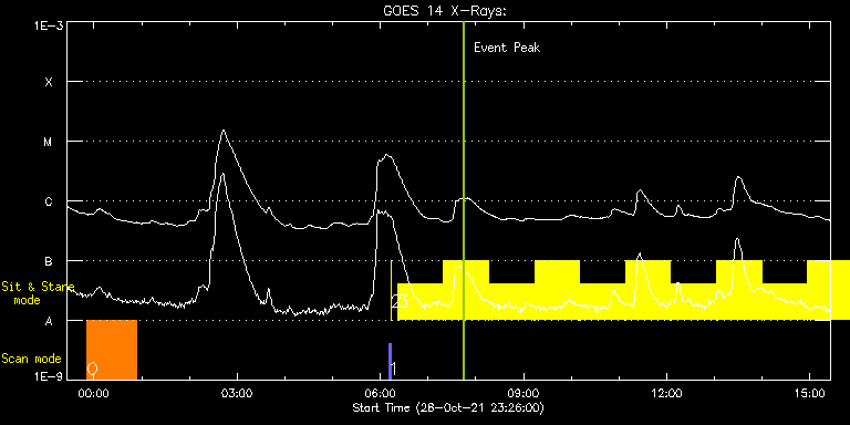 EIS Observation timeline overlay to GOES-Xray curve Code 1" 2" 40" 266" EIS Observations list for this event: STUDY ACRONYM ID DATE OBSERVED DESCRIPTION NOAA# TARGET 0 Atlas_60 | 79572 | 2021/10/28 23:51:41 | Active Region Studies | 2891 | Quiet Sun TIMELINE ID DATE OBSERVED FITS FILE XCEN (+W/-E) YCEN (+N/-S) DUR ----------------------------------------------------------------------------------------------------------------- 79572 | 2021/10/28 23:51:41.000 | eis_l0_20211028_235141.fits.gz | -794.54 | 244.16 | 1h1m39s 1 PRY_slot_contextLITE | 79566 | 2021/10/29 06:10:20 | Pointing Monitoring | | Active Region TIMELINE ID DATE OBSERVED FITS FILE XCEN (+W/-E) YCEN (+N/-S) DUR ----------------------------------------------------------------------------------------------------------------- 79566 | 2021/10/29 06:10:20.000 | eis_l0_20211029_061020.fits.gz | -15.29 | -0.50 | 2m56s 2 XRT_synop_AIA | 79567 | 2021/10/29 06:13:35 | Pointing Monitoring | | Quiet Sun TIMELINE ID DATE OBSERVED FITS FILE XCEN (+W/-E) YCEN (+N/-S) DUR ----------------------------------------------------------------------------------------------------------------- 79567 | 2021/10/29 06:13:35.000 | eis_l0_20211029_061335.fits.gz | -132.49 | -0.42 | 10s 3 Flare266_Hunter01 | 79581 | 2021/10/29 06:22:13 | Flare Studies | | Flare TIMELINE ID DATE OBSERVED FITS FILE XCEN (+W/-E) YCEN (+N/-S) DUR ----------------------------------------------------------------------------------------------------------------- 79581 | 2021/10/29 06:22:13.000 | eis_l0_20211029_062213.fits.gz | -893.82 | 240.76 | 56m23s 79581 | 2021/10/29 07:19:28.000 | eis_l0_20211029_071928.fits.gz | -888.64 | 240.22 | 56m22s 79581 | 2021/10/29 08:16:43.000 | eis_l0_20211029_081643.fits.gz | -883.54 | 239.60 | 56m22s 79581 | 2021/10/29 09:13:57.000 | eis_l0_20211029_091357.fits.gz | -878.37 | 239.21 | 56m23s 79581 | 2021/10/29 10:11:12.000 | eis_l0_20211029_101112.fits.gz | -873.04 | 238.67 | 56m22s 79581 | 2021/10/29 11:08:26.000 | eis_l0_20211029_110826.fits.gz | -867.71 | 238.21 | 56m22s 79581 | 2021/10/29 12:05:41.000 | eis_l0_20211029_120541.fits.gz | -862.45 | 237.75 | 56m22s 79581 | 2021/10/29 13:02:55.000 | eis_l0_20211029_130255.fits.gz | -856.97 | 237.21 | 56m22s 79581 | 2021/10/29 14:00:09.000 | eis_l0_20211029_140009.fits.gz | -851.48 | 236.74 | 56m23s 79581 | 2021/10/29 14:57:24.000 | eis_l0_20211029_145724.fits.gz | -845.92 | 236.43 | 56m22s : Check study information : Download file : View thumbnails For this event, also check for: