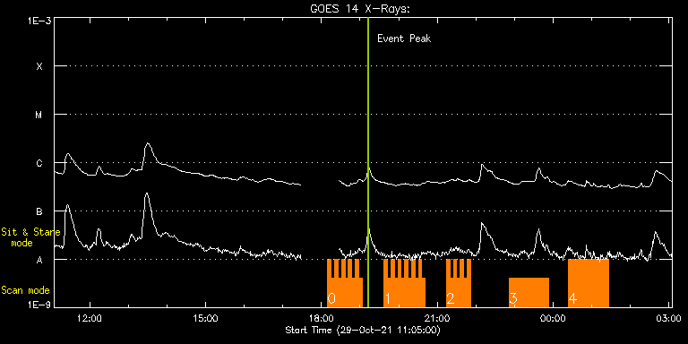 EIS Observation timeline overlay to GOES-Xray curve Code 1" 2" 40" 266" EIS Observations list for this event: STUDY ACRONYM ID DATE OBSERVED DESCRIPTION NOAA# TARGET 0 HH_Flare+AR_180x152 | 79577 | 2021/10/29 18:09:50 | Flare studies | 2887 | Flare TIMELINE ID DATE OBSERVED FITS FILE XCEN (+W/-E) YCEN (+N/-S) DUR ----------------------------------------------------------------------------------------------------------------- 79577 | 2021/10/29 18:09:50.000 | eis_l0_20211029_180950.fits.gz | 254.48 | -505.84 | 5m19s 79577 | 2021/10/29 18:15:11.000 | eis_l0_20211029_181511.fits.gz | 255.10 | -505.68 | 5m18s 79577 | 2021/10/29 18:20:32.000 | eis_l0_20211029_182032.fits.gz | 255.79 | -505.76 | 5m18s 79577 | 2021/10/29 18:25:53.000 | eis_l0_20211029_182553.fits.gz | 256.49 | -505.84 | 5m18s 79577 | 2021/10/29 18:31:14.000 | eis_l0_20211029_183114.fits.gz | 257.18 | -505.61 | 5m18s 79577 | 2021/10/29 18:36:35.000 | eis_l0_20211029_183635.fits.gz | 257.88 | -505.61 | 5m18s 79577 | 2021/10/29 18:41:56.000 | eis_l0_20211029_184156.fits.gz | 258.57 | -505.53 | 5m18s 79577 | 2021/10/29 18:47:17.000 | eis_l0_20211029_184717.fits.gz | 259.19 | -505.61 | 5m18s 79577 | 2021/10/29 18:52:38.000 | eis_l0_20211029_185238.fits.gz | 259.73 | -505.53 | 5m17s 79577 | 2021/10/29 18:57:58.000 | eis_l0_20211029_185758.fits.gz | 260.58 | -505.53 | 5m19s 1 HH_Flare+AR_180x152 | 79575 | 2021/10/29 19:37:13 | | 2887 | Flare TIMELINE ID DATE OBSERVED FITS FILE XCEN (+W/-E) YCEN (+N/-S) DUR ----------------------------------------------------------------------------------------------------------------- 79575 | 2021/10/29 19:37:13.000 | eis_l0_20211029_193713.fits.gz | 265.35 | -505.38 | 5m19s 79575 | 2021/10/29 19:42:35.000 | eis_l0_20211029_194235.fits.gz | 265.89 | -505.30 | 5m17s 79575 | 2021/10/29 19:47:55.000 | eis_l0_20211029_194755.fits.gz | 266.67 | -505.45 | 5m17s 79575 | 2021/10/29 19:53:15.000 | eis_l0_20211029_195315.fits.gz | 267.28 | -505.30 | 5m18s 79575 | 2021/10/29 19:58:36.000 | eis_l0_20211029_195836.fits.gz | 267.98 | -505.22 | 5m18s 79575 | 2021/10/29 20:03:57.000 | eis_l0_20211029_200357.fits.gz | 268.60 | -505.30 | 5m18s 79575 | 2021/10/29 20:09:18.000 | eis_l0_20211029_200918.fits.gz | 269.45 | -505.14 | 5m18s 79575 | 2021/10/29 20:14:39.000 | eis_l0_20211029_201439.fits.gz | 269.99 | -505.07 | 5m18s 79575 | 2021/10/29 20:20:00.000 | eis_l0_20211029_202000.fits.gz | 270.76 | -505.14 | 5m18s 79575 | 2021/10/29 20:25:21.000 | eis_l0_20211029_202521.fits.gz | 271.46 | -505.14 | 5m18s 79575 | 2021/10/29 20:30:42.000 | eis_l0_20211029_203042.fits.gz | 272.07 | -505.14 | 5m18s 79575 | 2021/10/29 20:36:03.000 | eis_l0_20211029_203603.fits.gz | 272.85 | -504.99 | 5m18s 2 HH_Flare+AR_180x152 | 79576 | 2021/10/29 21:14:13 | Flare stidies | 2887 | Flare TIMELINE ID DATE OBSERVED FITS FILE XCEN (+W/-E) YCEN (+N/-S) DUR ----------------------------------------------------------------------------------------------------------------- 79576 | 2021/10/29 21:14:13.000 | eis_l0_20211029_211413.fits.gz | 277.56 | -504.91 | 5m19s 79576 | 2021/10/29 21:19:35.000 | eis_l0_20211029_211935.fits.gz | 278.25 | -504.91 | 5m17s 79576 | 2021/10/29 21:24:55.000 | eis_l0_20211029_212455.fits.gz | 278.95 | -504.99 | 5m19s 79576 | 2021/10/29 21:30:17.000 | eis_l0_20211029_213017.fits.gz | 279.64 | -504.83 | 5m18s 79576 | 2021/10/29 21:35:37.000 | eis_l0_20211029_213537.fits.gz | 280.26 | -504.91 | 5m18s 79576 | 2021/10/29 21:40:58.000 | eis_l0_20211029_214058.fits.gz | 281.03 | -504.83 | 5m19s 79576 | 2021/10/29 21:46:19.000 | eis_l0_20211029_214619.fits.gz | 281.58 | -504.76 | 5m18s 3 Large_CH_Map | 79564 | 2021/10/29 22:51:13 | HOP 393 (Cycle 24/25 equatorial transi | | Quiet Sun TIMELINE ID DATE OBSERVED FITS FILE XCEN (+W/-E) YCEN (+N/-S) DUR ----------------------------------------------------------------------------------------------------------------- 79564 | 2021/10/29 22:51:13.000 | eis_l0_20211029_225113.fits.gz | -37.04 | -3.57 | 1h1m52s 4 Large_CH_Map | 79565 | 2021/10/30 00:23:43 | HOP 393 (Cycle 24/25 equatorial transi | | Quiet Sun TIMELINE ID DATE OBSERVED FITS FILE XCEN (+W/-E) YCEN (+N/-S) DUR ----------------------------------------------------------------------------------------------------------------- 79565 | 2021/10/30 00:23:43.000 | eis_l0_20211030_002343.fits.gz | -22.60 | -3.50 | 1h1m52s : Check study information : Download file : View thumbnails For this event, also check for: