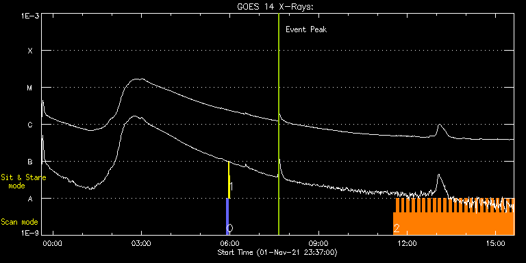 EIS Observation timeline overlay to GOES-Xray curve Code 1" 2" 40" 266" EIS Observations list for this event: STUDY ACRONYM ID DATE OBSERVED DESCRIPTION NOAA# TARGET 0 PRY_slot_contextLITE | 79591 | 2021/11/02 05:53:18 | Pointing Monitoring | 2891 | Active Region TIMELINE ID DATE OBSERVED FITS FILE XCEN (+W/-E) YCEN (+N/-S) DUR ----------------------------------------------------------------------------------------------------------------- 79591 | 2021/11/02 05:53:18.000 | eis_l0_20211102_055318.fits.gz | -15.37 | -0.50 | 2m57s 1 XRT_synop_AIA | 79592 | 2021/11/02 05:56:34 | Pointing Monitoring | | Quiet Sun TIMELINE ID DATE OBSERVED FITS FILE XCEN (+W/-E) YCEN (+N/-S) DUR ----------------------------------------------------------------------------------------------------------------- 79592 | 2021/11/02 05:56:34.000 | eis_l0_20211102_055634.fits.gz | -132.57 | -0.35 | 10s 79592 | 2021/11/02 05:56:49.000 | eis_l0_20211102_055649.fits.gz | -132.57 | -0.27 | 10s 79592 | 2021/11/02 05:57:04.000 | eis_l0_20211102_055704.fits.gz | -132.64 | -0.42 | 10s 79592 | 2021/11/02 05:57:19.000 | eis_l0_20211102_055719.fits.gz | -132.57 | -0.50 | 10s 79592 | 2021/11/02 05:57:35.000 | eis_l0_20211102_055735.fits.gz | -132.49 | -0.42 | 10s 79592 | 2021/11/02 05:57:50.000 | eis_l0_20211102_055750.fits.gz | -132.64 | -0.35 | 10s 79592 | 2021/11/02 05:58:05.000 | eis_l0_20211102_055805.fits.gz | -132.57 | -0.42 | 10s 79592 | 2021/11/02 05:58:20.000 | eis_l0_20211102_055820.fits.gz | -132.57 | -0.35 | 11s 79592 | 2021/11/02 05:58:36.000 | eis_l0_20211102_055836.fits.gz | -132.57 | -0.42 | 10s 79592 | 2021/11/02 05:58:51.000 | eis_l0_20211102_055851.fits.gz | -132.49 | -0.50 | 10s 2 HH_Flare+AR_180x152 | 79628 | 2021/11/02 11:32:20 | Flare Study | 2887 | Flare TIMELINE ID DATE OBSERVED FITS FILE XCEN (+W/-E) YCEN (+N/-S) DUR ----------------------------------------------------------------------------------------------------------------- 79628 | 2021/11/02 11:32:20.000 | eis_l0_20211102_113220.fits.gz | 832.54 | -426.43 | 5m17s 79628 | 2021/11/02 11:37:40.000 | eis_l0_20211102_113740.fits.gz | 832.54 | -426.51 | 5m18s 79628 | 2021/11/02 11:43:01.000 | eis_l0_20211102_114301.fits.gz | 832.54 | -426.59 | 5m18s 79628 | 2021/11/02 11:48:22.000 | eis_l0_20211102_114822.fits.gz | 832.62 | -426.51 | 5m17s 79628 | 2021/11/02 11:53:42.000 | eis_l0_20211102_115342.fits.gz | 832.47 | -426.59 | 5m18s 79628 | 2021/11/02 11:59:03.000 | eis_l0_20211102_115903.fits.gz | 832.54 | -426.51 | 5m17s 79628 | 2021/11/02 12:04:23.000 | eis_l0_20211102_120423.fits.gz | 832.62 | -426.51 | 5m17s 79628 | 2021/11/02 12:09:43.000 | eis_l0_20211102_120943.fits.gz | 832.47 | -426.43 | 5m19s 79628 | 2021/11/02 12:15:04.000 | eis_l0_20211102_121504.fits.gz | 832.62 | -426.43 | 5m18s 79628 | 2021/11/02 12:20:25.000 | eis_l0_20211102_122025.fits.gz | 832.70 | -426.66 | 5m18s 79628 | 2021/11/02 12:25:46.000 | eis_l0_20211102_122546.fits.gz | 832.62 | -426.51 | 5m19s 79628 | 2021/11/02 12:31:08.000 | eis_l0_20211102_123108.fits.gz | 832.54 | -426.43 | 5m18s 79628 | 2021/11/02 12:36:28.000 | eis_l0_20211102_123628.fits.gz | 832.62 | -426.51 | 5m19s 79628 | 2021/11/02 12:41:50.000 | eis_l0_20211102_124150.fits.gz | 832.62 | -426.59 | 5m17s 79628 | 2021/11/02 12:47:10.000 | eis_l0_20211102_124710.fits.gz | 832.54 | -426.51 | 5m18s 79628 | 2021/11/02 12:52:30.000 | eis_l0_20211102_125230.fits.gz | 832.54 | -426.51 | 5m19s 79628 | 2021/11/02 12:57:52.000 | eis_l0_20211102_125752.fits.gz | 832.62 | -426.51 | 5m18s 79628 | 2021/11/02 13:03:12.000 | eis_l0_20211102_130312.fits.gz | 832.54 | -426.59 | 5m19s 79628 | 2021/11/02 13:08:34.000 | eis_l0_20211102_130834.fits.gz | 832.54 | -426.51 | 5m17s 79628 | 2021/11/02 13:13:54.000 | eis_l0_20211102_131354.fits.gz | 832.54 | -426.51 | 5m18s 79628 | 2021/11/02 13:19:15.000 | eis_l0_20211102_131915.fits.gz | 832.54 | -426.59 | 5m18s 79628 | 2021/11/02 13:24:36.000 | eis_l0_20211102_132436.fits.gz | 832.54 | -426.43 | 5m17s 79628 | 2021/11/02 13:29:56.000 | eis_l0_20211102_132956.fits.gz | 832.54 | -426.51 | 5m18s 79628 | 2021/11/02 13:35:17.000 | eis_l0_20211102_133517.fits.gz | 832.47 | -426.59 | 5m18s 79628 | 2021/11/02 13:40:38.000 | eis_l0_20211102_134038.fits.gz | 832.54 | -426.43 | 5m17s 79628 | 2021/11/02 13:45:58.000 | eis_l0_20211102_134558.fits.gz | 832.62 | -426.51 | 5m17s 79628 | 2021/11/02 13:51:18.000 | eis_l0_20211102_135118.fits.gz | 832.54 | -426.43 | 5m18s 79628 | 2021/11/02 13:56:39.000 | eis_l0_20211102_135639.fits.gz | 832.62 | -426.66 | 5m18s 79628 | 2021/11/02 14:01:59.000 | eis_l0_20211102_140159.fits.gz | 832.54 | -426.51 | 5m18s 79628 | 2021/11/02 14:07:20.000 | eis_l0_20211102_140720.fits.gz | 832.54 | -426.59 | 5m19s 79628 | 2021/11/02 14:12:42.000 | eis_l0_20211102_141242.fits.gz | 832.62 | -426.51 | 5m17s 79628 | 2021/11/02 14:18:02.000 | eis_l0_20211102_141802.fits.gz | 832.54 | -426.51 | 5m17s 79628 | 2021/11/02 14:23:22.000 | eis_l0_20211102_142322.fits.gz | 832.62 | -426.51 | 5m18s 79628 | 2021/11/02 14:28:43.000 | eis_l0_20211102_142843.fits.gz | 832.70 | -426.66 | 5m18s 79628 | 2021/11/02 14:34:04.000 | eis_l0_20211102_143404.fits.gz | 832.62 | -426.59 | 5m18s 79628 | 2021/11/02 14:39:25.000 | eis_l0_20211102_143925.fits.gz | 832.54 | -426.51 | 5m18s 79628 | 2021/11/02 14:44:46.000 | eis_l0_20211102_144446.fits.gz | 832.54 | -426.51 | 5m17s 79628 | 2021/11/02 14:50:06.000 | eis_l0_20211102_145006.fits.gz | 832.47 | -426.51 | 5m18s 79628 | 2021/11/02 14:55:27.000 | eis_l0_20211102_145527.fits.gz | 832.62 | -426.43 | 5m18s 79628 | 2021/11/02 15:00:48.000 | eis_l0_20211102_150048.fits.gz | 832.62 | -426.51 | 5m17s 79628 | 2021/11/02 15:06:08.000 | eis_l0_20211102_150608.fits.gz | 832.54 | -426.43 | 5m18s 79628 | 2021/11/02 15:11:29.000 | eis_l0_20211102_151129.fits.gz | 832.62 | -426.66 | 5m18s 79628 | 2021/11/02 15:16:50.000 | eis_l0_20211102_151650.fits.gz | 832.54 | -426.59 | 5m18s 79628 | 2021/11/02 15:22:10.000 | eis_l0_20211102_152210.fits.gz | 832.62 | -426.59 | 5m19s 79628